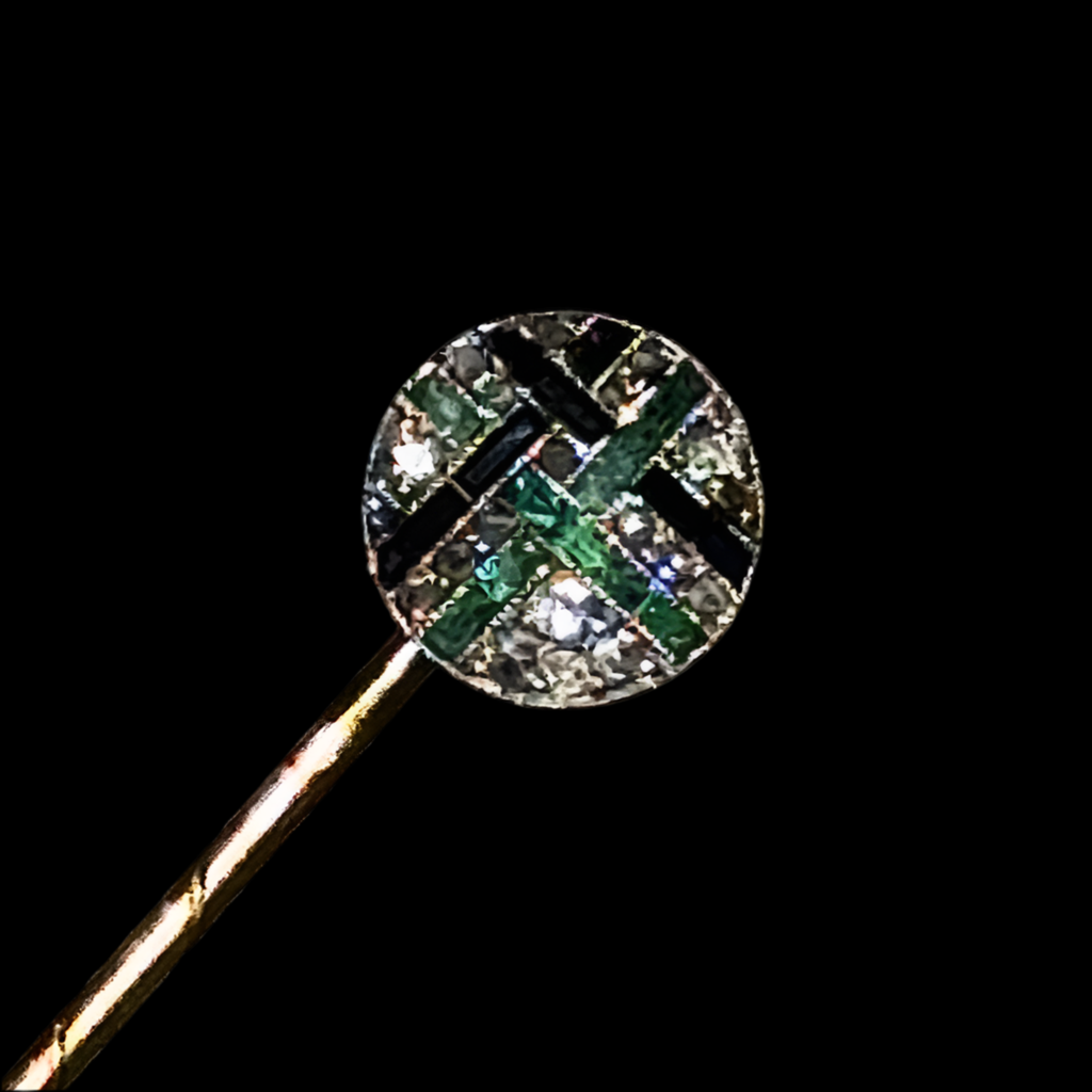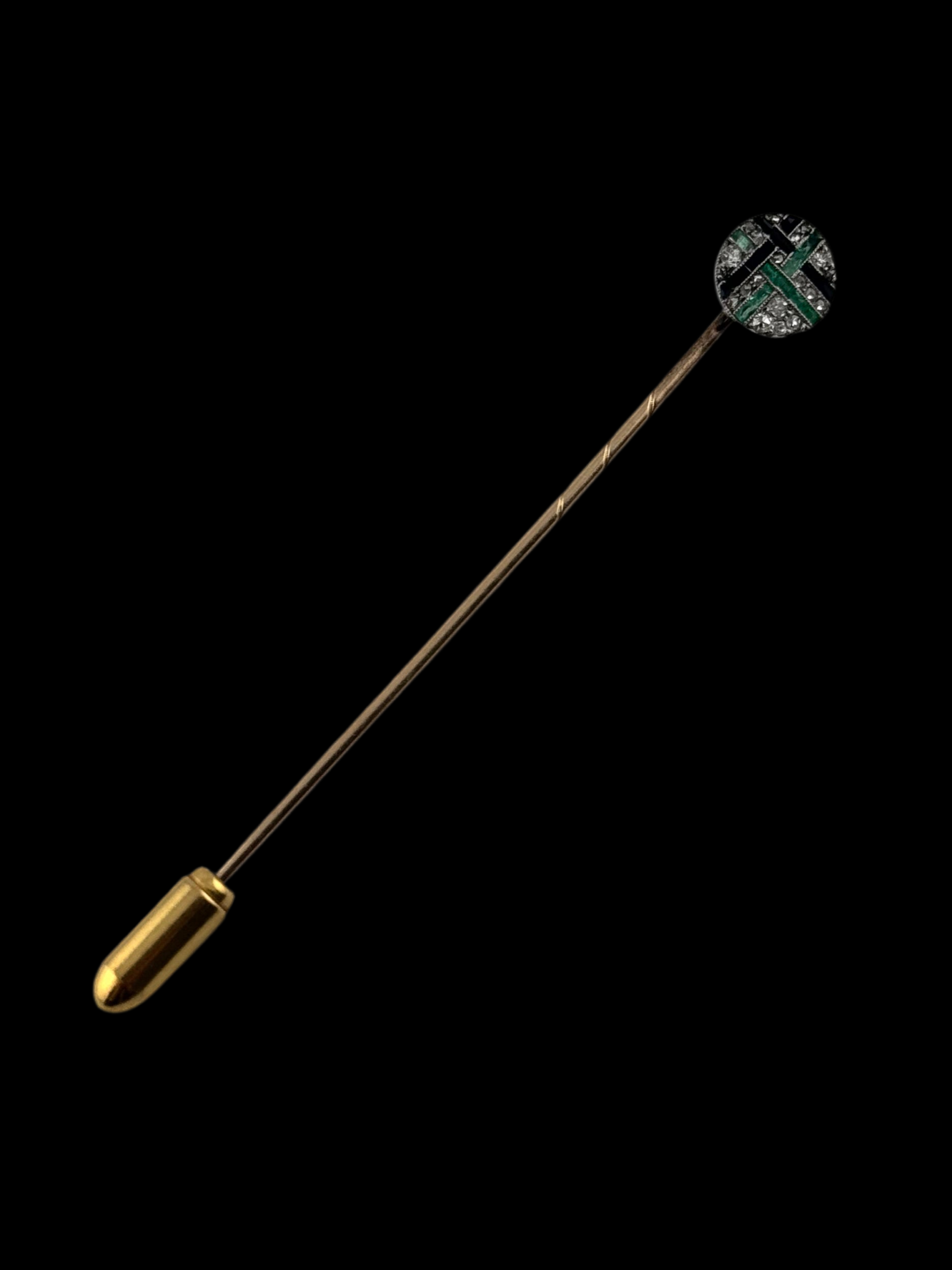 Art Deco Diamond, Onyx, and Emerald Stick Pin - 1920s