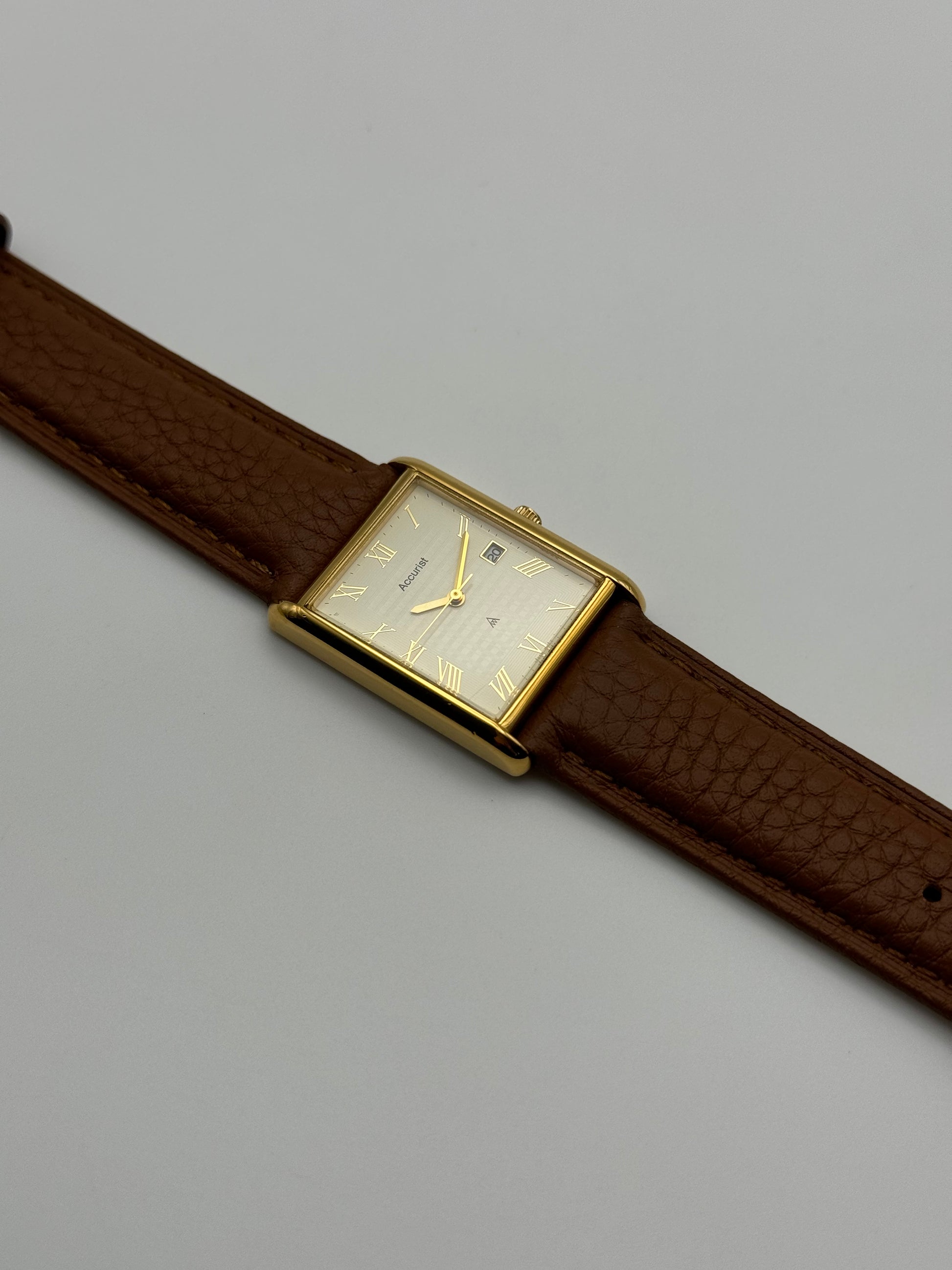 This is a stunning Accurist Tank which is in fantastic overall condition and features a lovely textured Roman Numeral dial. The watch is working perfectly in all functions and is keeping great time. - A great affordable alternative to a Cartier Tank.