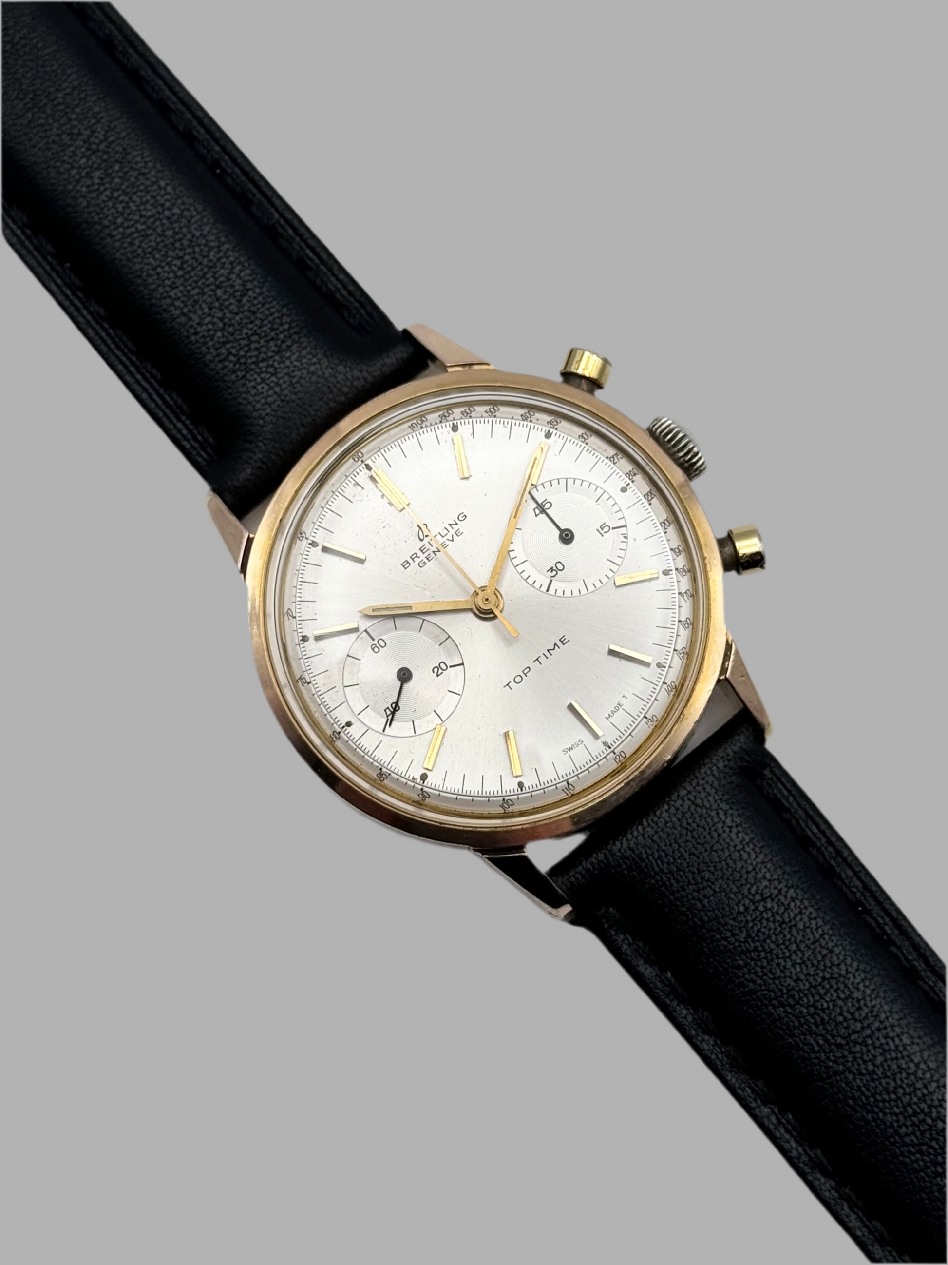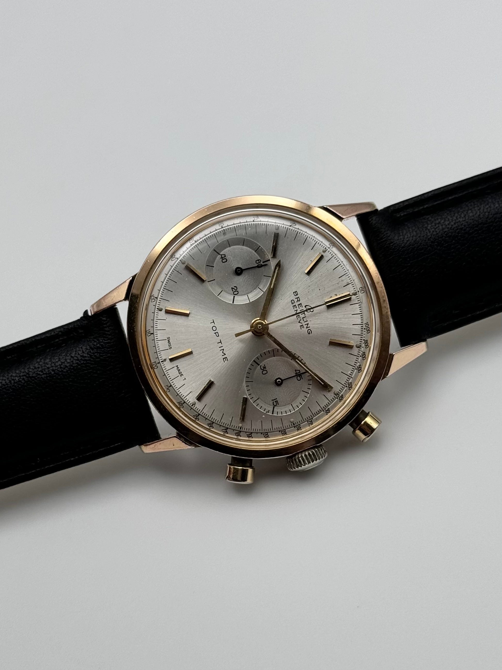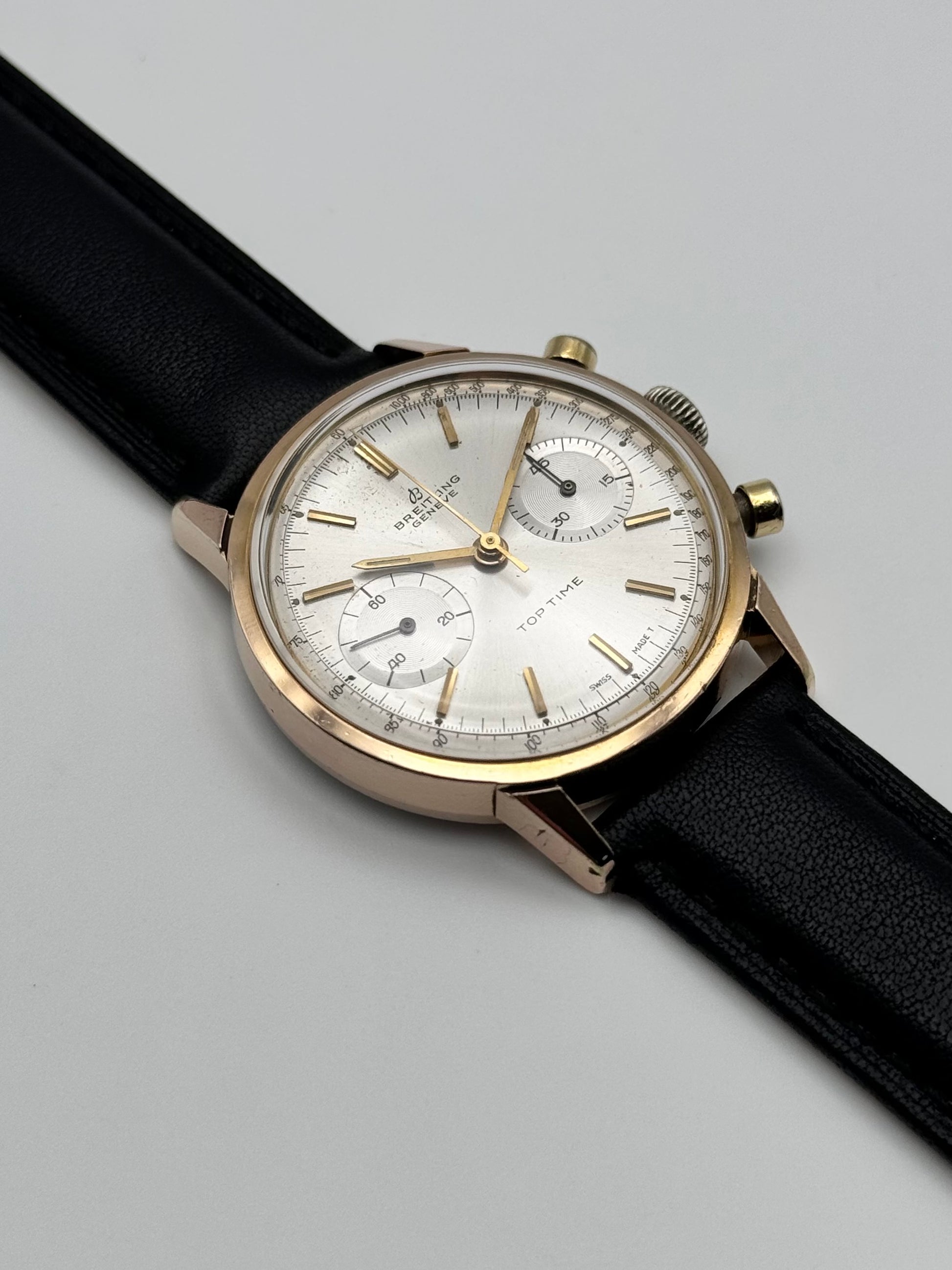 For sale today is this absolutely breathtakingly beautiful Breitling Top Time from the mid 1960s. This piece features a stunning sunburst silver dial which displays chronograph sub dials. We have just had this piece fully overhauled and serviced to ensure that it is running perfectly within vintage specification. This is a seriously stunning watch which we do not get the opportunity to stock often at all!