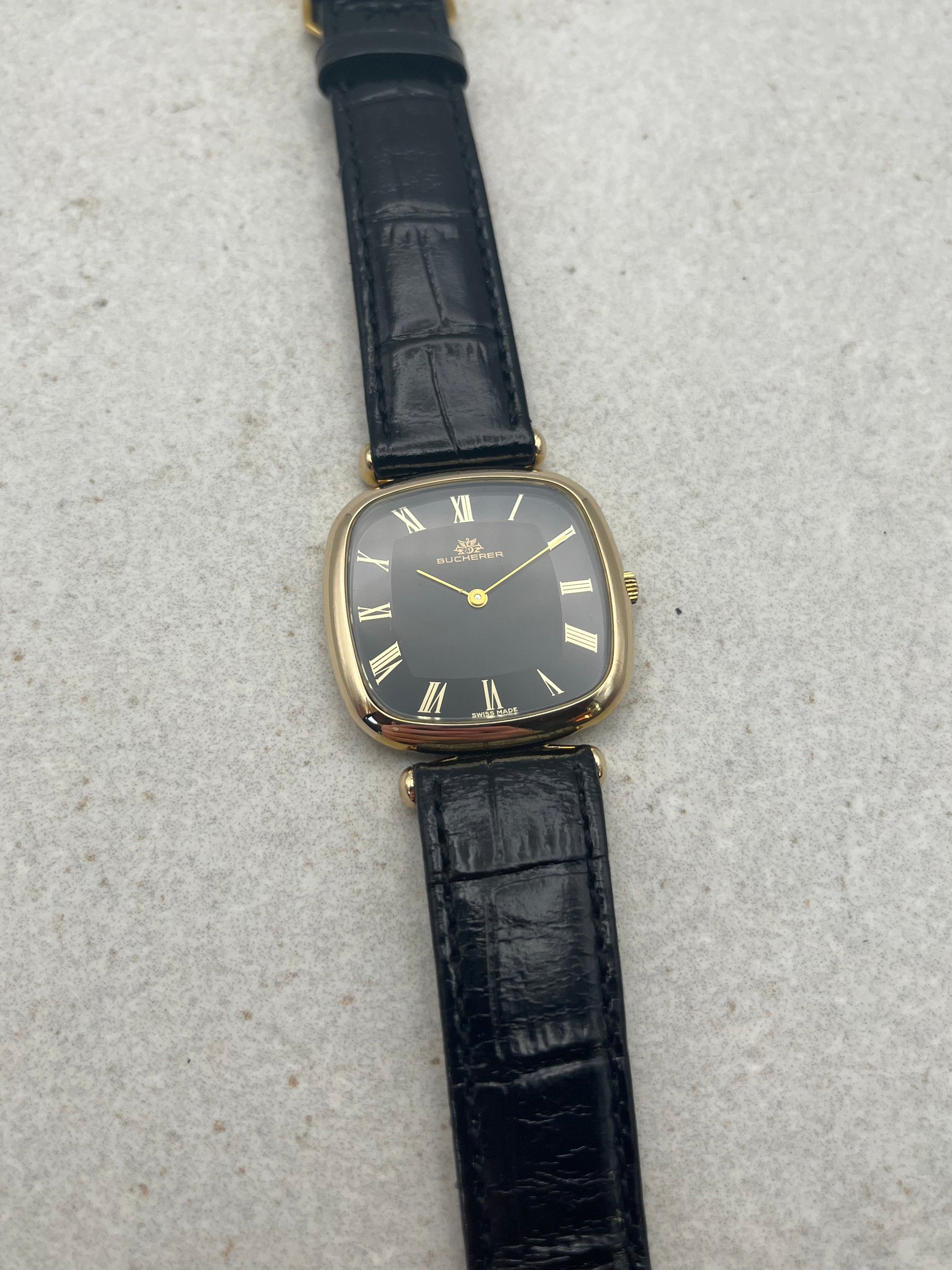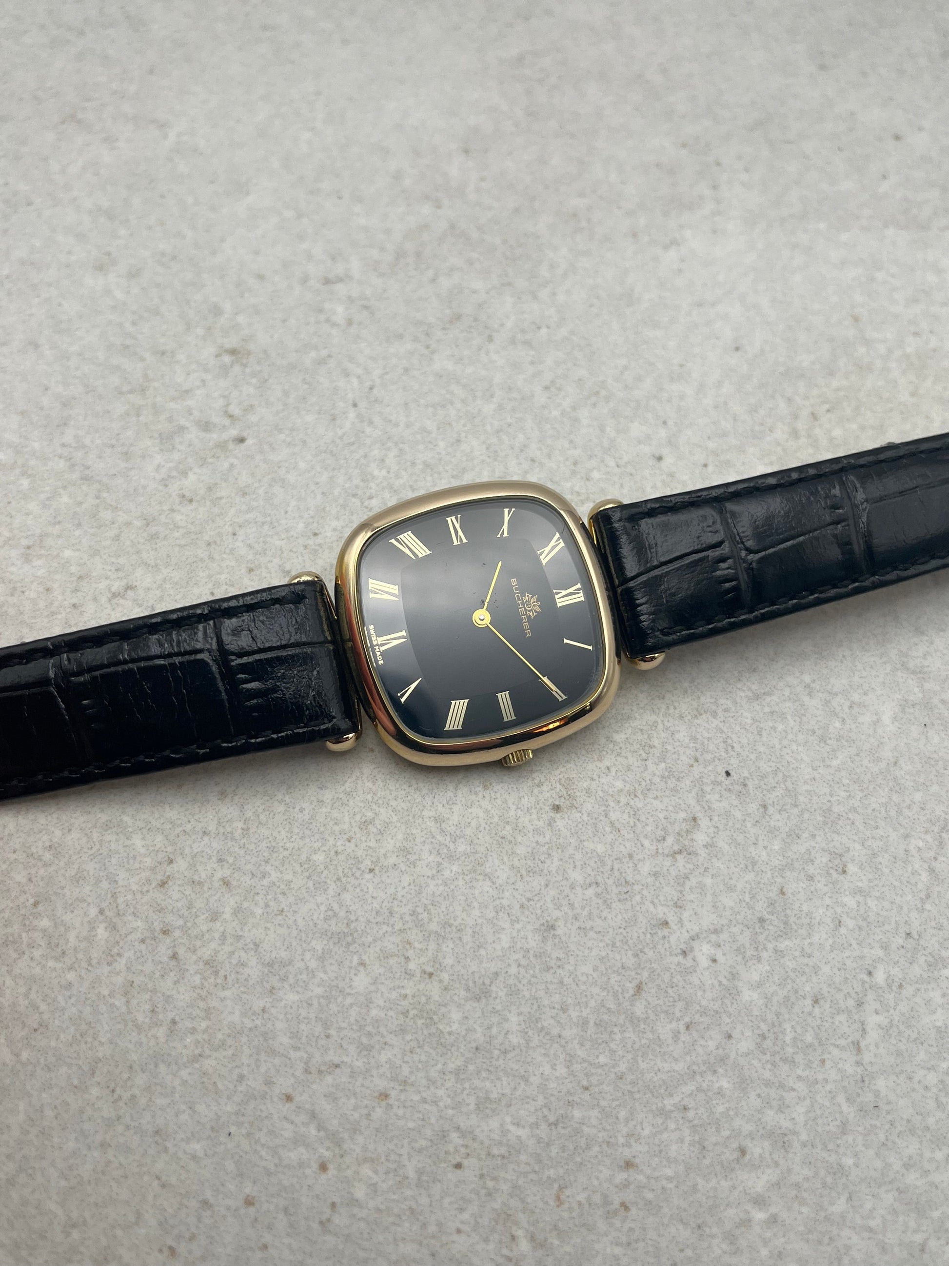 This is an incredibly rare vintage Bucherer dress watch which is an extremely hard find. You don’t see pictures of this watch online let alone finding one for sale! You will probably never see anyone else in your lifetime wearing the same watch as you with this piece.