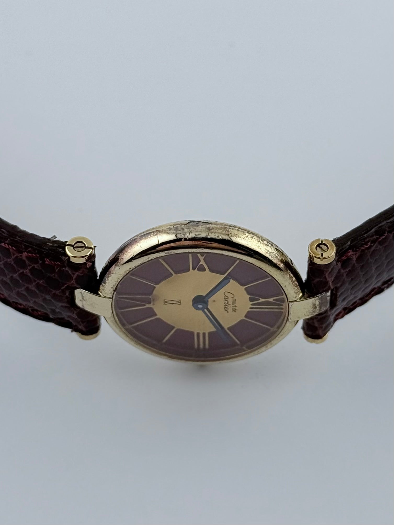 Cartier Must de Cartier Vermeil Quartz - 18 - Gold and Bordeaux Cloisonne Dial - Ladies