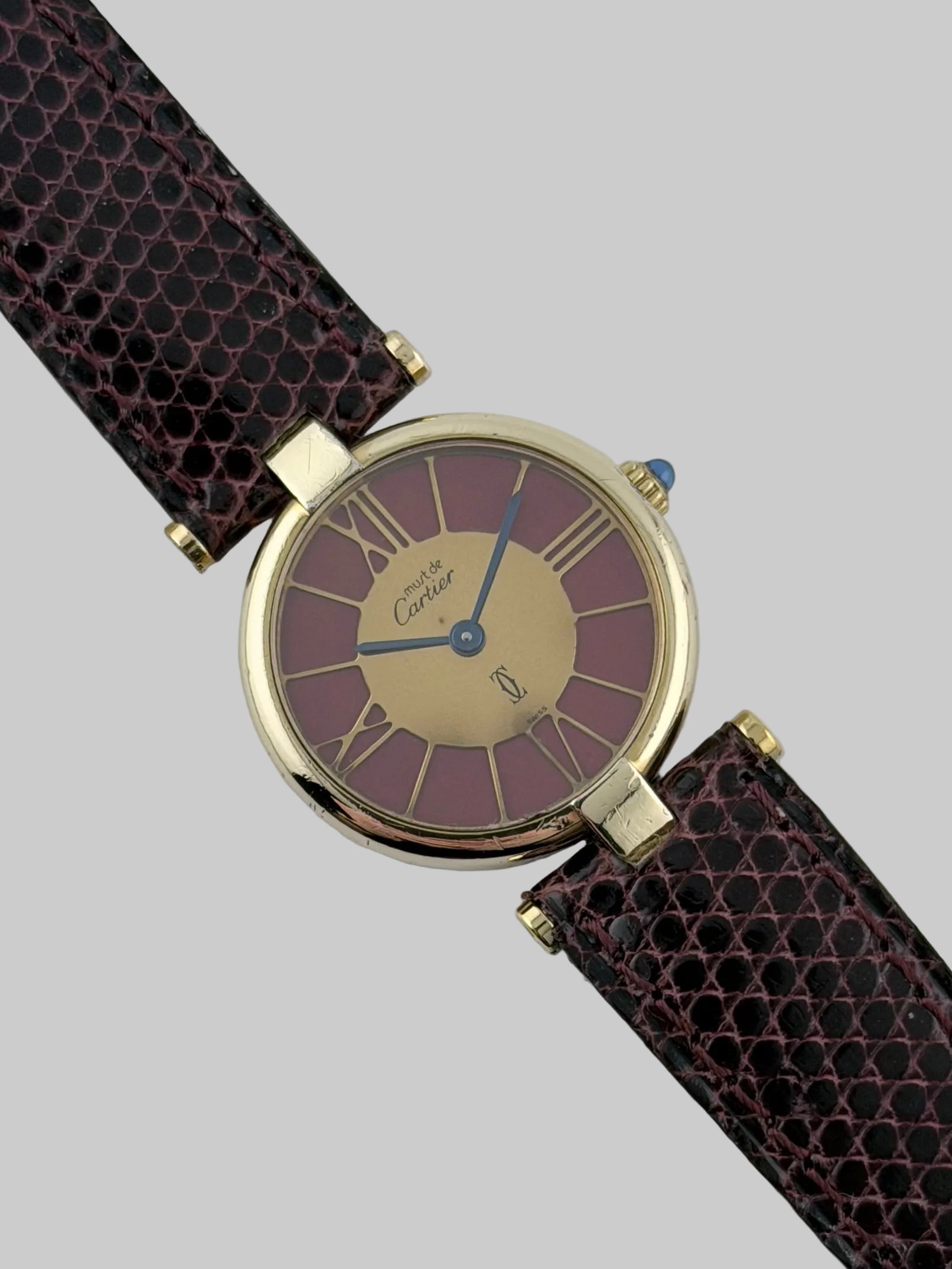 Cartier Must de Cartier Vermeil Quartz - 18 - Gold and Bordeaux Cloisonne Dial - Ladies