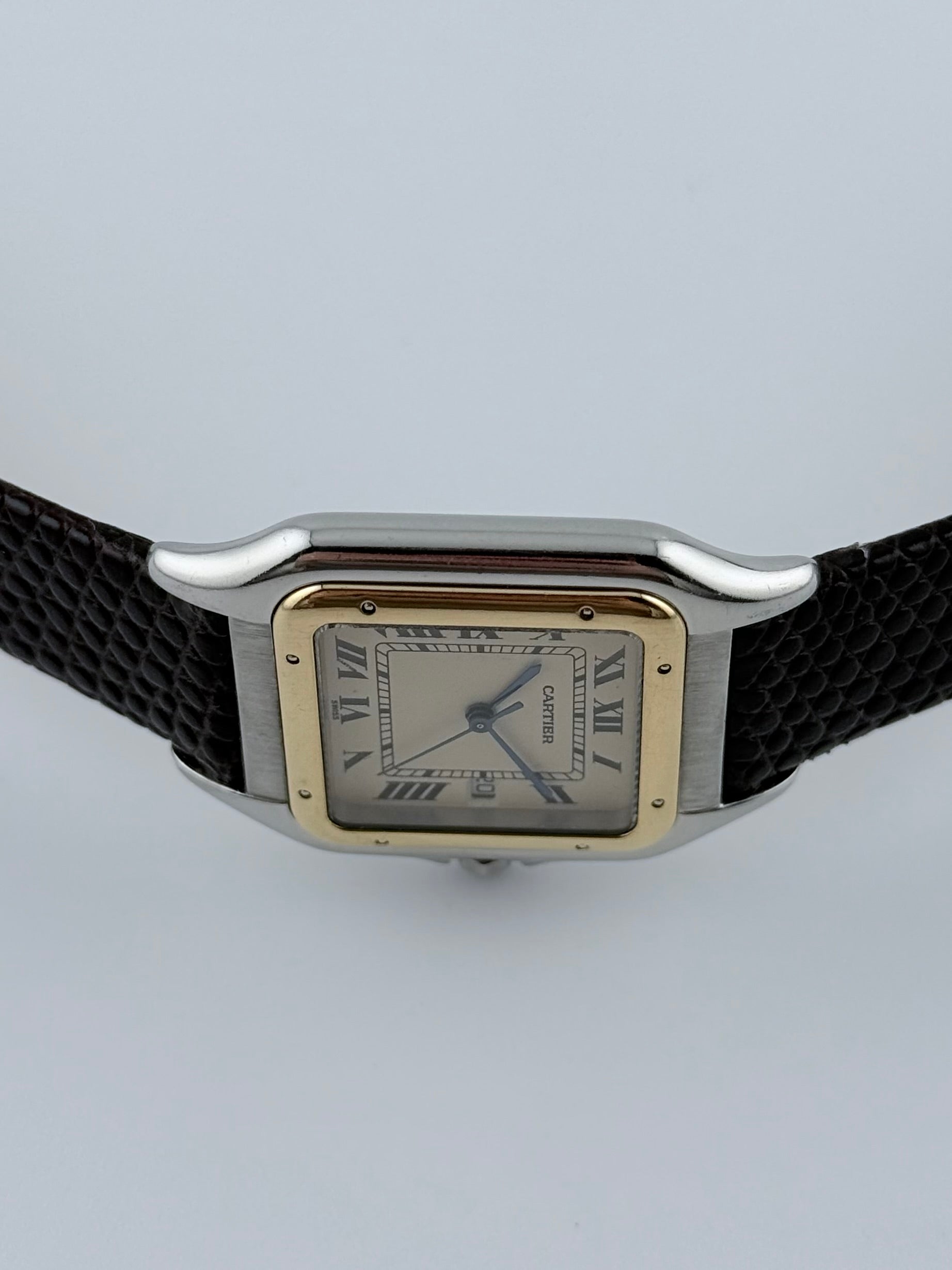 This is an exceptional 1990s Cartier Panthère Quartz with date featuring a solid 18ct gold bezel which is complimented with a beautiful lizard grain leather strap. This particular example presents in spectacular condition throughout and has just received a full service, ensuring perfect mechanical operation.