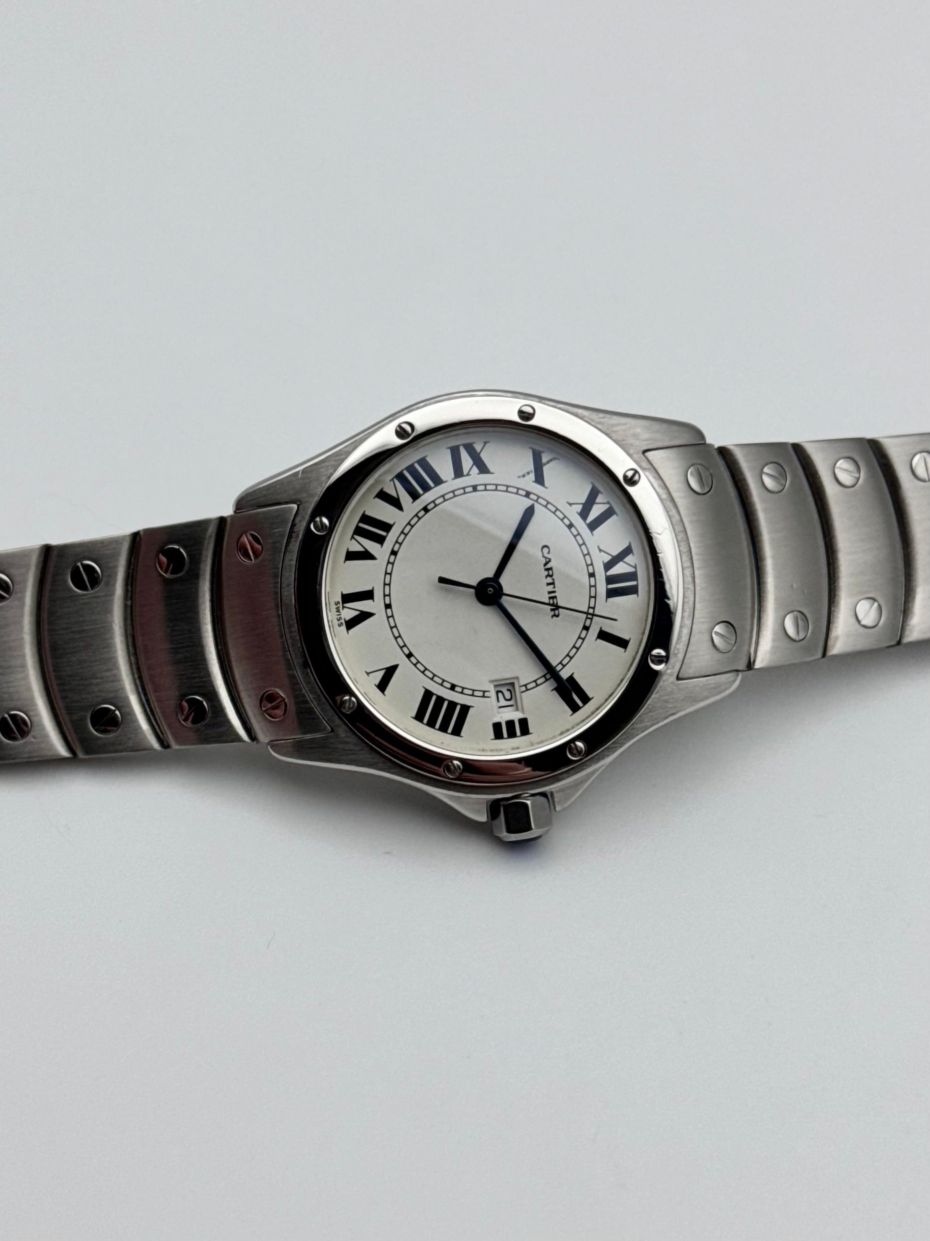 Here we have for sale an absolutely breathtaking vintage Carter from the 1990s which is in spectacular condition. This vintage Cartier is in fantastic, original condition and comes fully serviced. The 32mm case size makes this watch a classy dress piece for a gentlemen alongside the perfect watch for a lady.