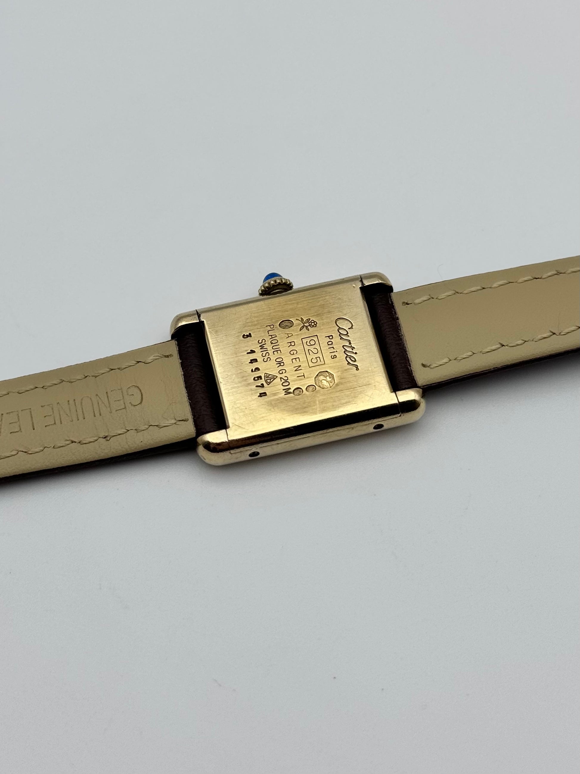 This is an absolutely stunning and classy vintage Must De Cartier Tank which features a manual wind movement which has just been subject to a full service and is keeping excellent time. This piece features a solid 925 silver case which is gold plated. The trinity dial is complimented nicely with a black leather. At just £1095, this watch is the perfect dress watch at a fraction of the price of the standard Cartier Tank. The dial configuration of this watch is becoming increasingly hard to find and would make a beautiful addition to any collection.