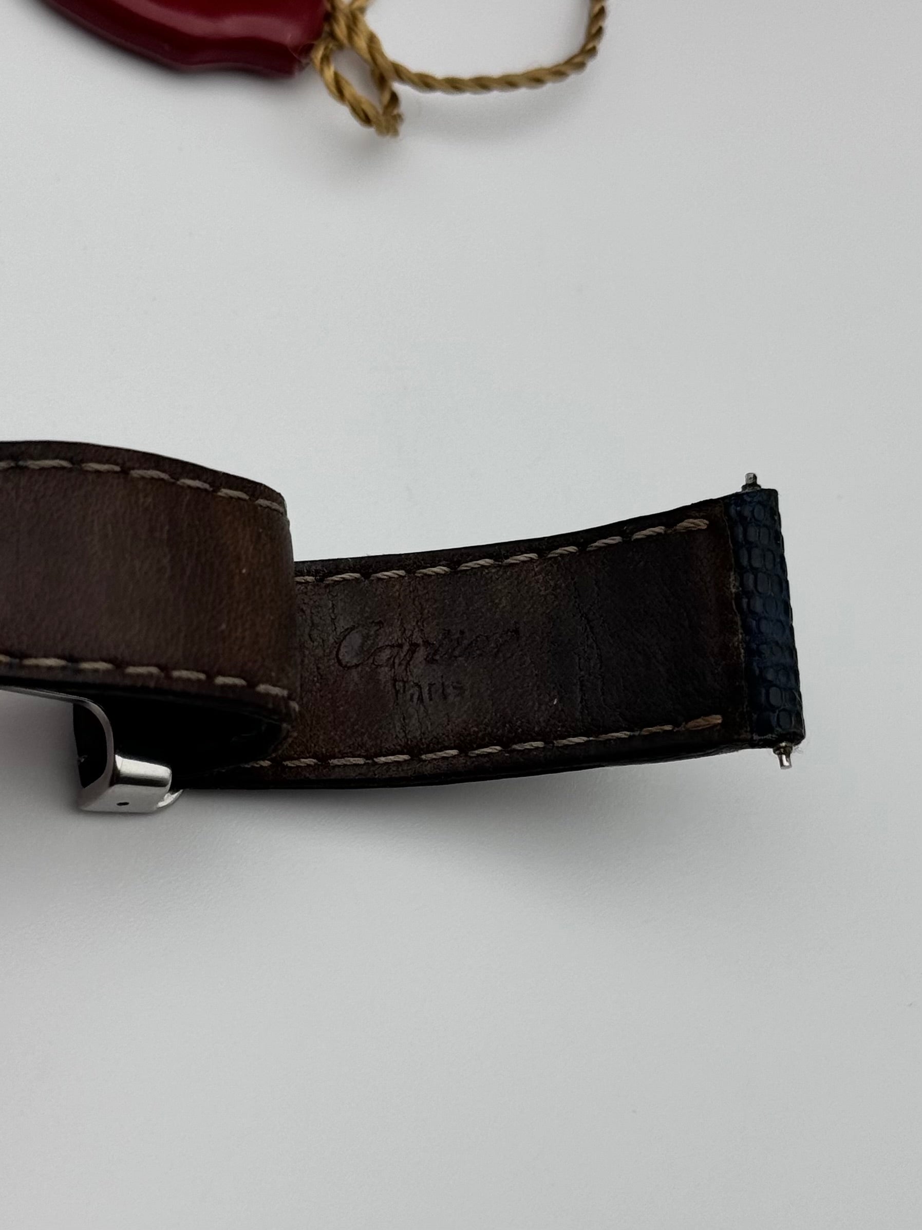 Strap - This Cartier comes on an aftermarket black leather strap alongside its original Cartier Snakeskin strap and deployment clasp.