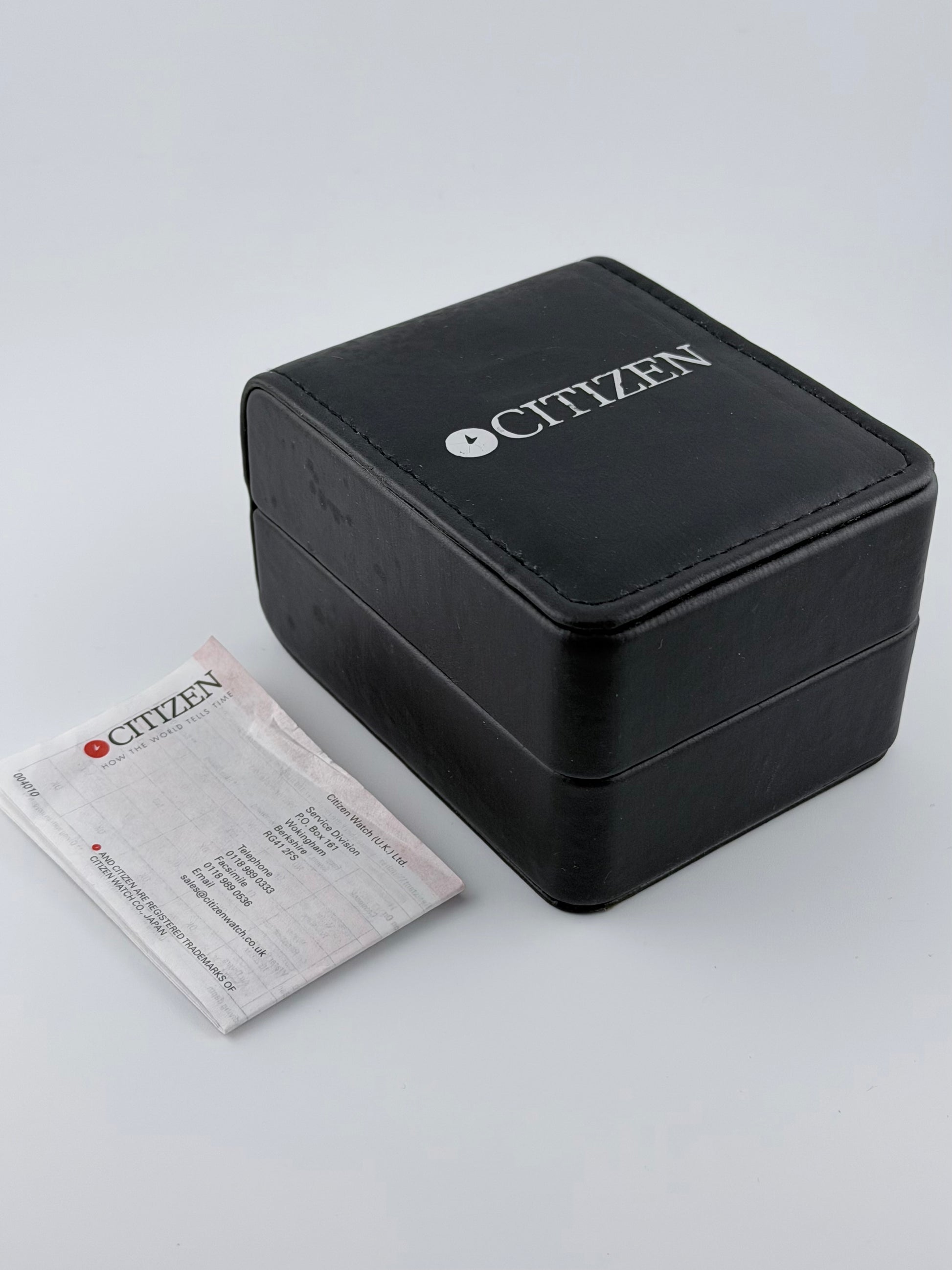 This stunning vintage Citizen Quartz is in excellent condition showing minor signs of wear. The watch is in fully functional order and is keeping good time. It comes with its original box and paperwork dated 2001.