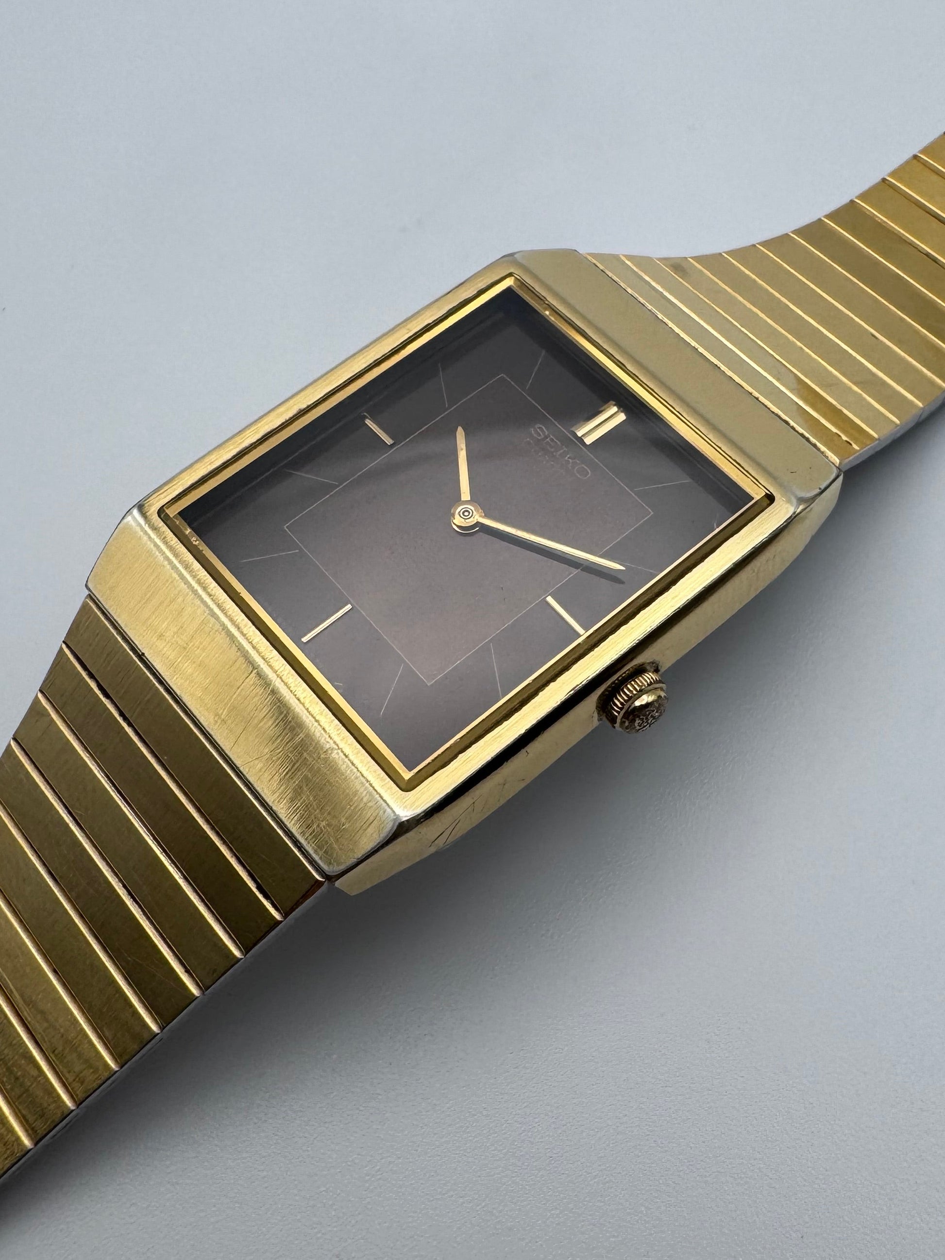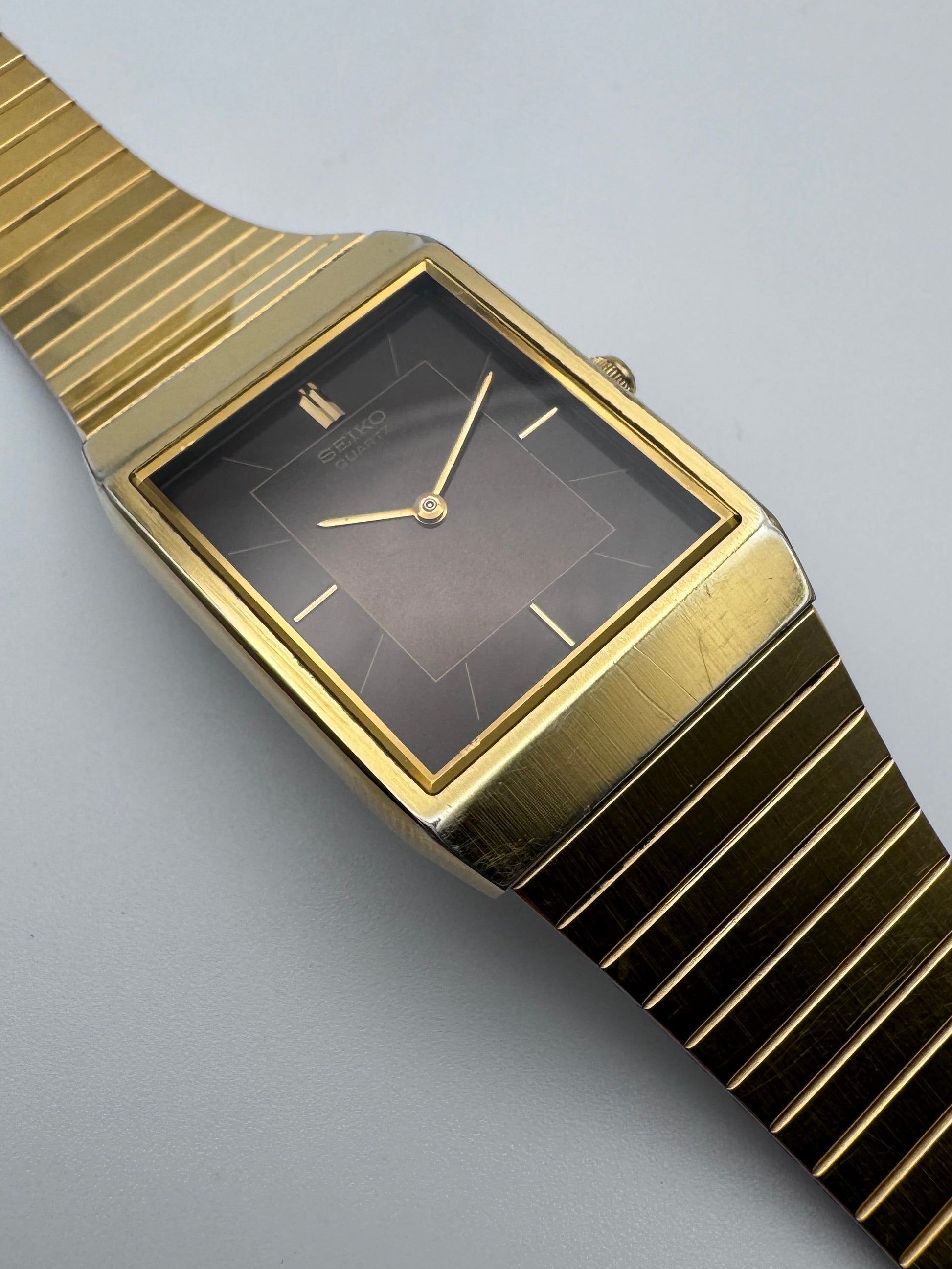This is a lovely Seiko dress watch from around the 90s period. The watch features a lovely two tone brown dial and its original integrated bracelet. This does have some small case wear but for this age this is in great condition. This particular piece is a perfect dress watch for suits. keeps perfect time.