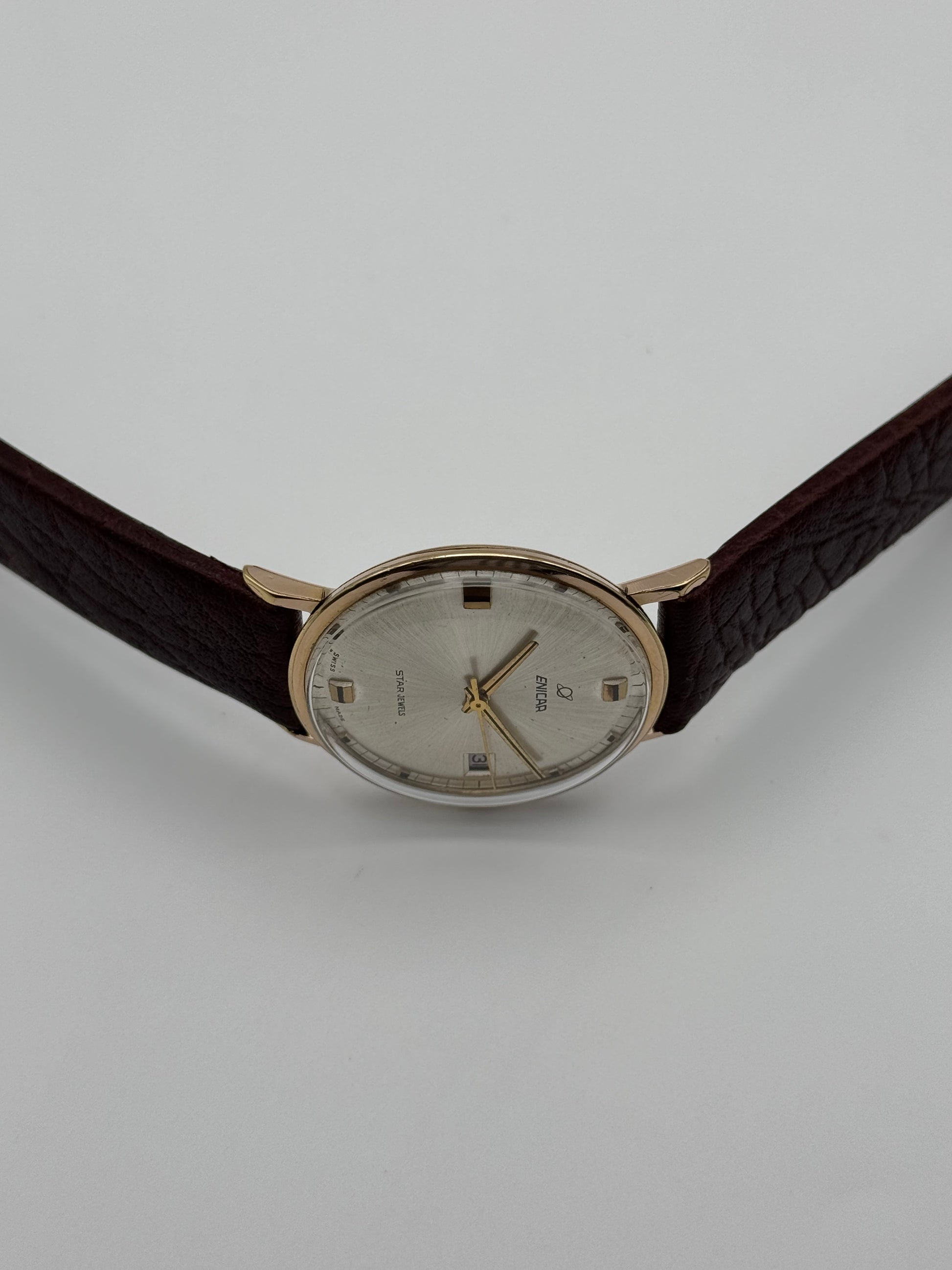 This is a beautiful vintage Enicar from the 70s which features a fantastic large gold plated case with large lugs. The watch is in excellent condition and shows just light wear. It is also working perfectly and keeping excellent time.