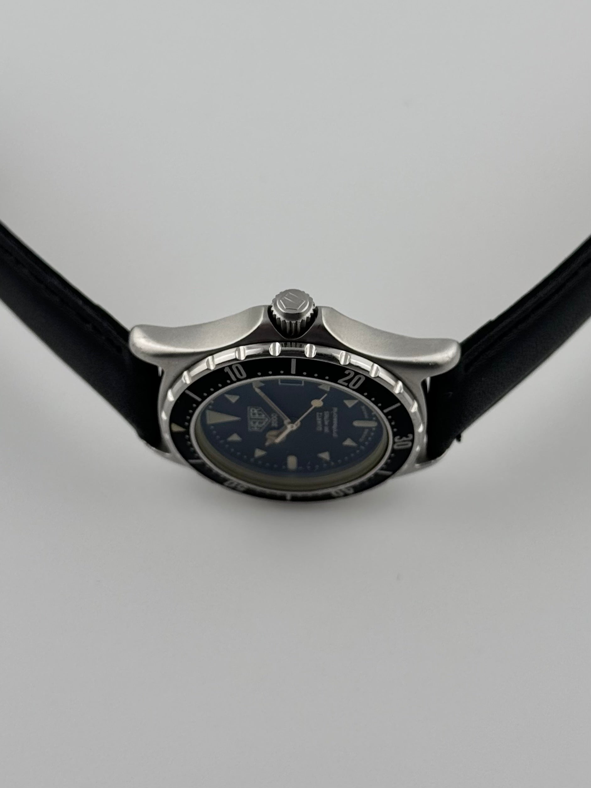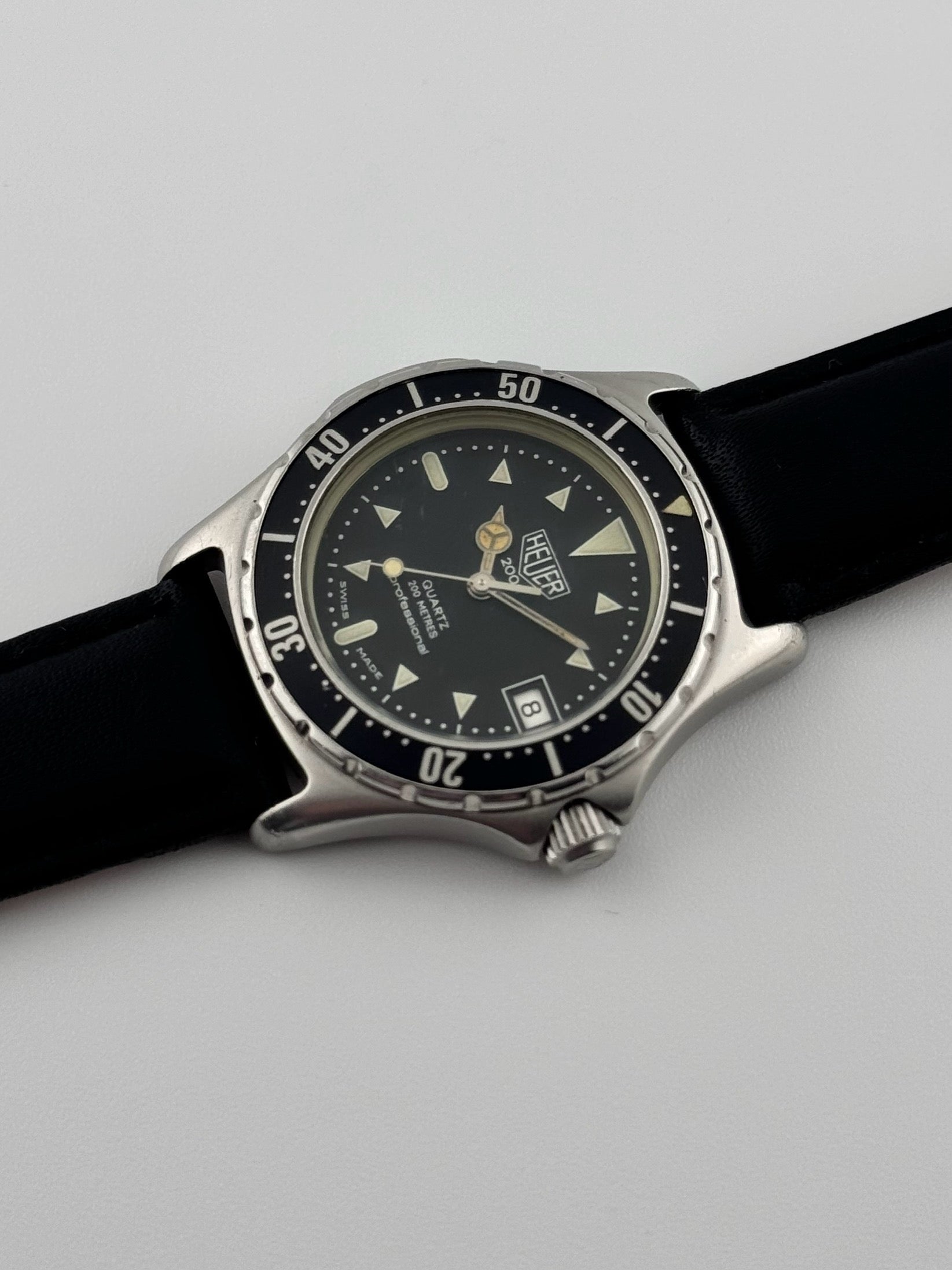 This is a fantastic and affordable vintage Heuer 2000 Professional 200m from the mid 1980s. The watch is in nice condition for its age and shows general signs of wear.