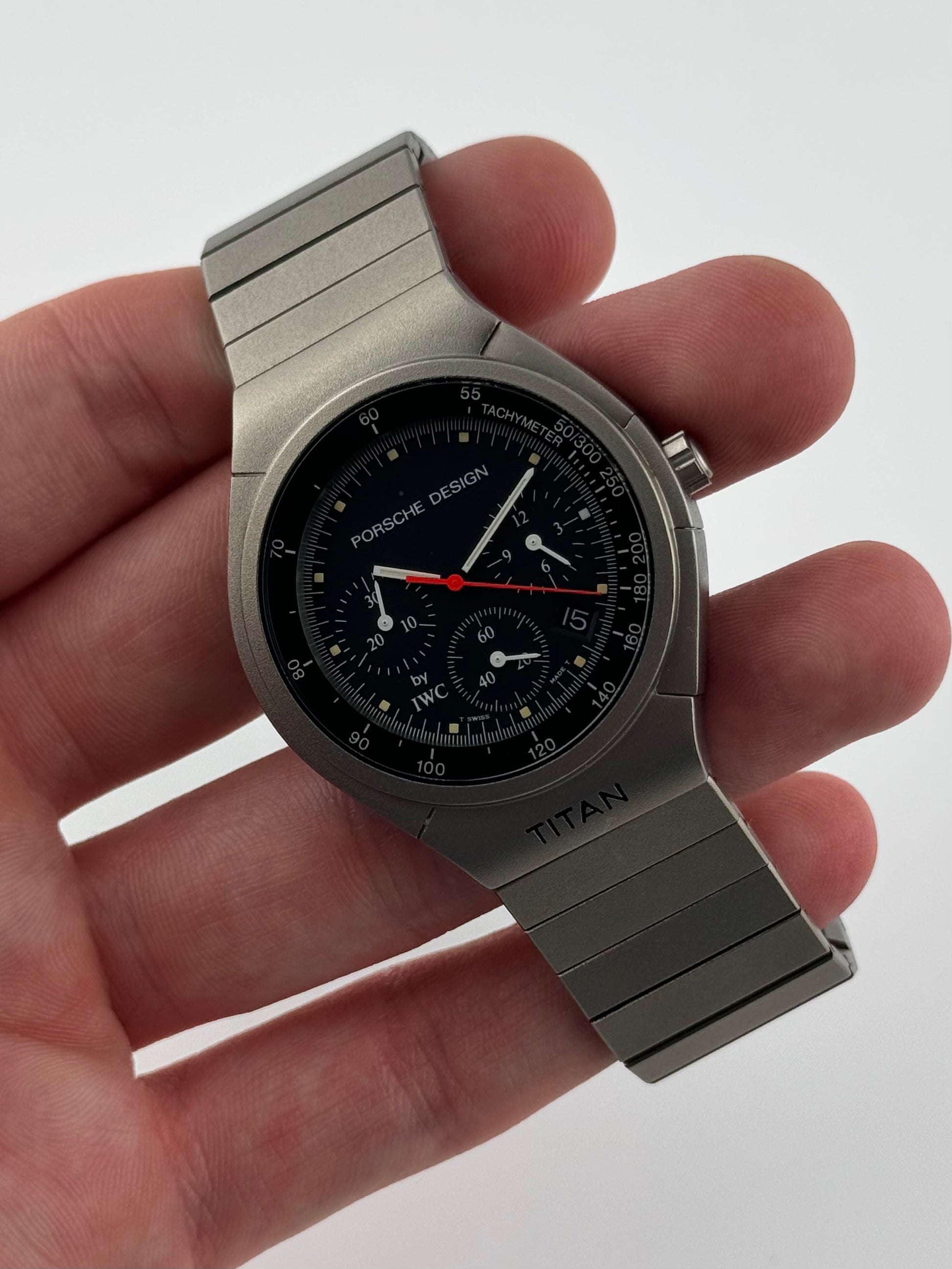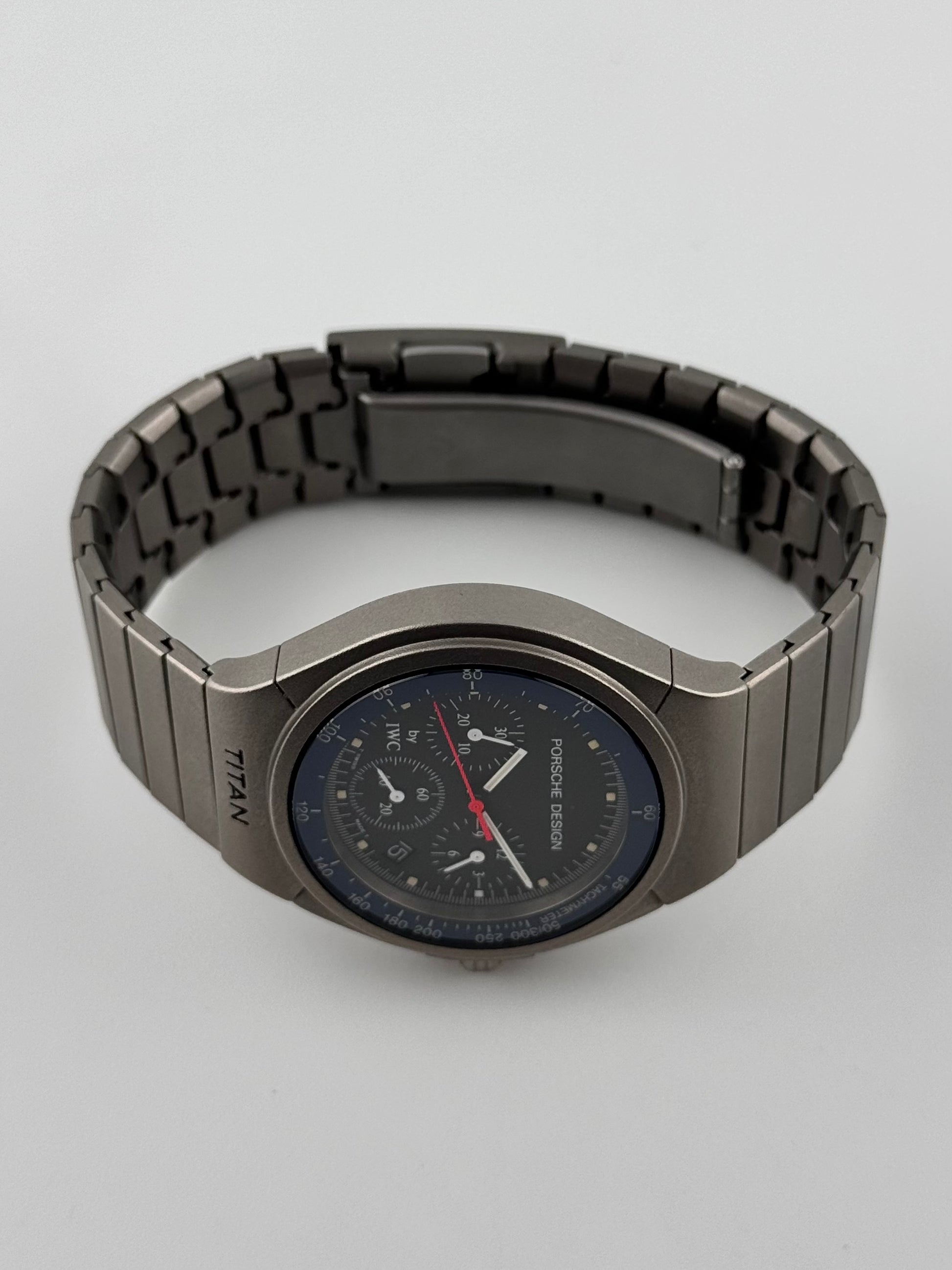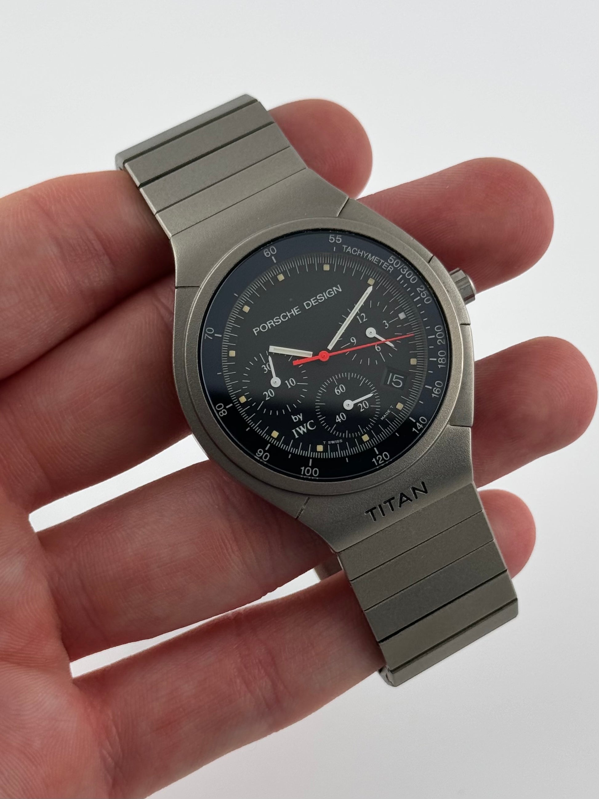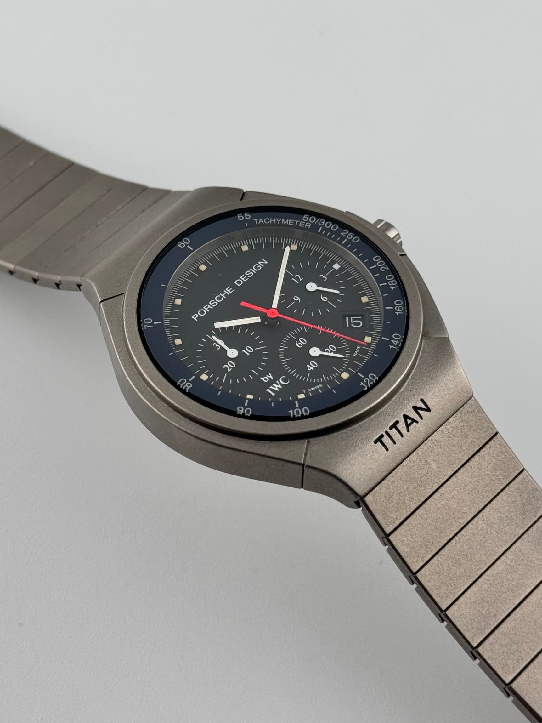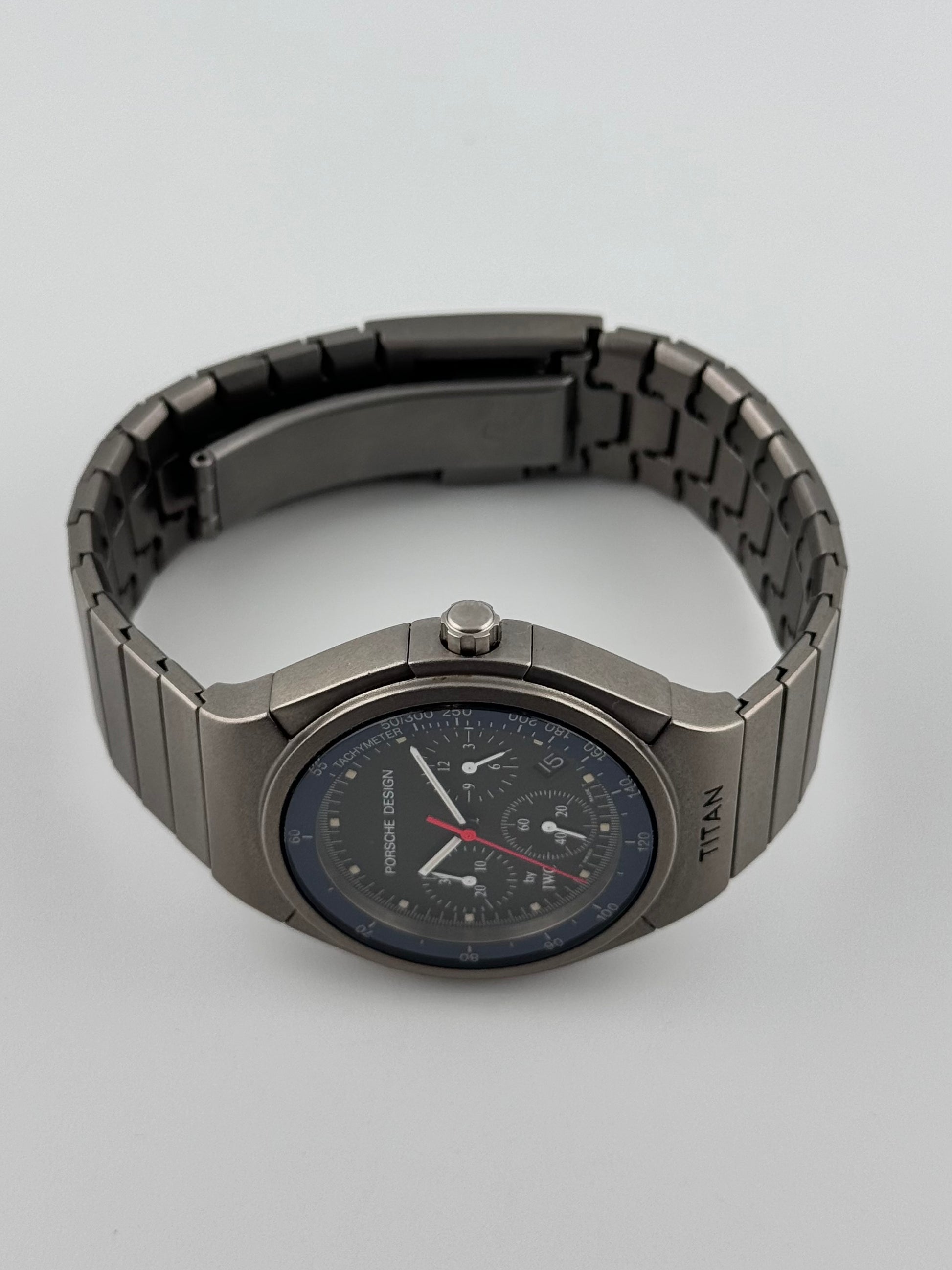 This is a breathtaking titanium IWC Porche Design Titan from the 90s. This piece is a rarity to find especially in this condition. It is ready to be enjoyed for years to come by its new owner! This piece features amazing integrated pushers on the right hand side!