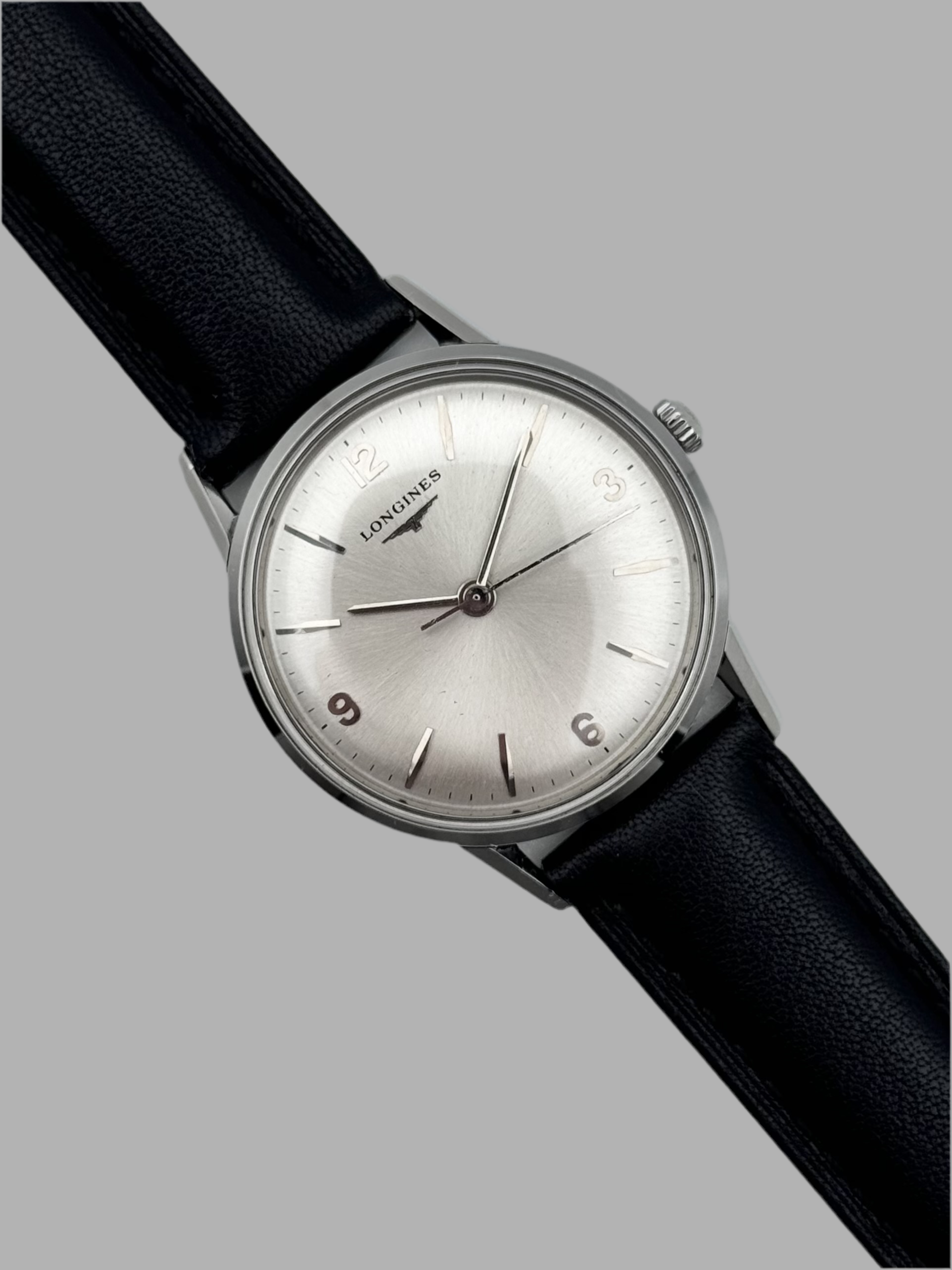 This is a lovely and rare vintage Longines from the 1950s which features an amazing original silver dial. The watch is in amazing condition for its age and is keeping time perfectly within specification.