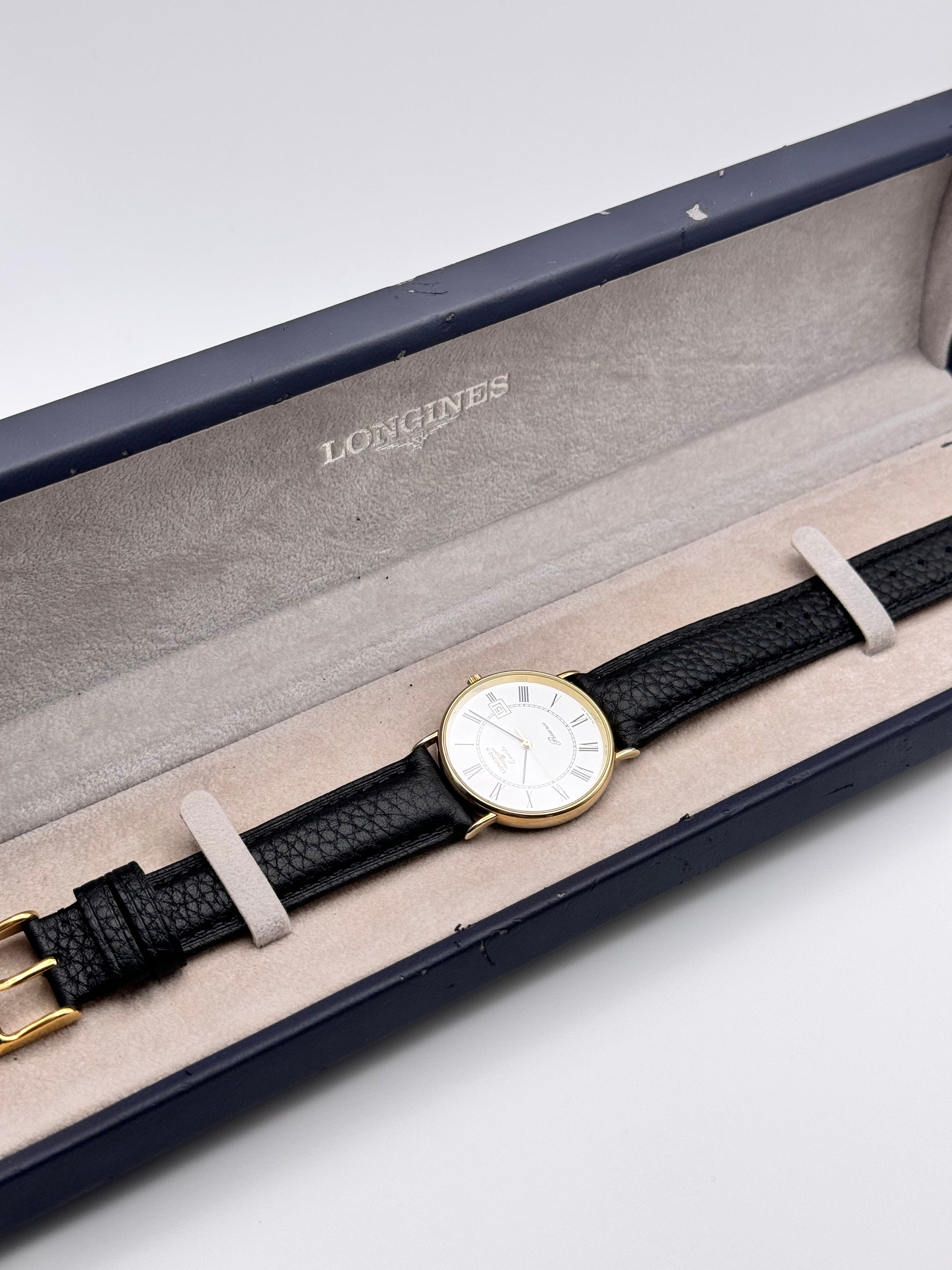 This is a wonderful vintage Longines Quartz in solid 9ct gold which is in excellent condition for its age showing just light wear throughout. The watch works perfectly and is keeping great time. The watch still has its protective sticker on the back case. This example also comes with its original box, outer box and booklet.