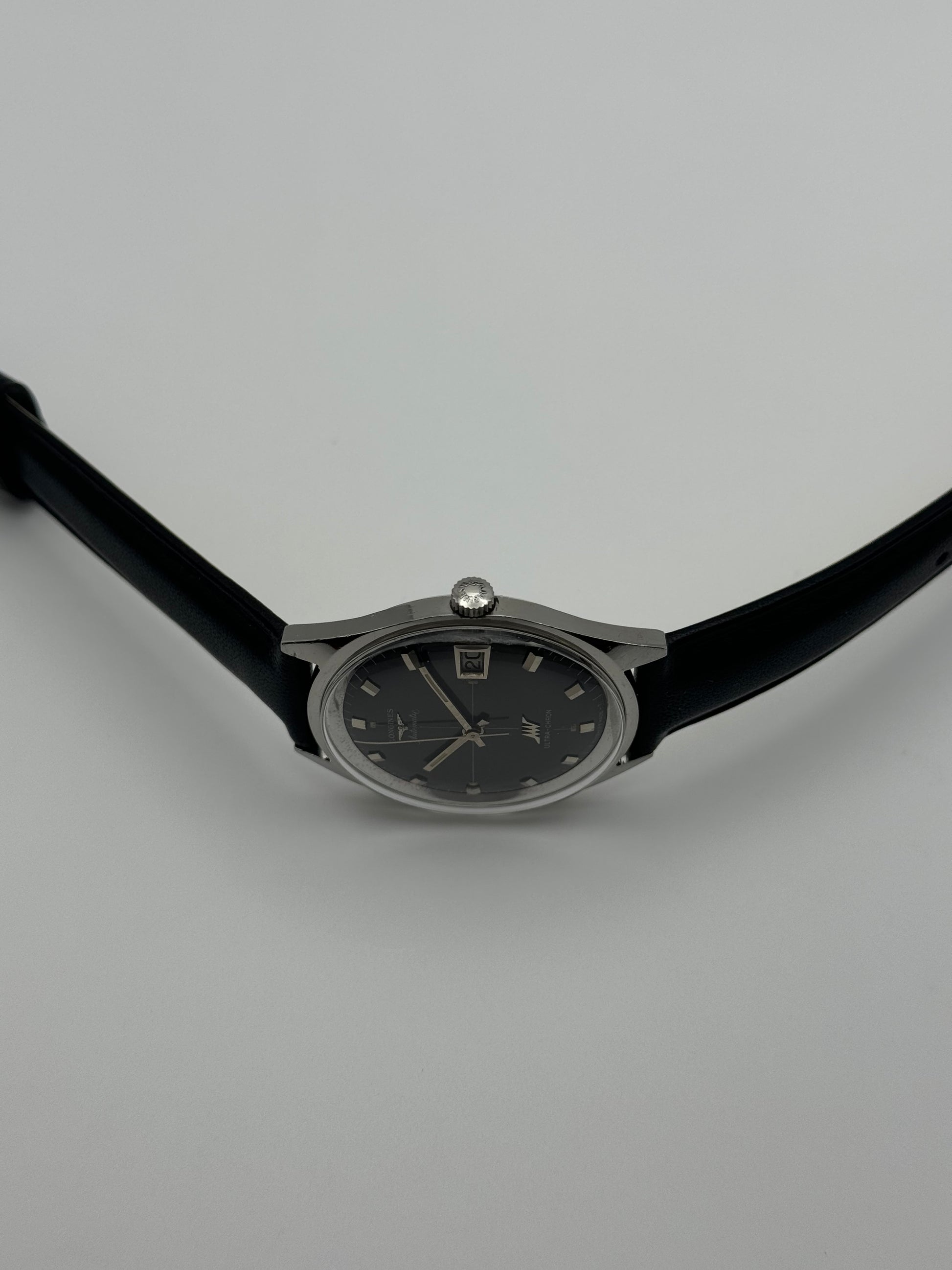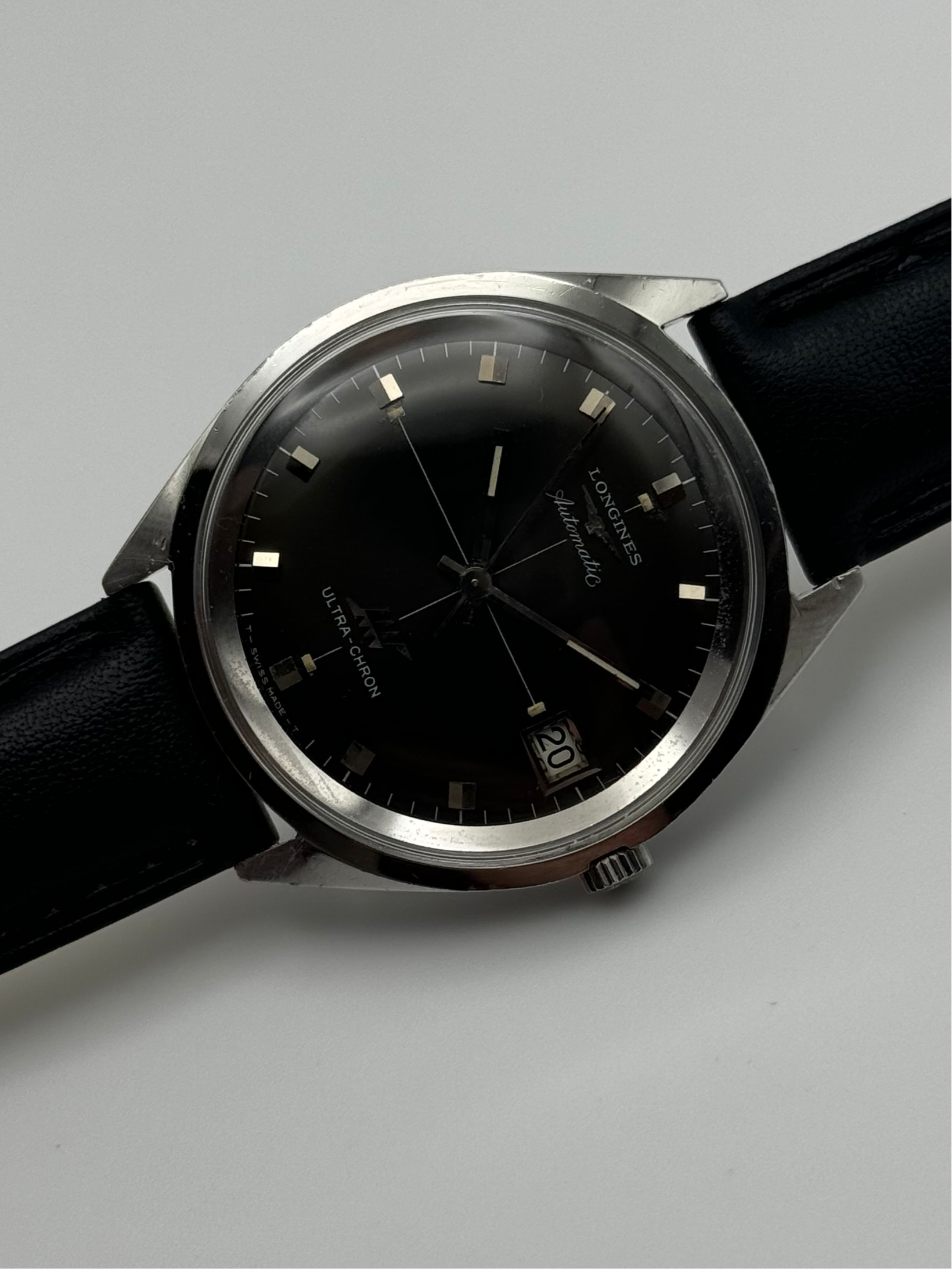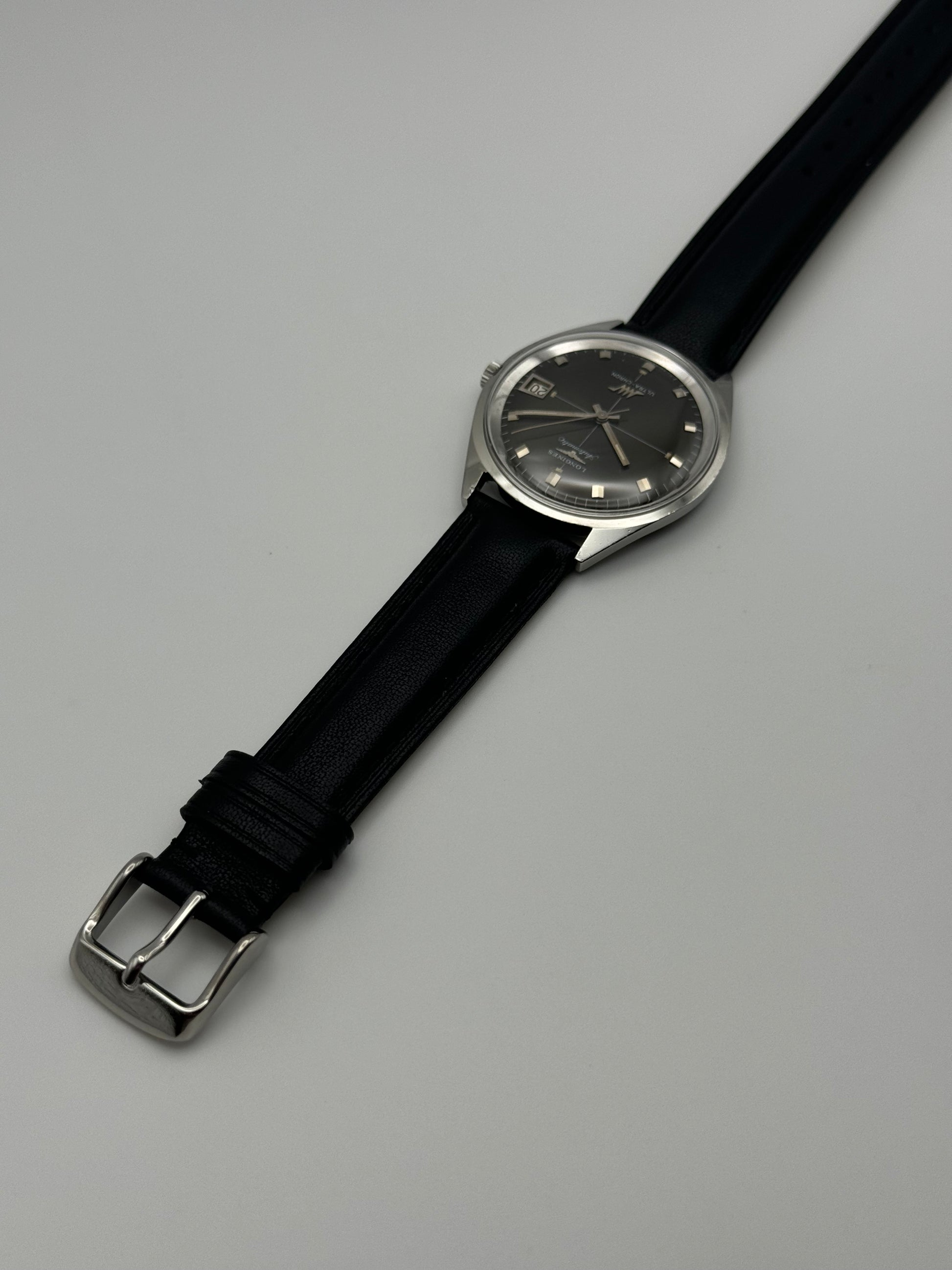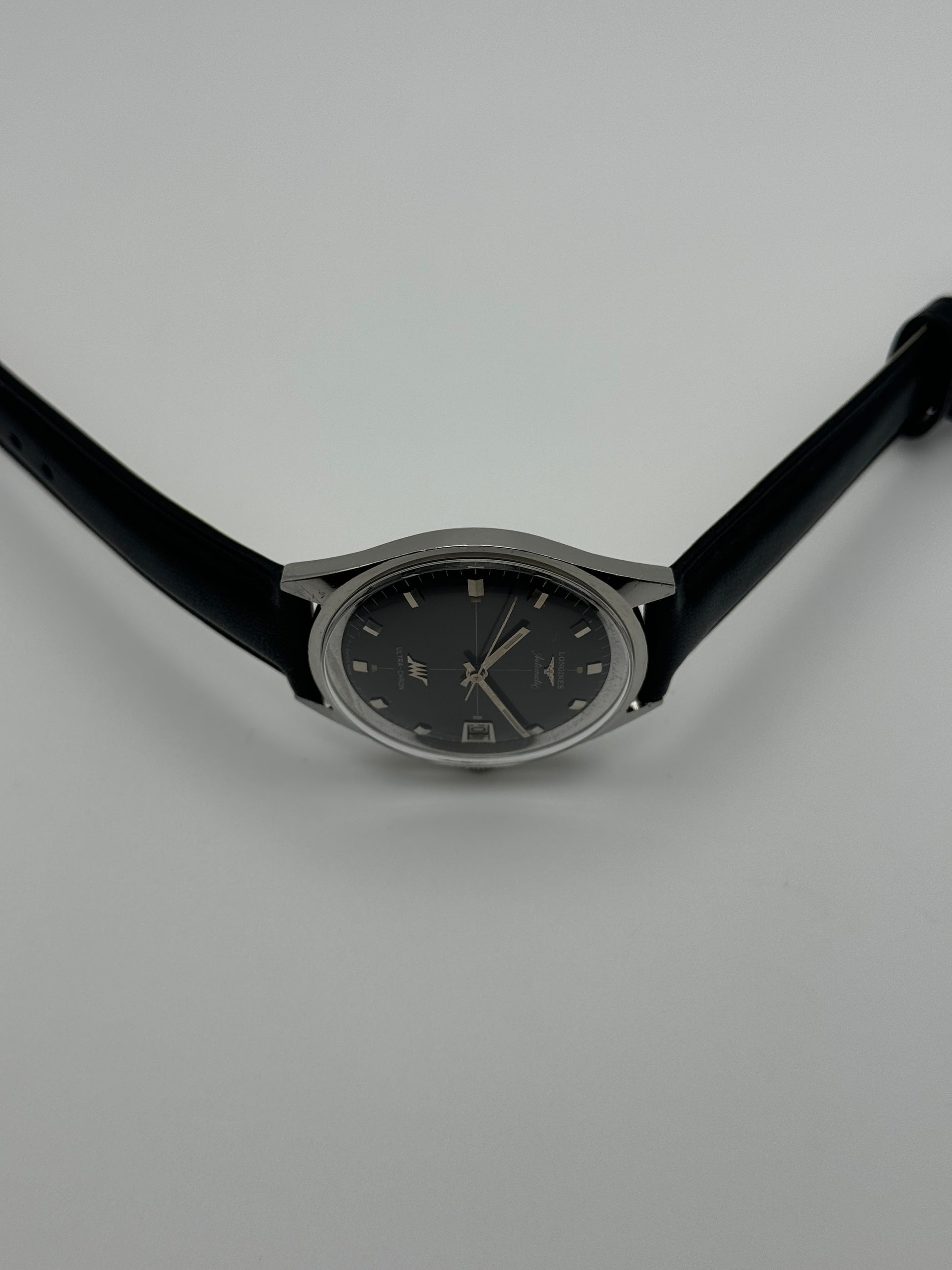 This is a very rare and absolutely stunning vintage Longines from the late 60s. This piece features a fantastic grey dial which is accented with a fully functional date complication and a crosshair pattern in the centre. This piece is in freshly serviced condition and is working flawlessly.