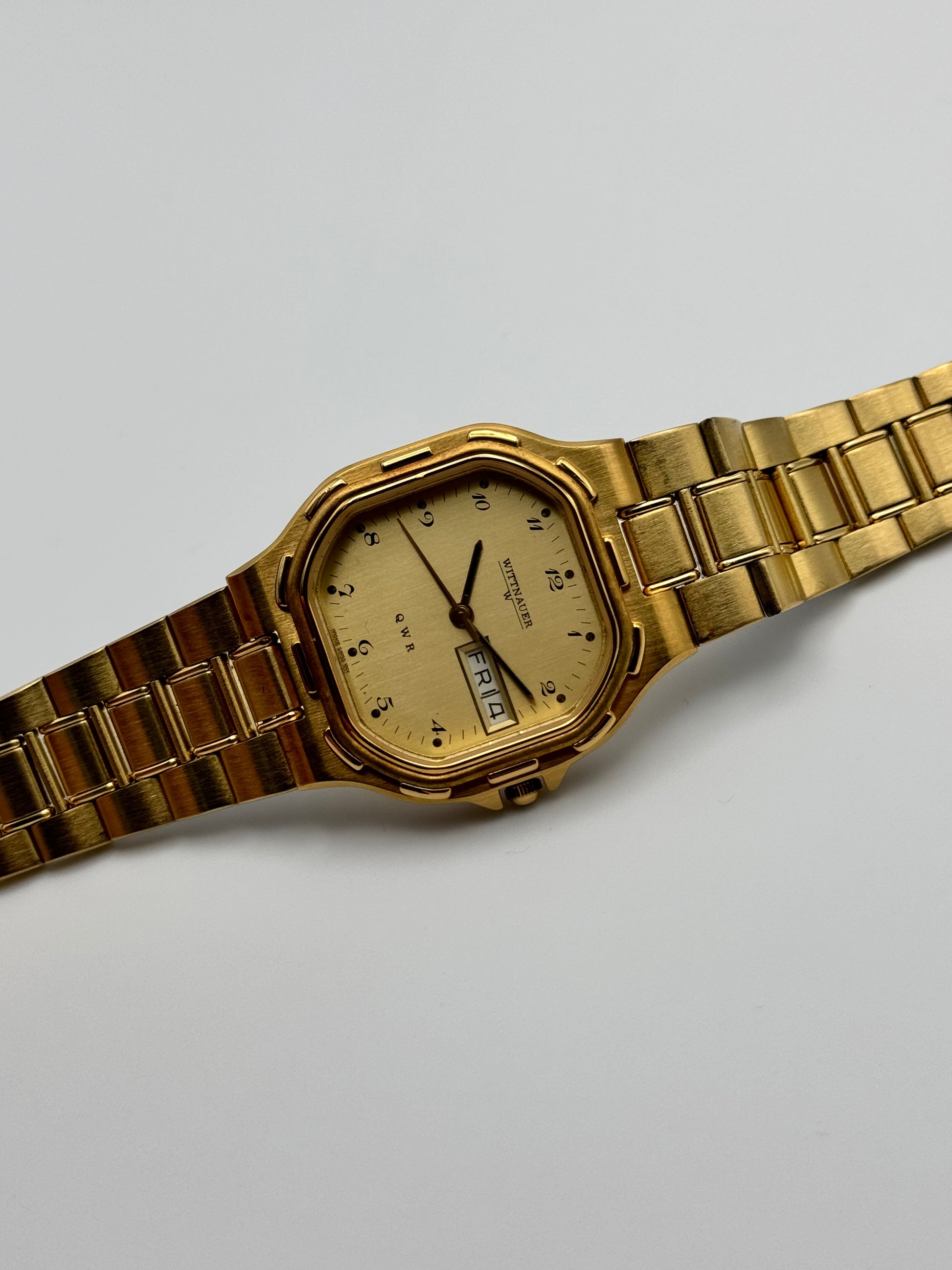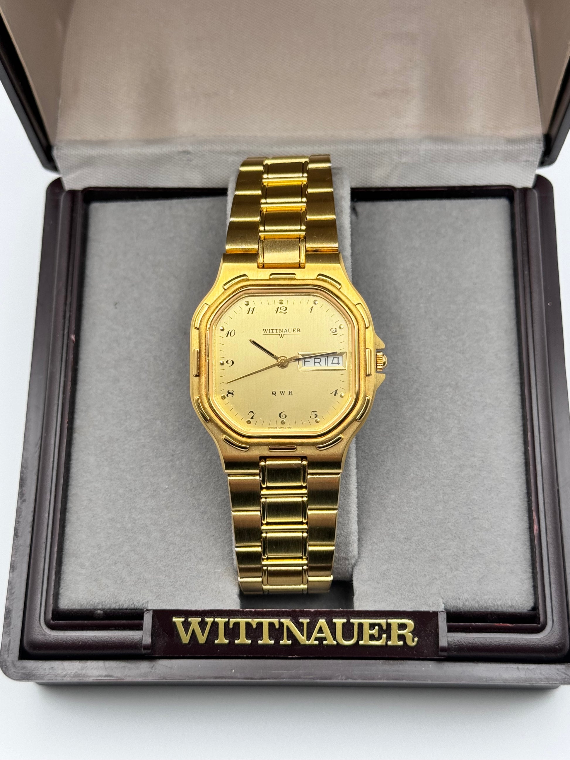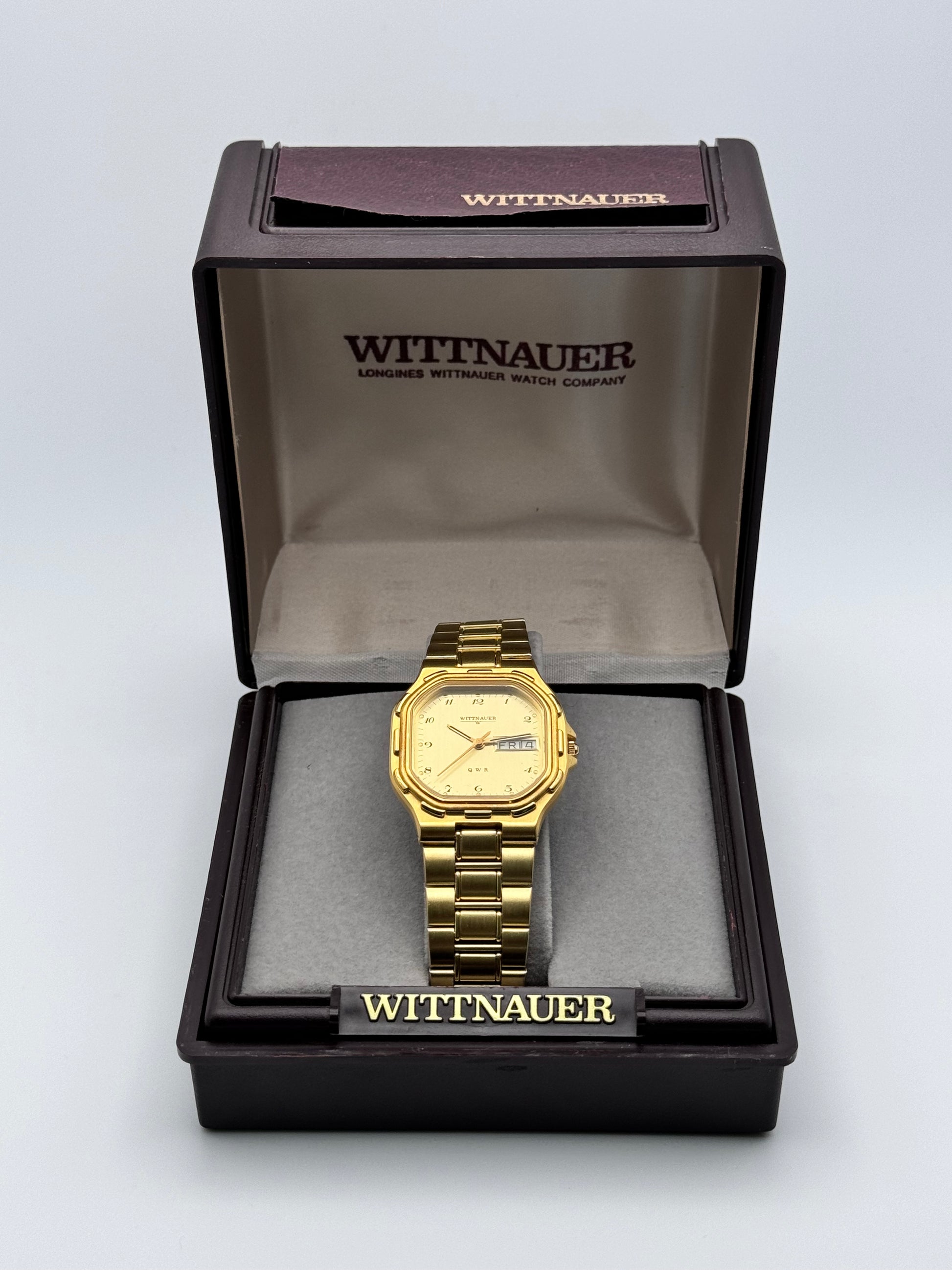 This is an incredible and rare Wittnauer by Longines quartz piece which is in new old stock condition and shows just some storage marks in places.