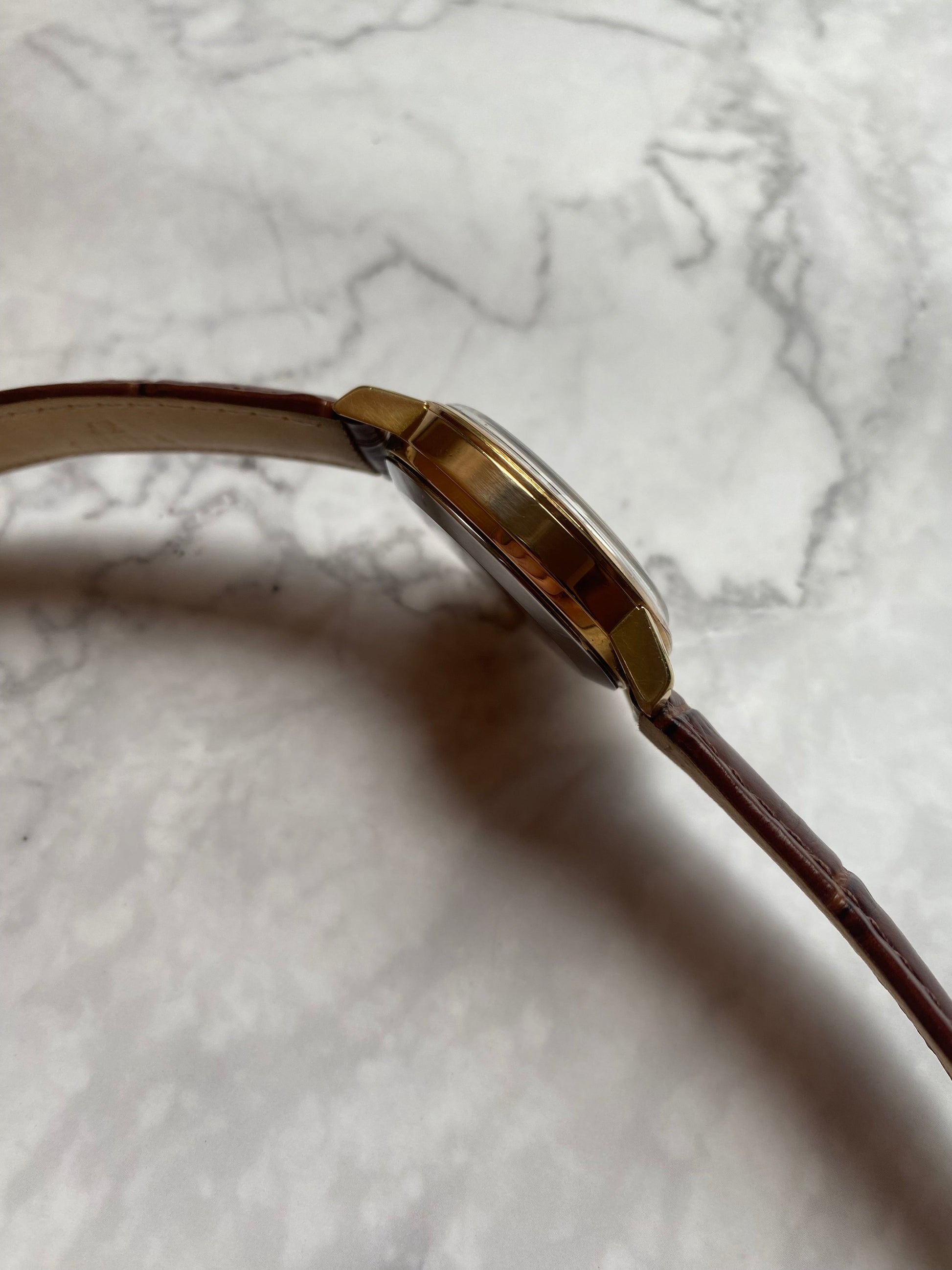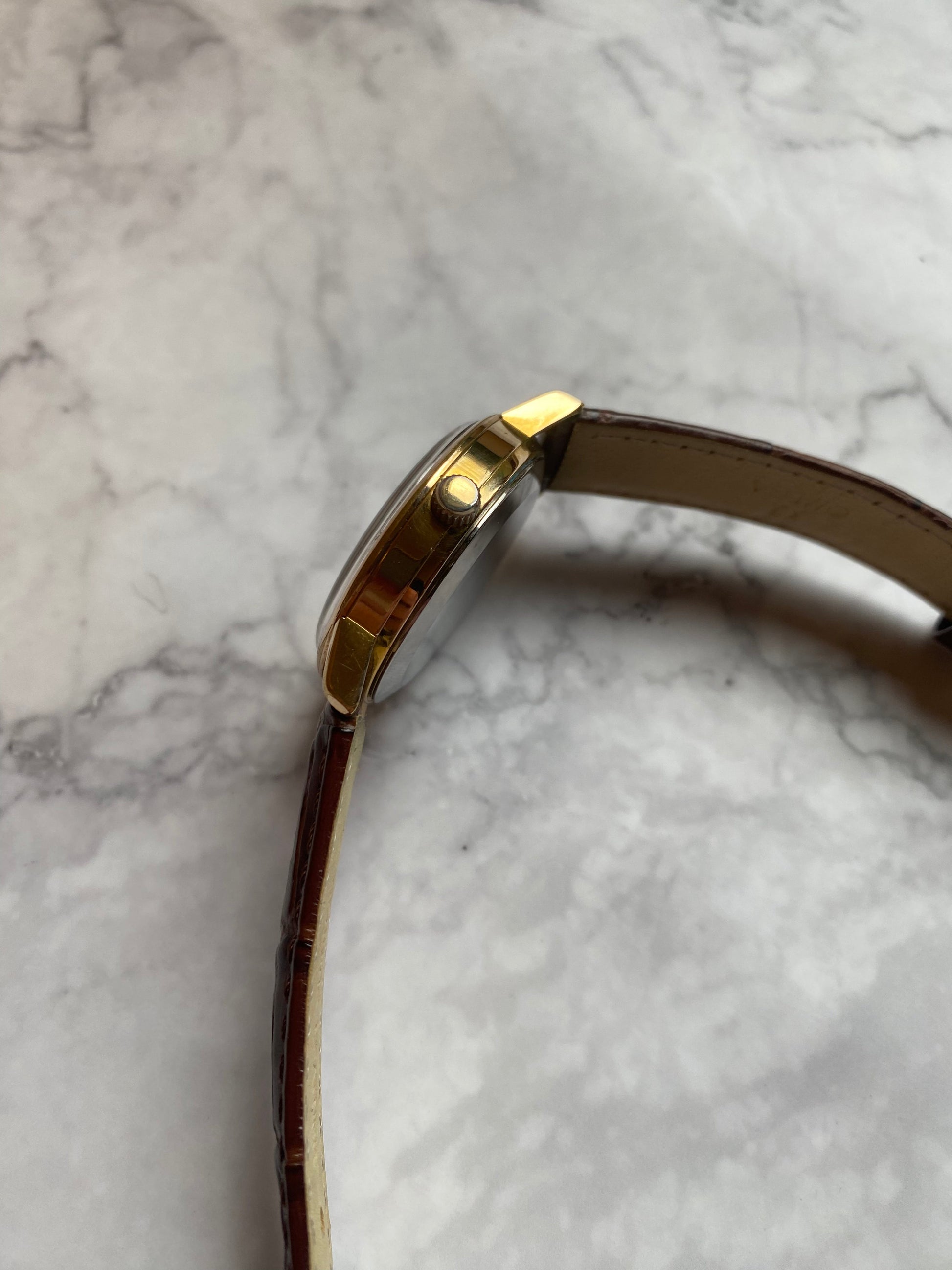 This is a beautiful Omega Automatic from 1960. The gold plated case is in great condition for a 63 year old watch. The crown is not the original but suits the watch very well. The condition of the dial is good and has been shown clearly in the pictures. There is a green spot on the 10 o clock marker. This is much more noticeable on the pictures than in real life! The watch features a fully functional date window. The Crystal has a very small mark on it just above the 6 o clock position.