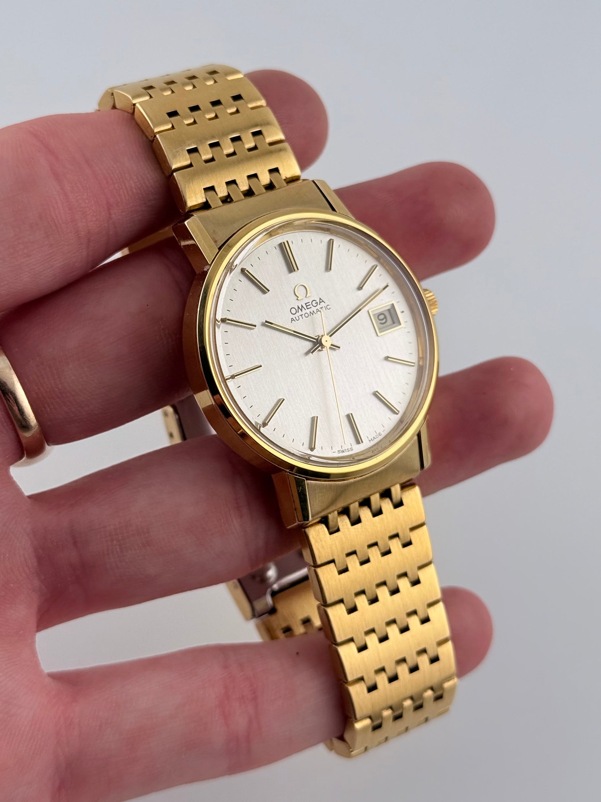 This is a lovely vintage Omega Automatic from the 1970s which features a lovely brushed silver dial which is nicely complimented by its original bracelet. The watch is in brilliant working order and its high beat movement is keeping excellent time.