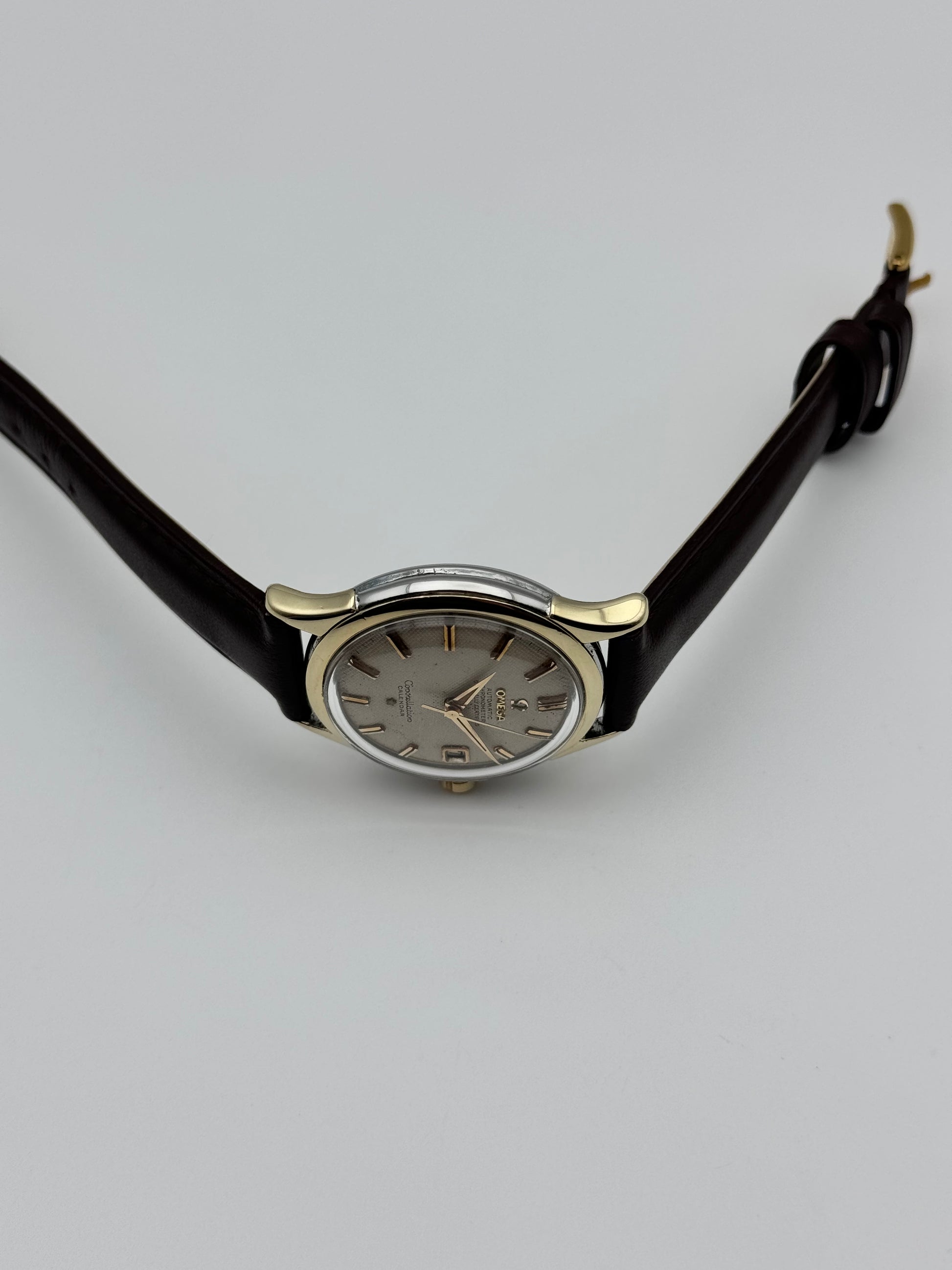 This is an absolutely spectacular and extremely rare vintage Omega Constellation Calendar which was made in 1958. This piece features a stunning honeycomb dial which displays a fully functional date complication. The watch is in perfect working order and is keeping excellent time within specification.