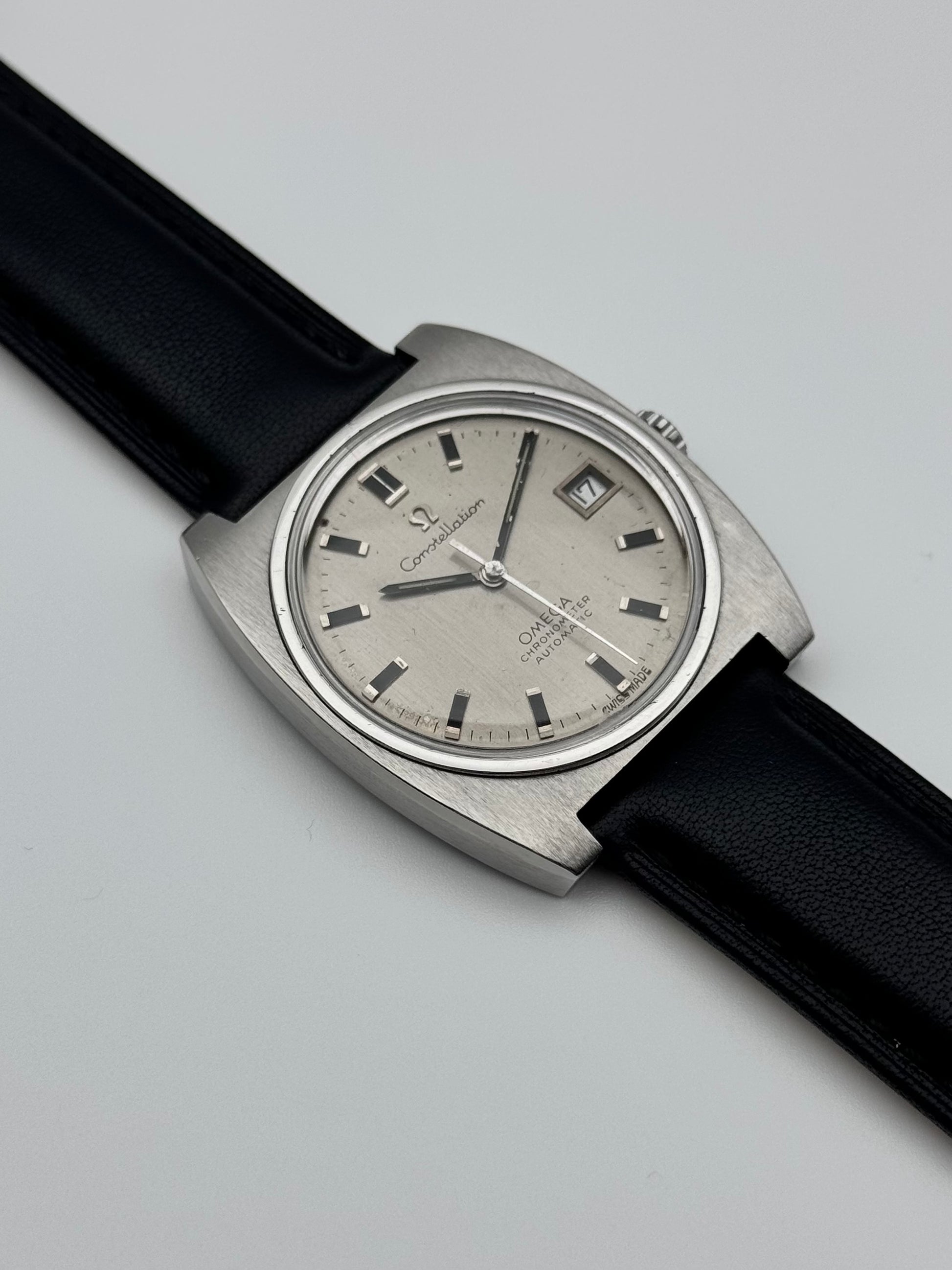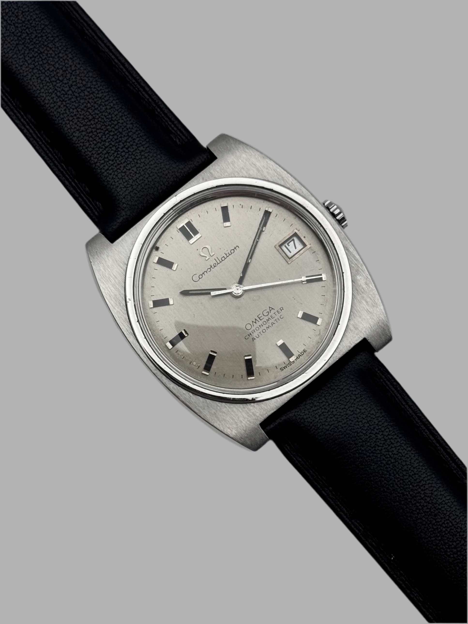 This is a lovely affordable vintage Omega Constellation. This piece features a brushed grey dial which displays a fully functional Date complication. The watch is in perfect working order and is keeping excellent time well within specification.
