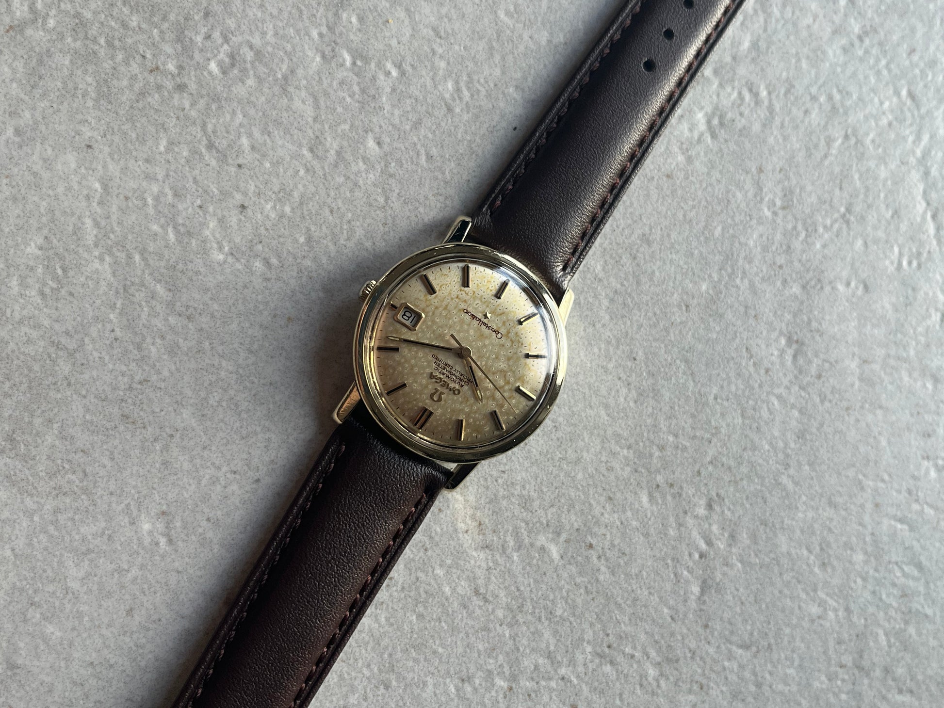 This is an incredible vintage Omega Constellation which features a perfect patina dial which is in beautiful condition. The watch case is in very presentable condition showing signs of use over the years. We have just had the watch fully serviced and it is keeping brilliant time well within specification.