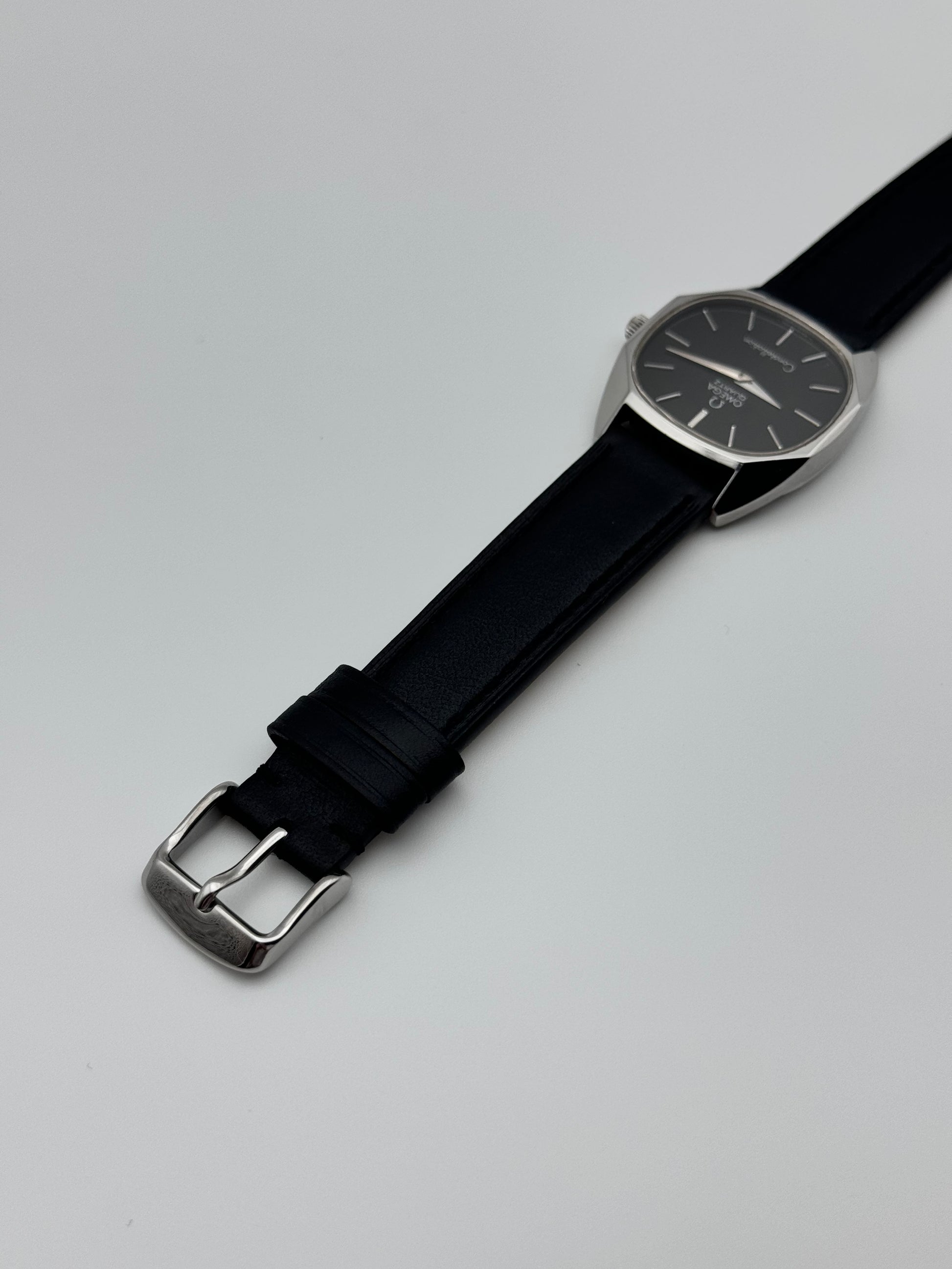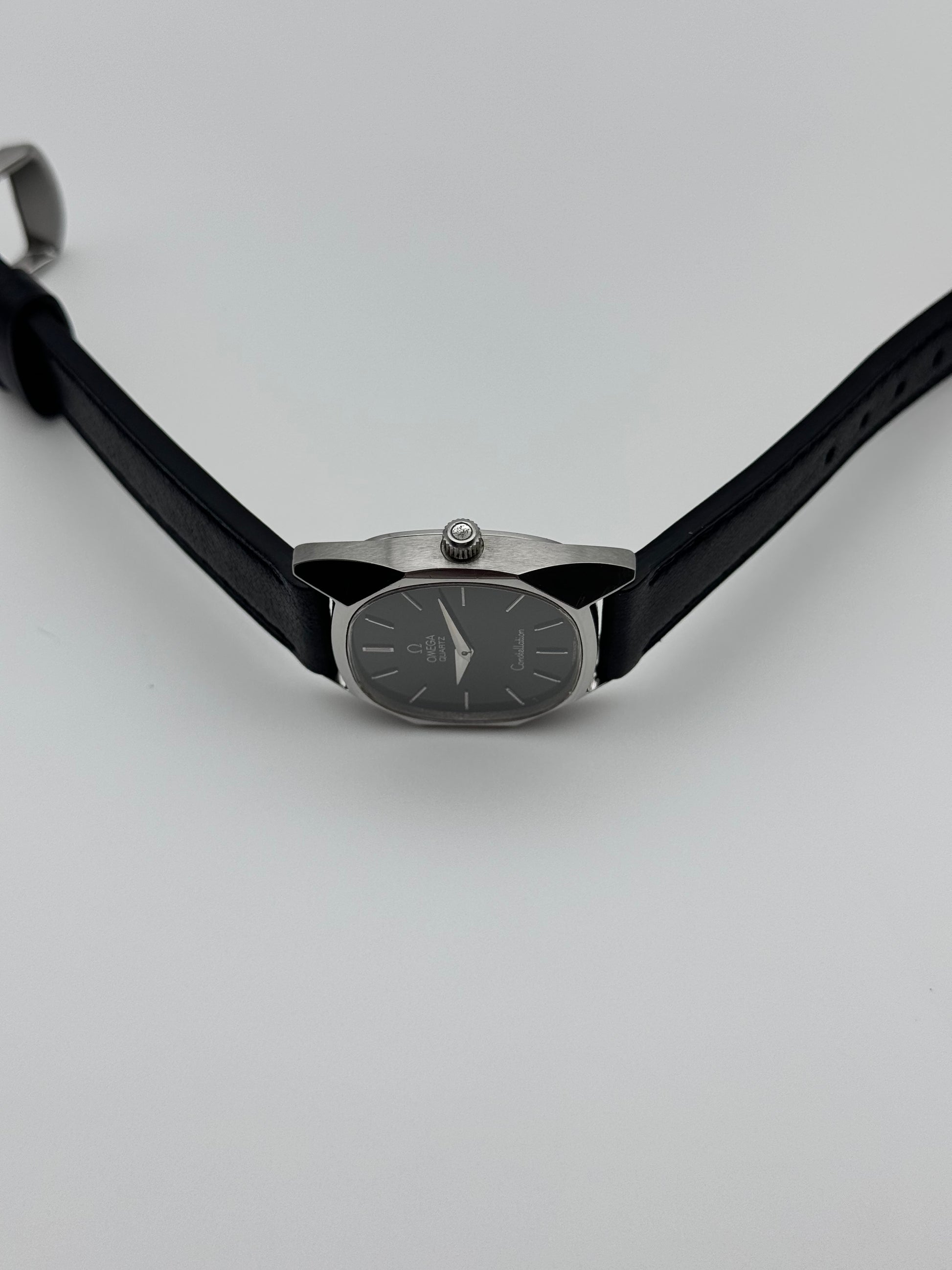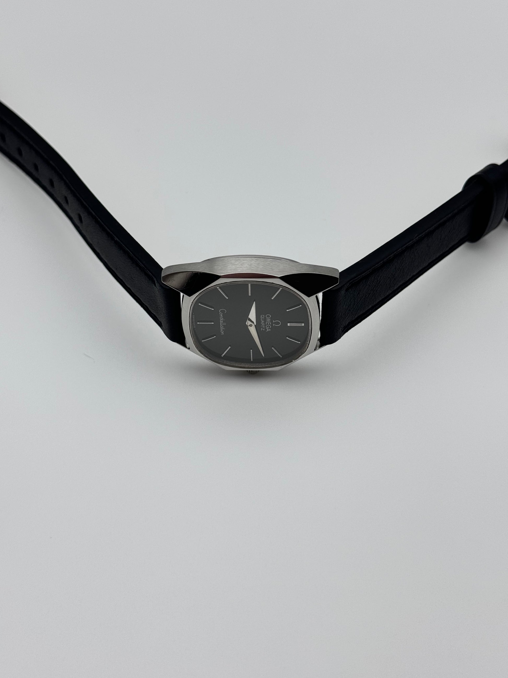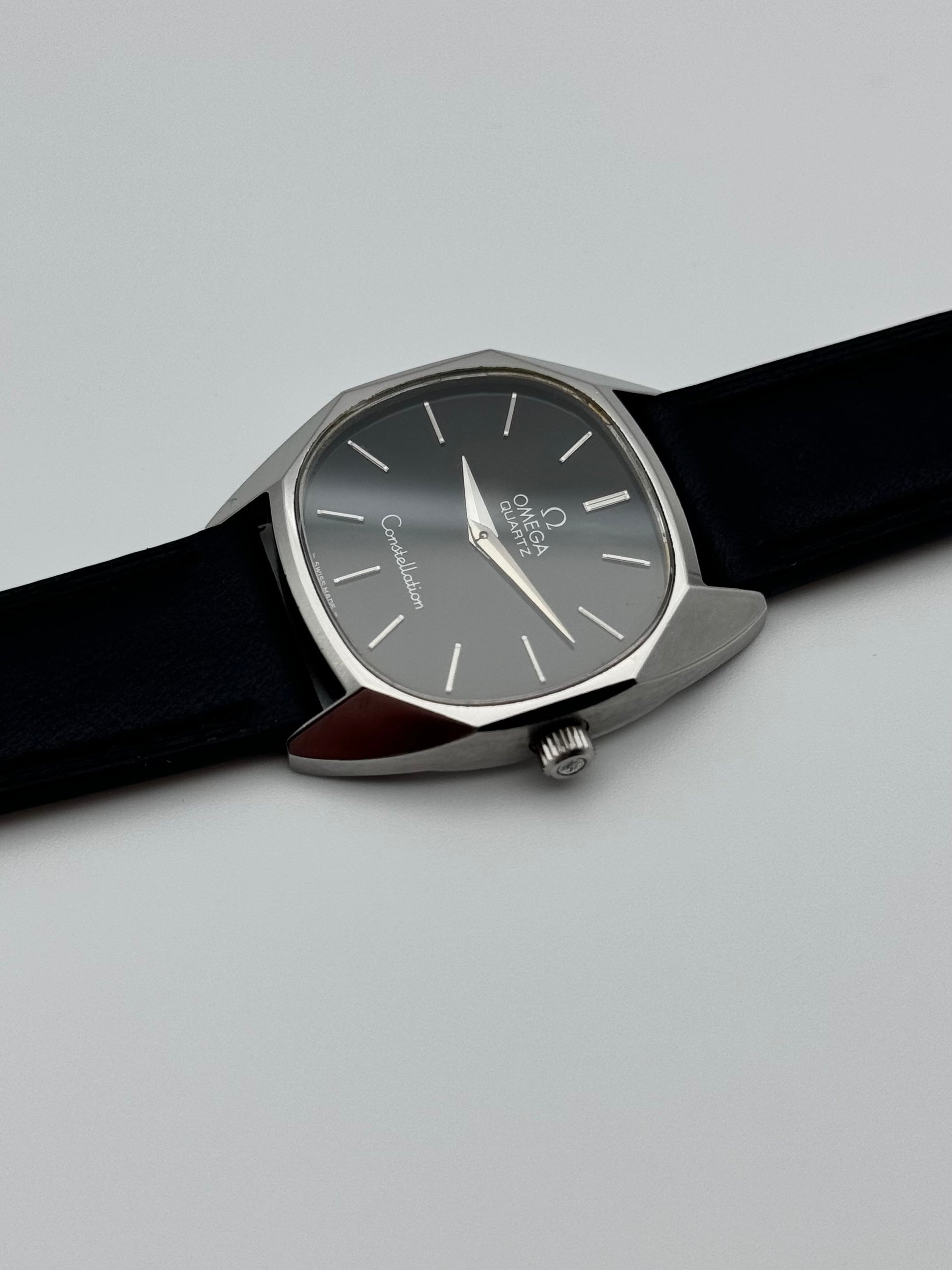 We have for sale a very rare Omega Constellation Quartz which features a beautiful black dial. The watch is in great condition both cosmetically and mechanically. It is keeping perfect time.
