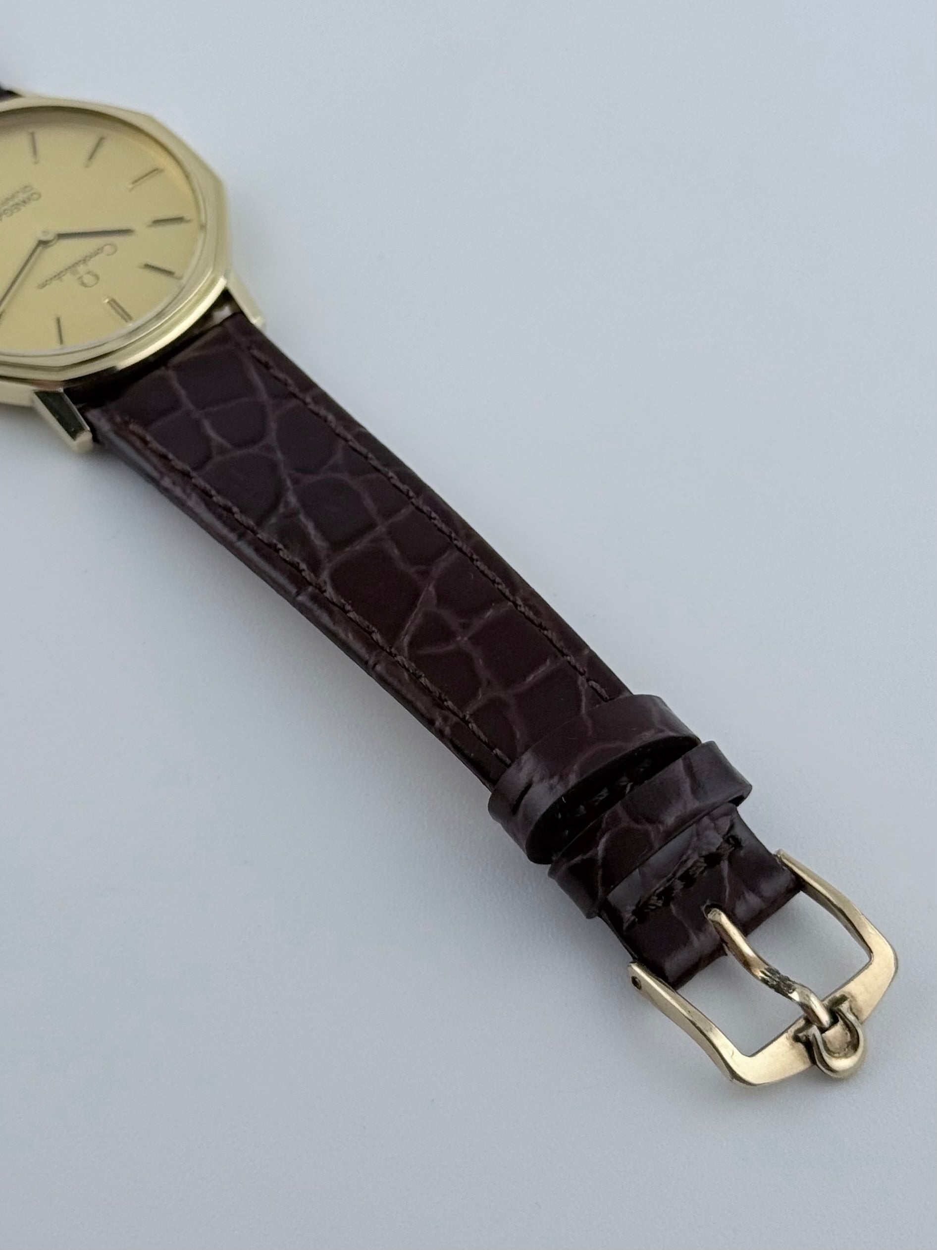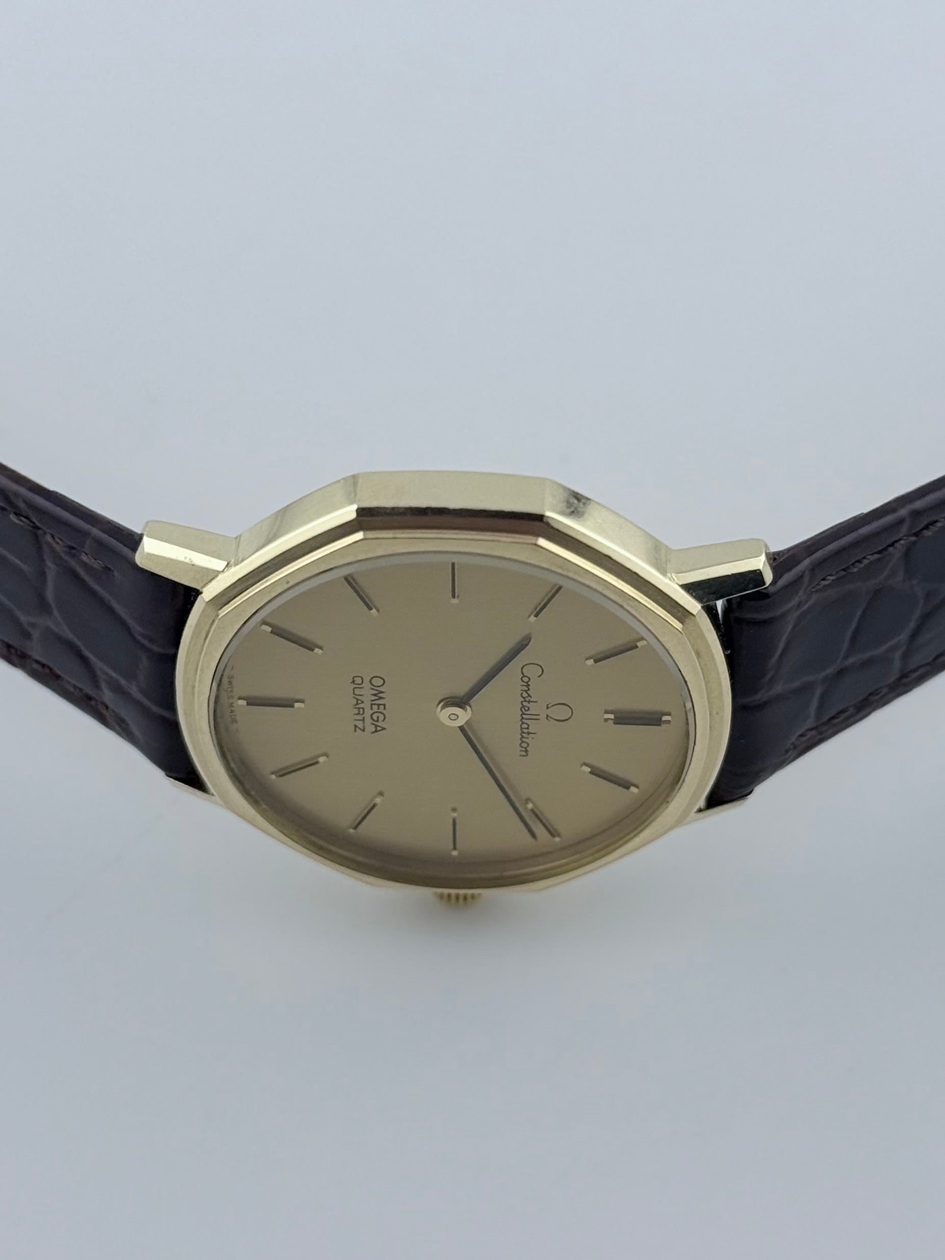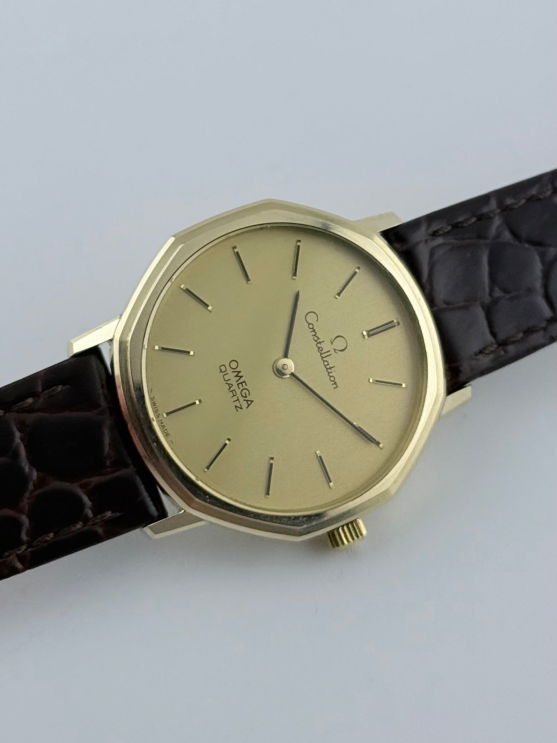 We have for sale an incredible Omega Constellation Quartz with its original box and papers from the 1970s. This fabulous watch features an unusual 10K Gold filled octagonal case complemented by an elegant gold colour dial with fine gold and black baton indexes and hands. The watch is in fantastic condition both cosmetically and mechanically, keeping perfect time.