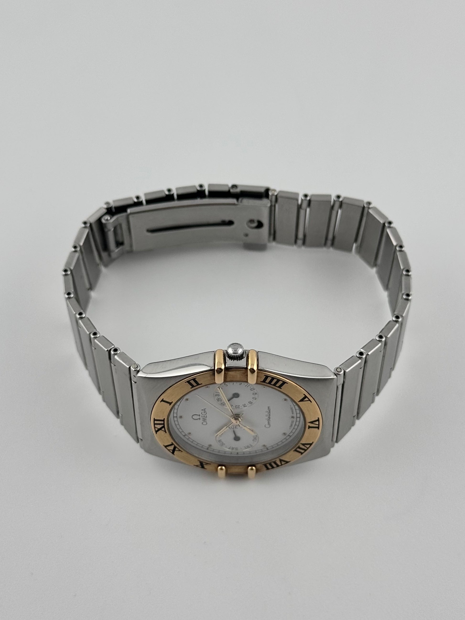 We have for sale a lovely Omega Constellation Quartz which features a stainless steel case and a solid gold bezel. The watch is in great condition both cosmetically and mechanically. It is keeping perfect time.
