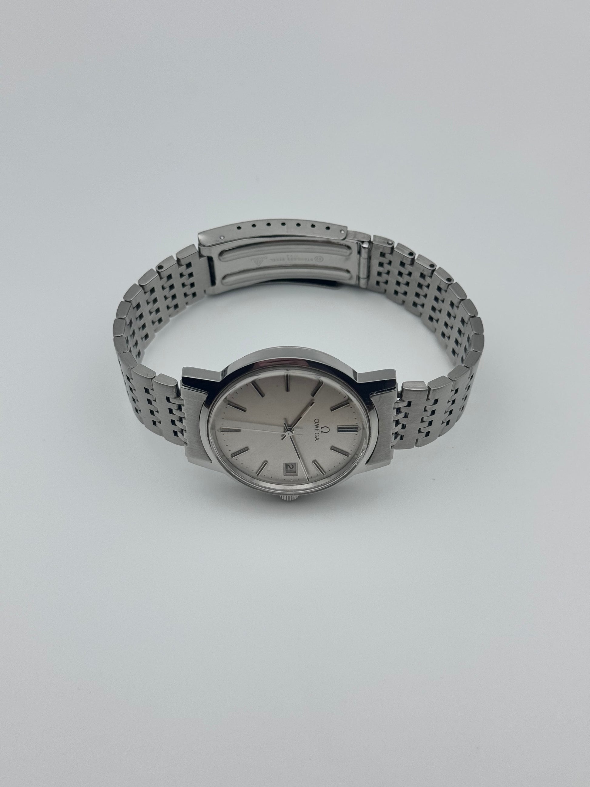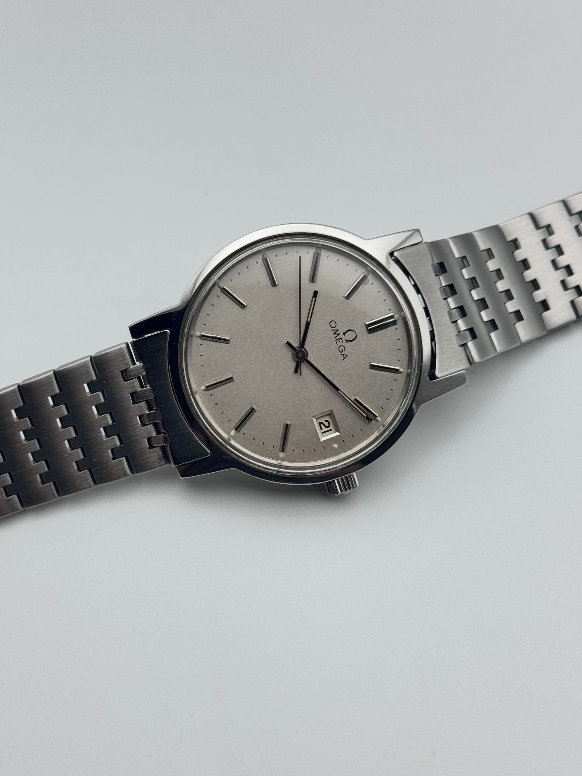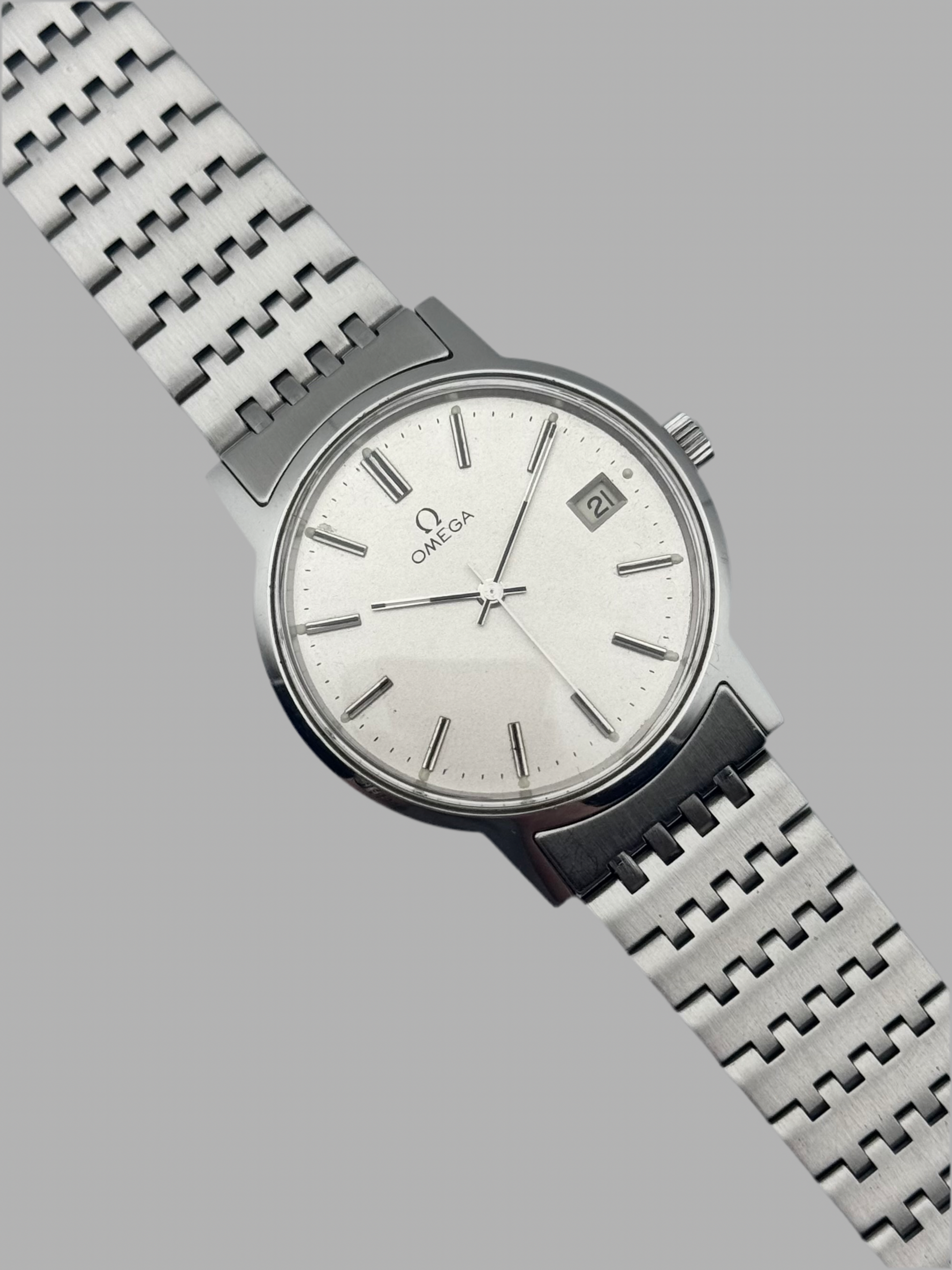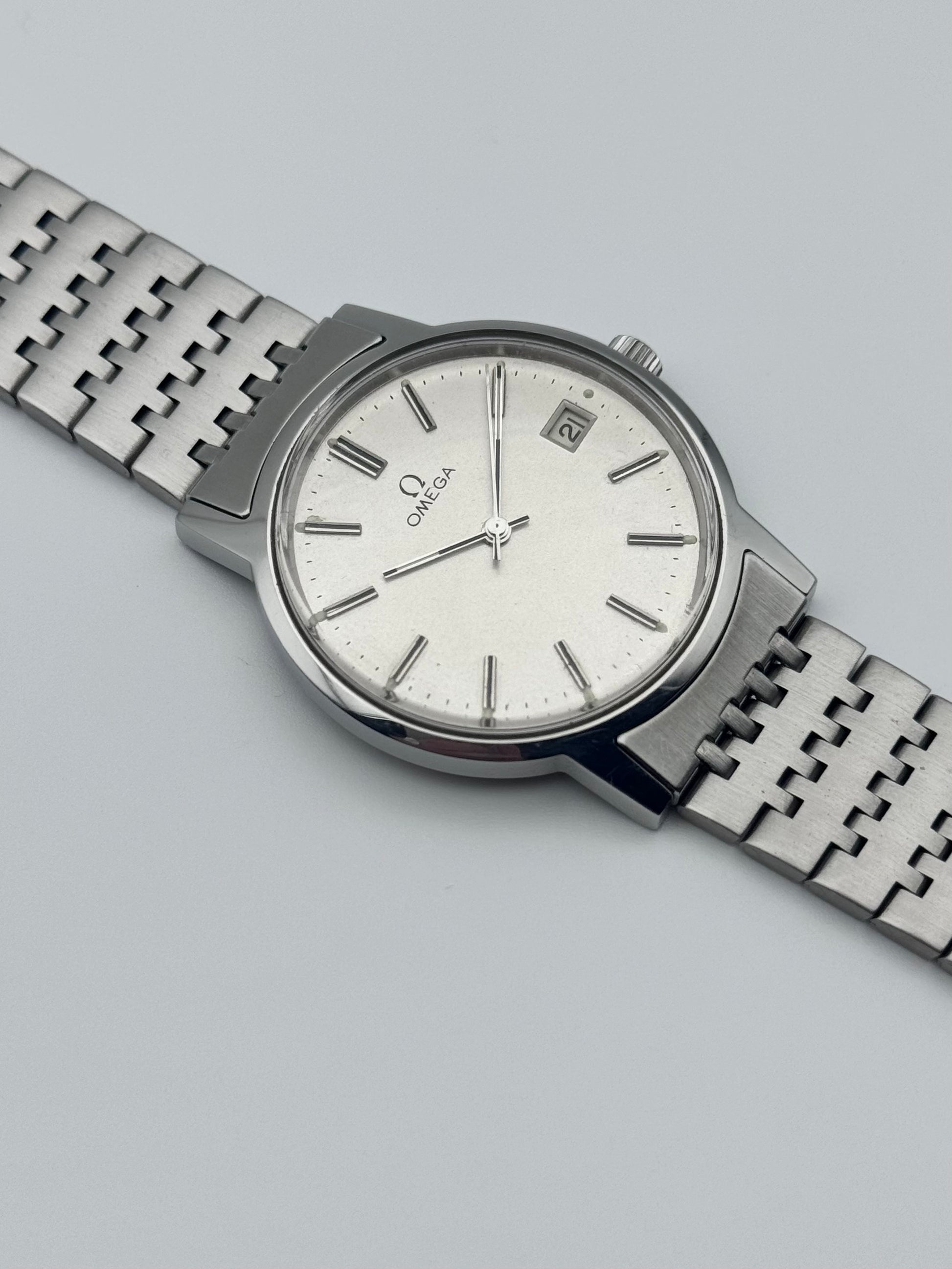 This is a spectacular looking vintage Omega which features a beautiful silver dial which displays a date complication. This piece is keeping great time and has been recently serviced this piece is also sitting on its original bracelet. Cosmetically the watch is in absolutely fantastic condition!