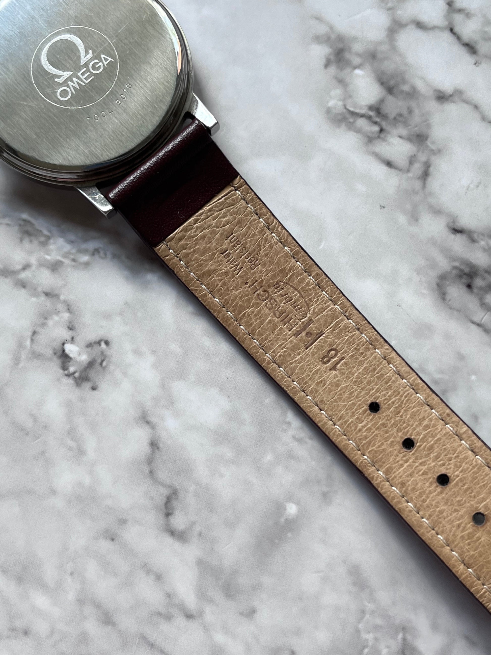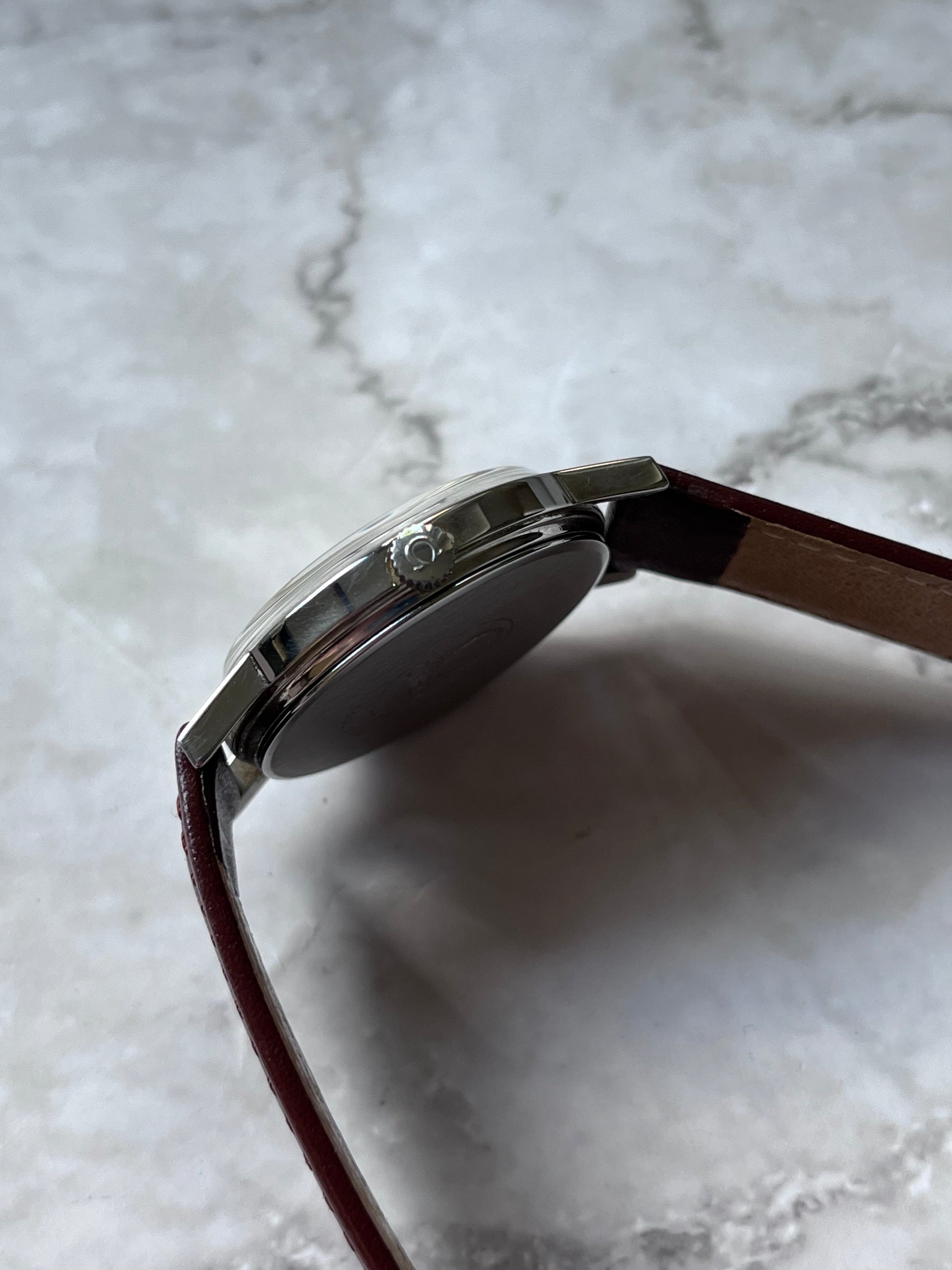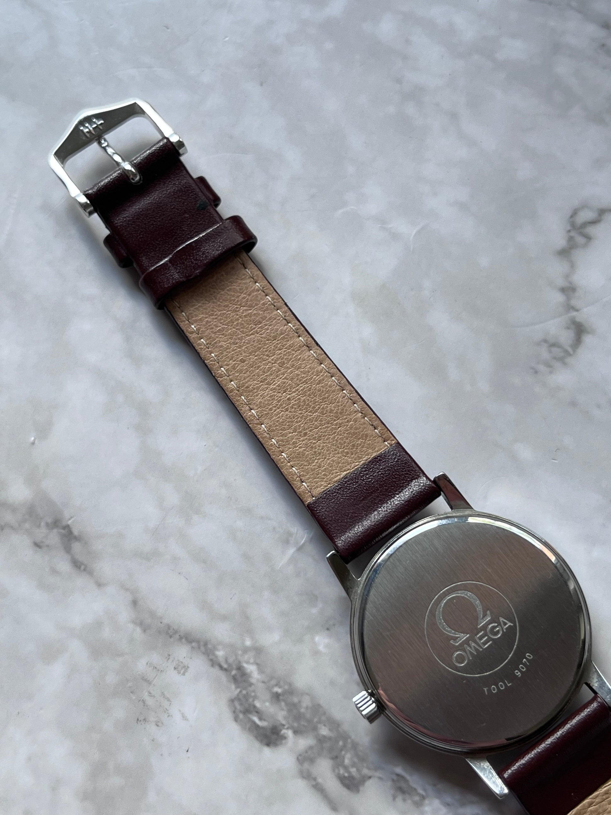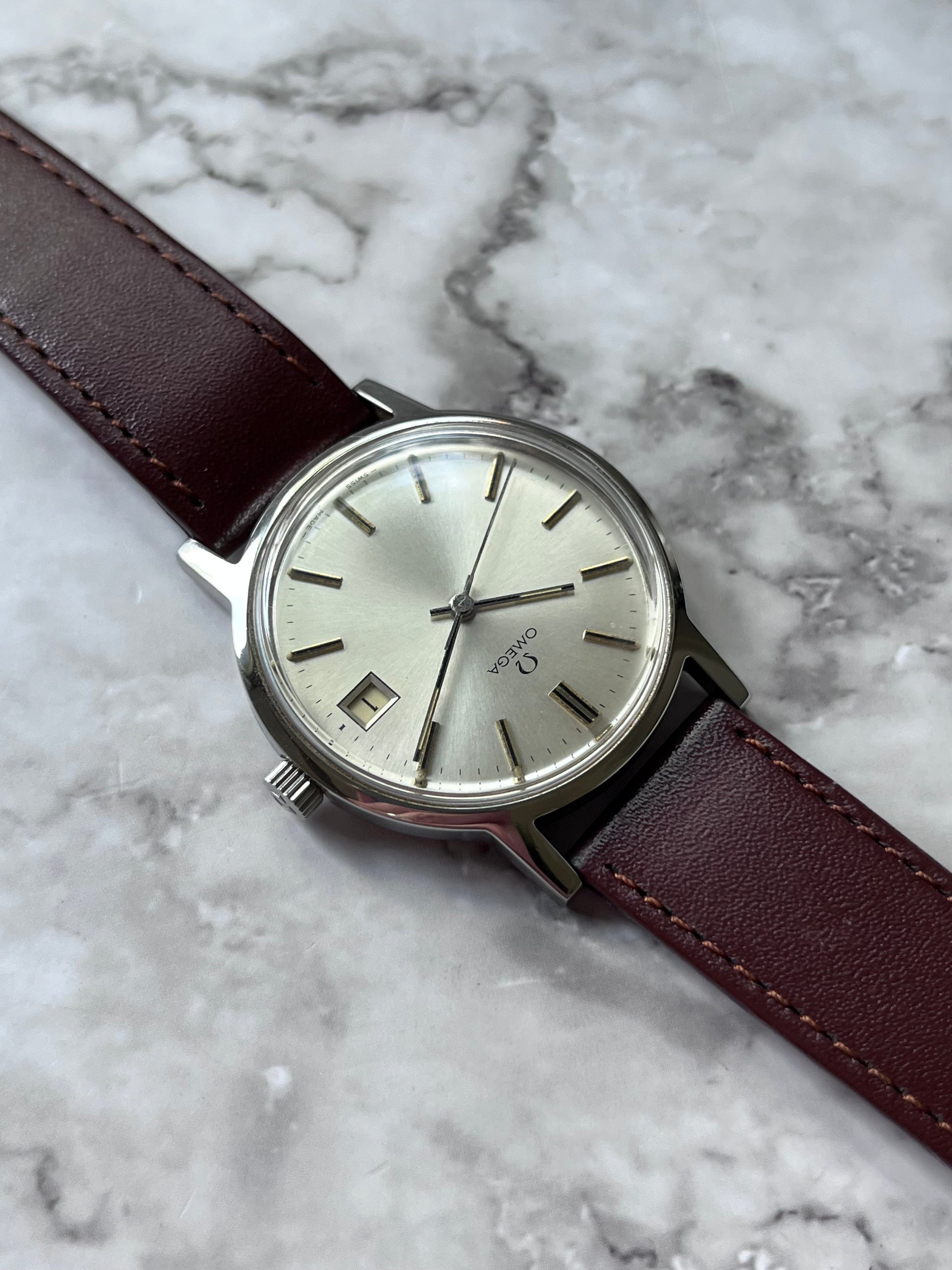 This is a spectacular looking vintage Omega which features a beautiful silver sunburst dial which displays a date complication. This piece is keeping great time and has been recently serviced.