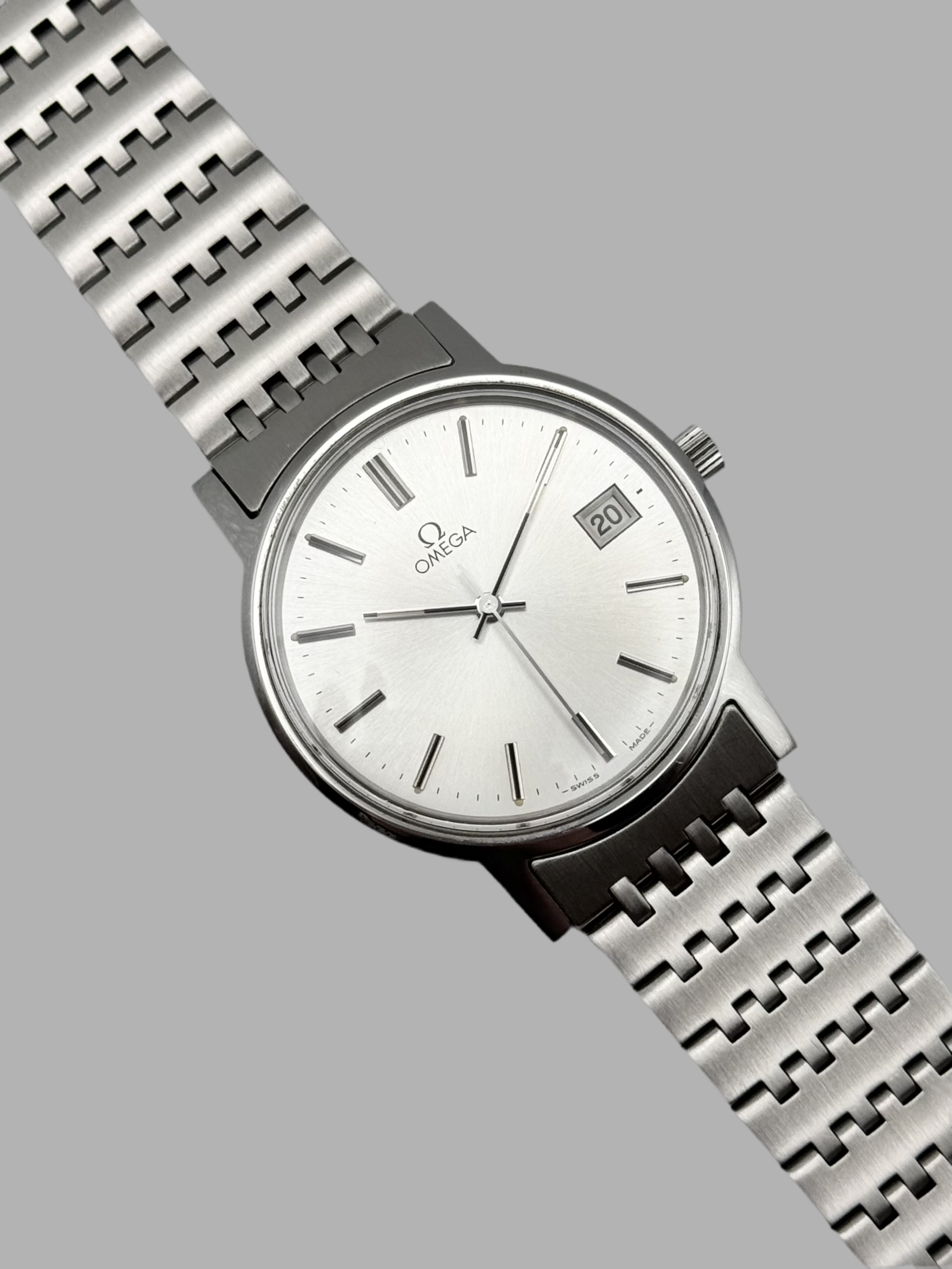 This is a spectacular looking vintage Omega which features a beautiful silver sunburst dial which displays a date complication. This piece is keeping great time and has been recently serviced this piece is also sitting on its original bracelet. Cosmetically the watch is in absolutely fantastic condition!