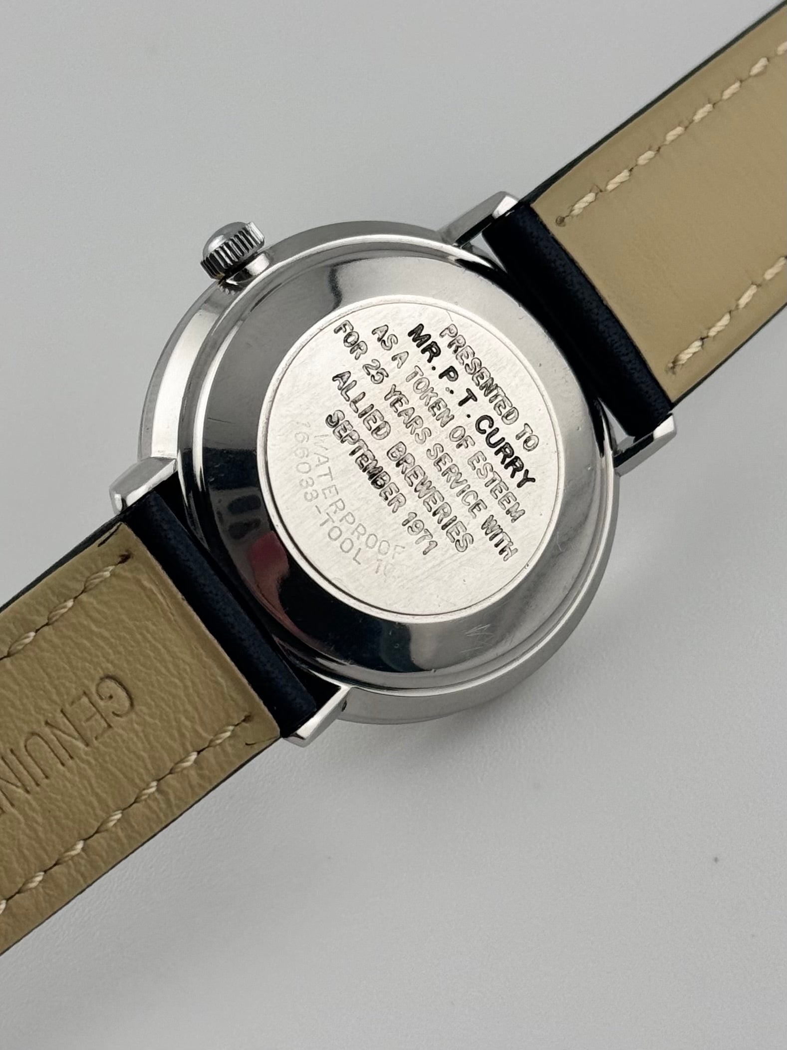Case back - This watch has a monocoque case-back which has a some light signs of wear. It also bears an inscription which gives the watch some unique history.