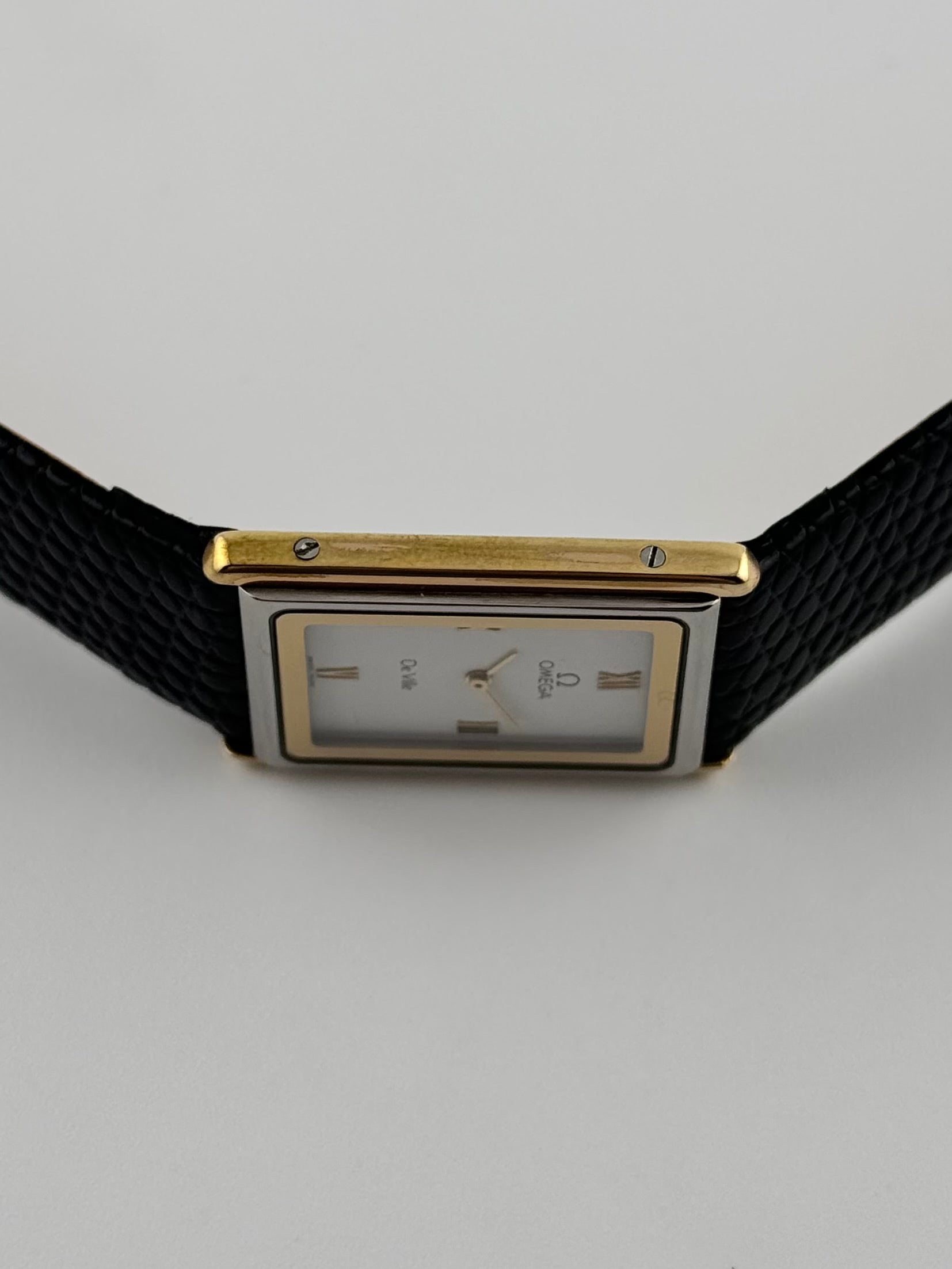 We have for sale a stunning Omega De Ville Opera slim dress watch which features a beautiful combination of stainless steel and gold plated bezel with white dial and gold Roman numerals at only each quarter of the hour. The watch is in fantastic condition and working perfectly in all its functions as well as is keeping accurate time.