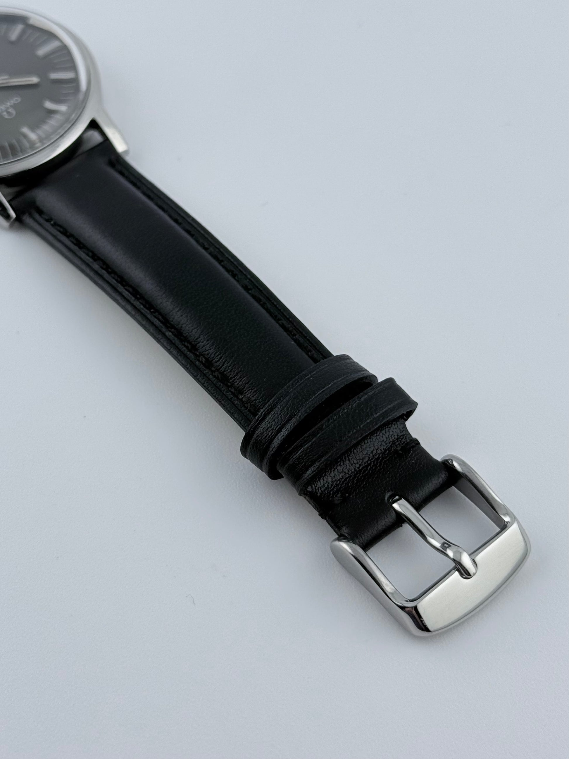 We have fitted the watch on a new strap which suits it perfectly and has a luxurious look and feel on your wrist!