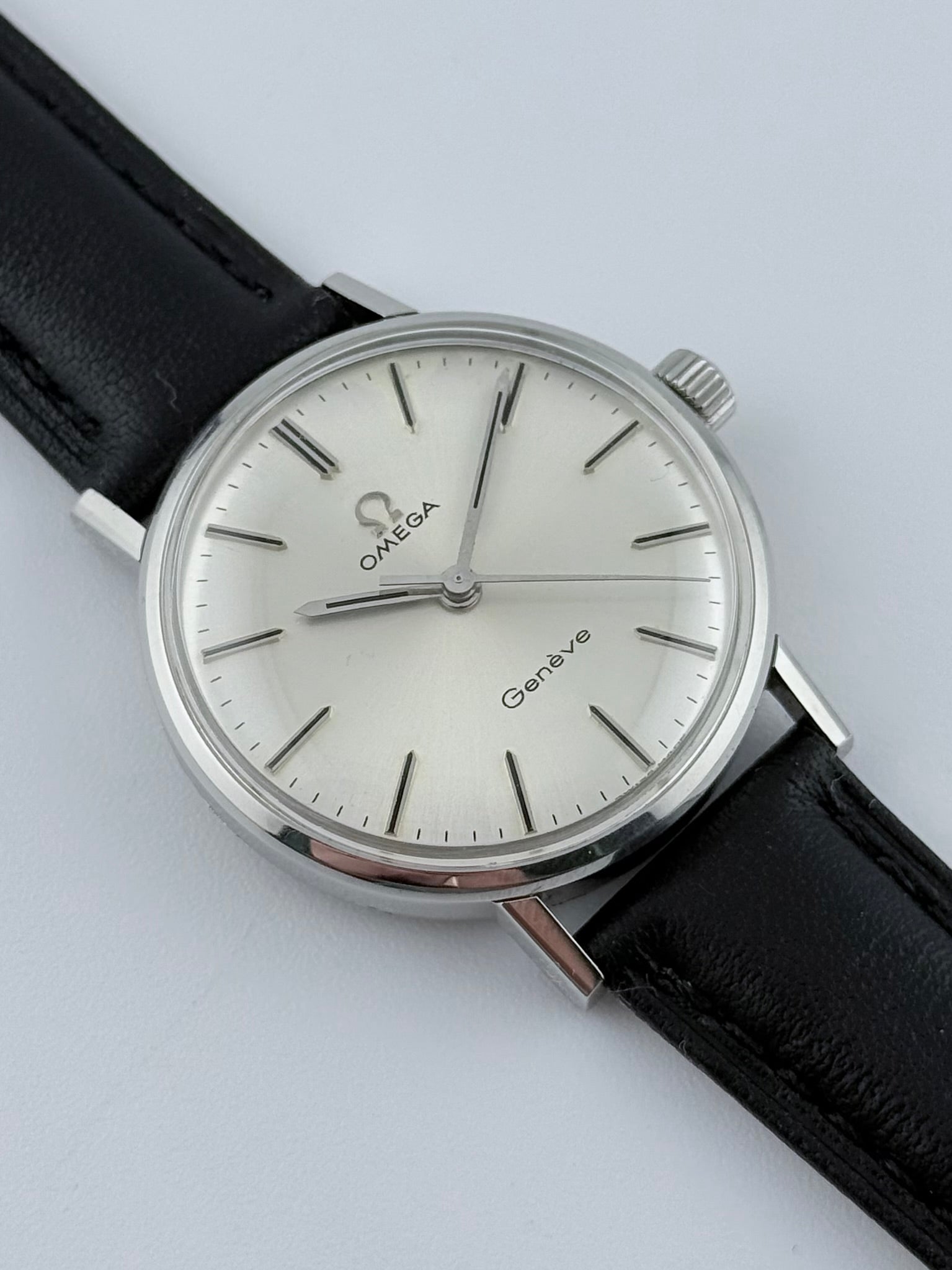 This is a gorgeous vintage Omega Geneve from the 1960s which features a superb silver sunburst dial.