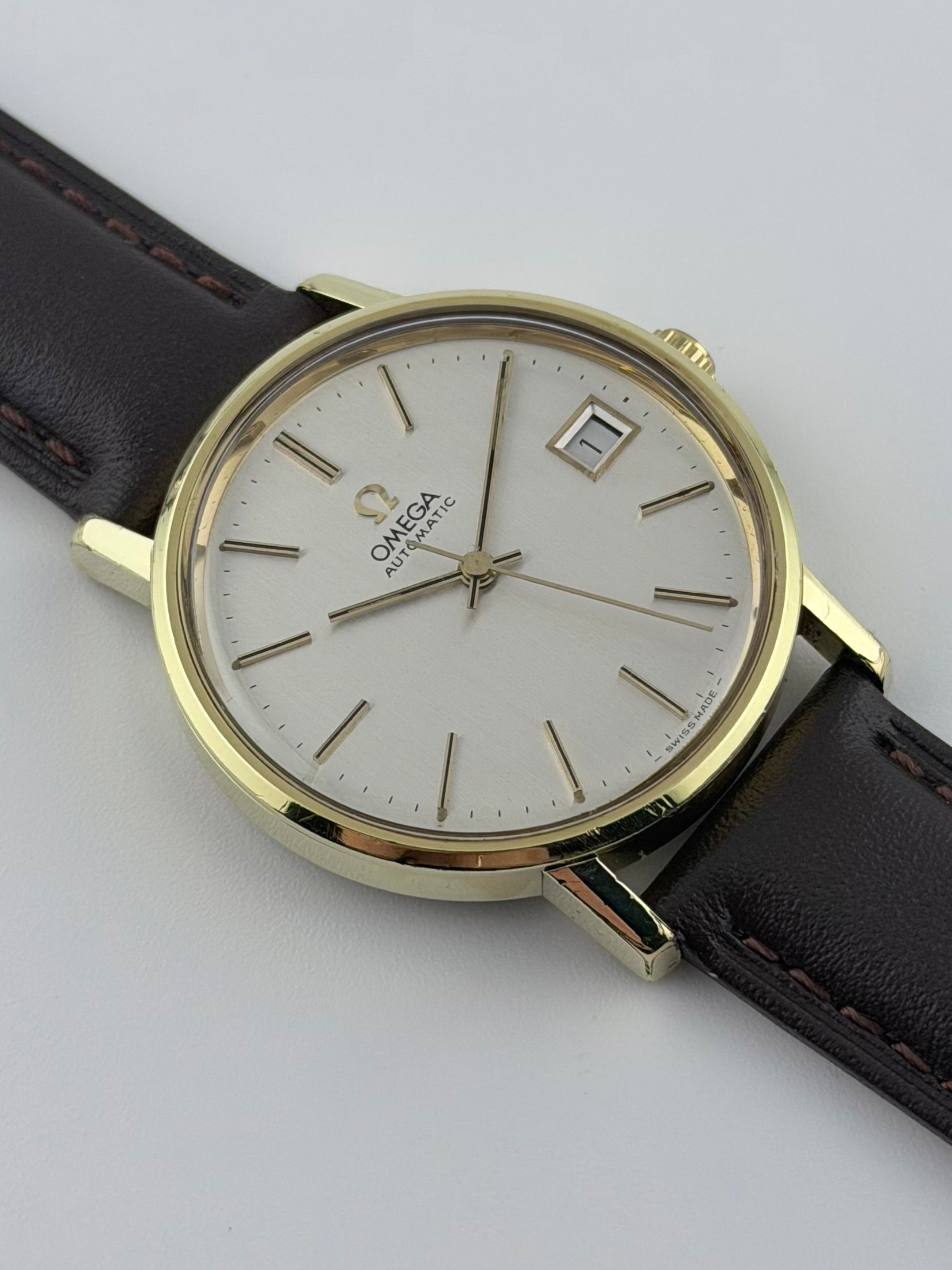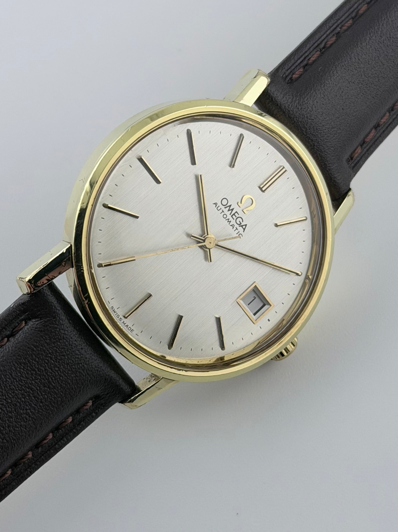 This is a stunning vintage Omega Automatic from the 1970s which features a lovely brushed silver dial. The watch is in brilliant working order and its high beat movement is keeping excellent time. Cosmetically, the watch is in superb condition. PLUS - It comes with its original internal box along with the original International Guarantee Certificates and the 'You and Your Omega' booklet.