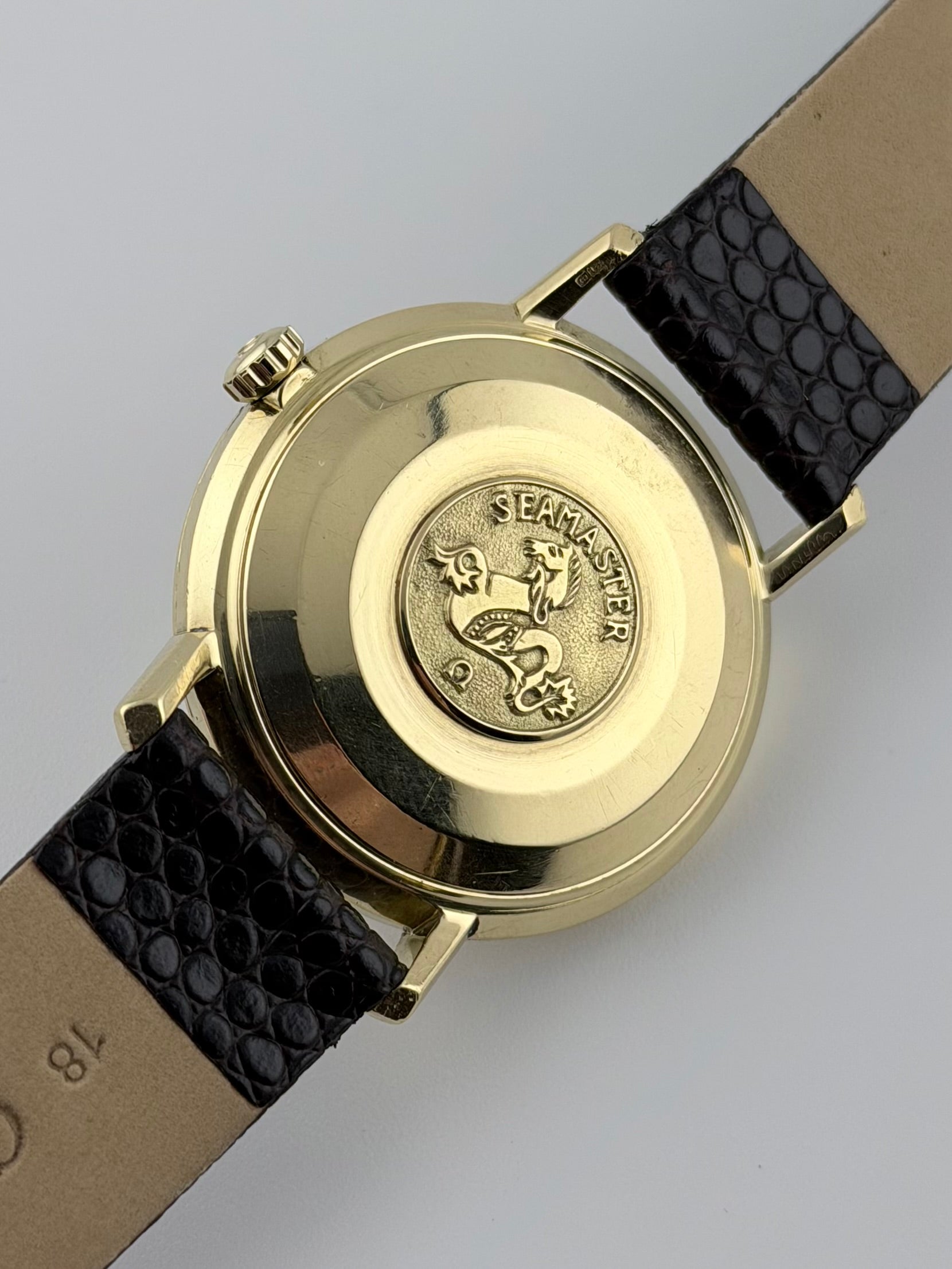 Case back - The case back is also fully 18ct gold and is in great condition, showing only light scratches. The back features the famous Seamaster logo!