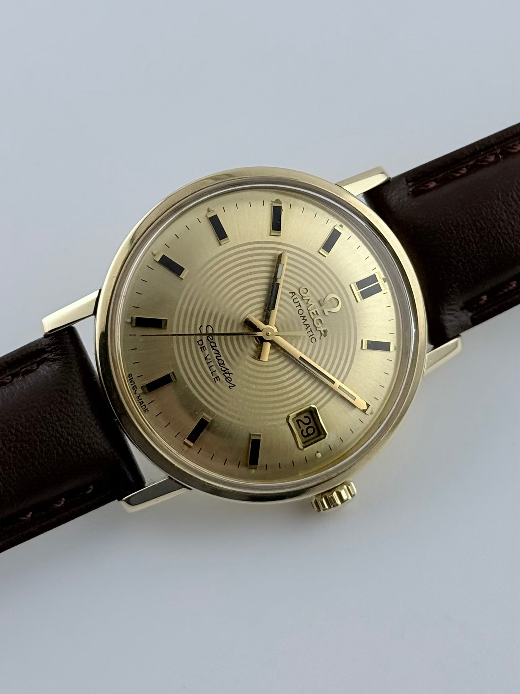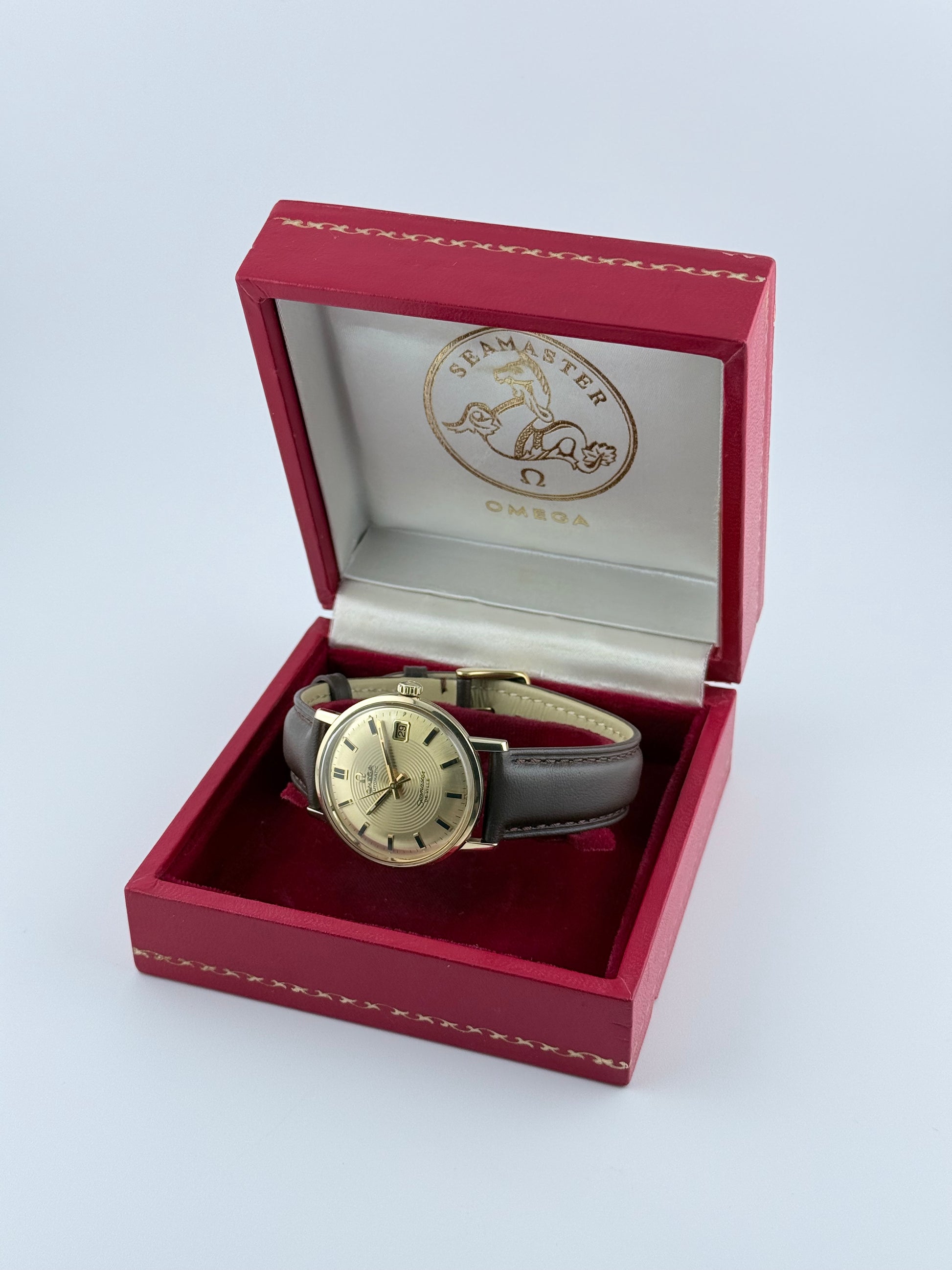 This is one of our favourite reference numbers, the Seamaster De Ville with what is an exceptionally rare Bullseye dial encased in a 9ct gold case. Not only do you get a super rare and extremely attractive dial, but also a Seamaster De Ville in a 9ct gold case which is also quite a rare find. This watch really has the wow factor and is undoubtedly one of the best examples of this dial that we have seen. These are so hard to find and we are so pleased to be able to offer such a rare variant which we fully expect to be snapped up quickly by a collector. The watch is working perfectly and keeping time well within specification.