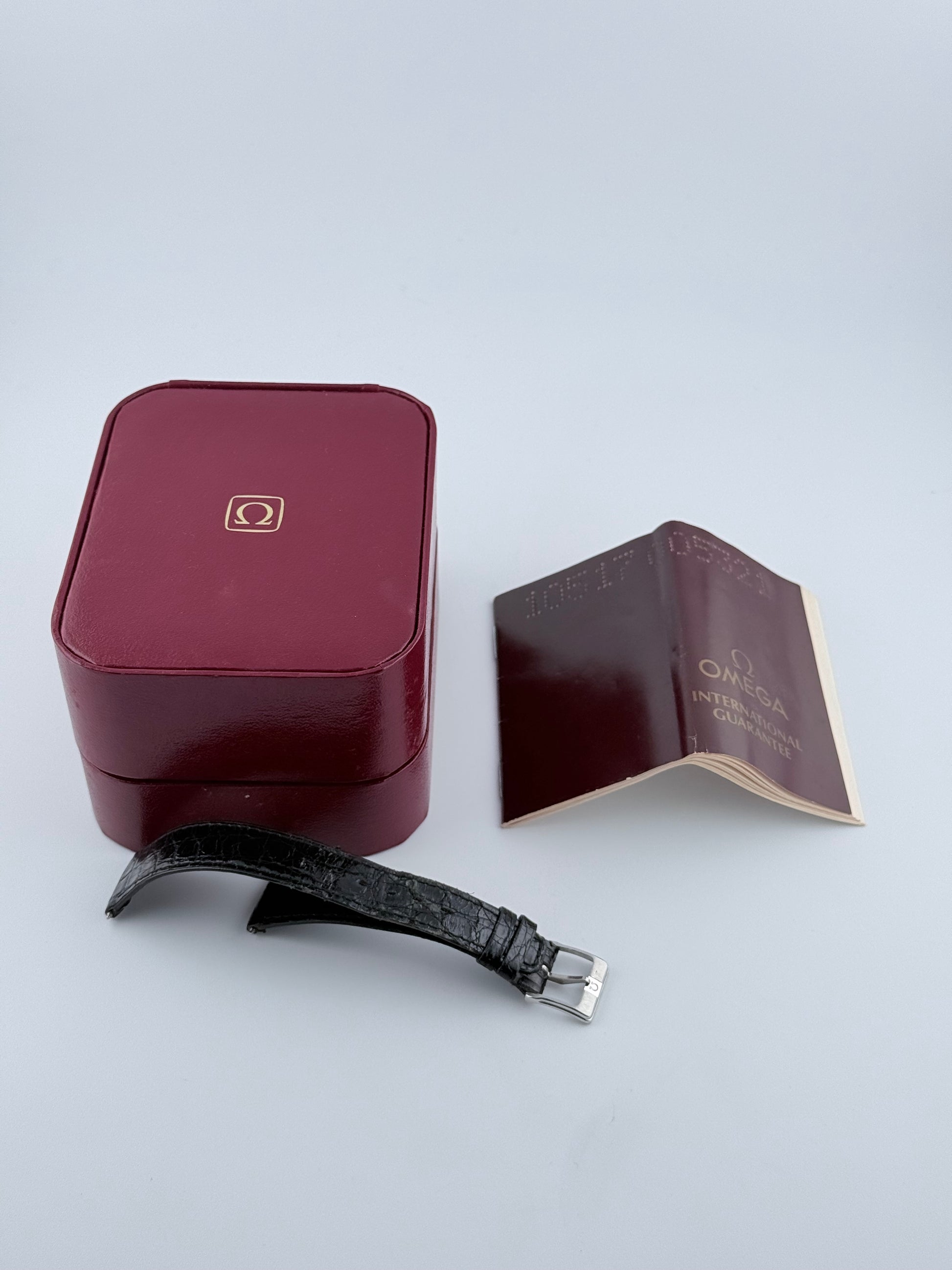 We have for sale a lovely Omega Seamaster Quartz from 1987 which features a beautiful textured dial that displays a fully functional date complication. The watch is in near perfect condition both cosmetically and mechanically. It is keeping perfect time. It also comes with its original presentation box, International Guarantee and we have included its original strap and buckle. The watch appears to have had very limited use indeed!