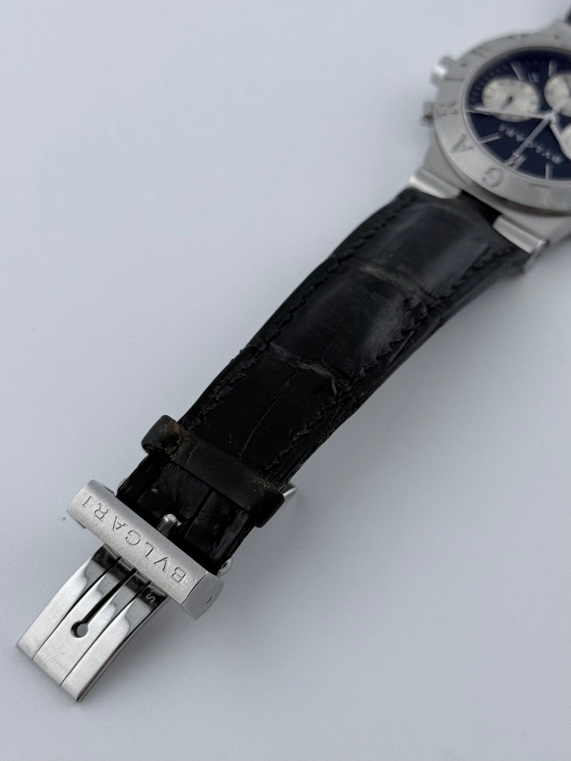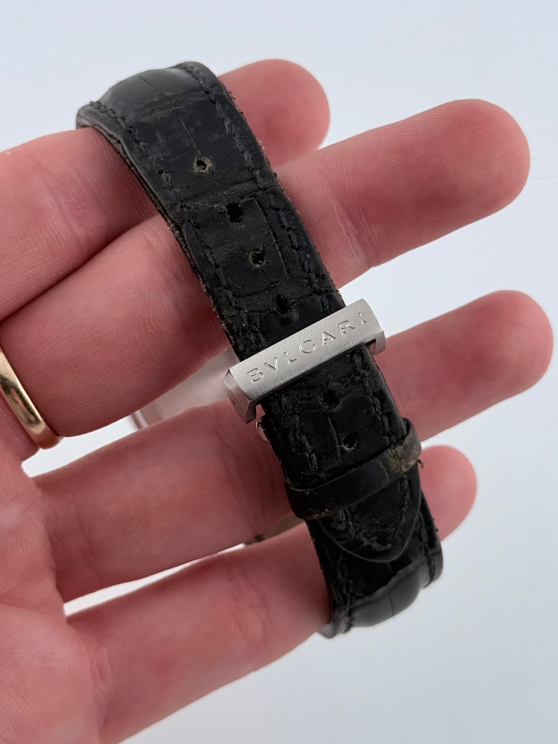 Strap - The original black leather Bulgari strap with its signed clasp is in good-fair condition, showings signs of wear and age.