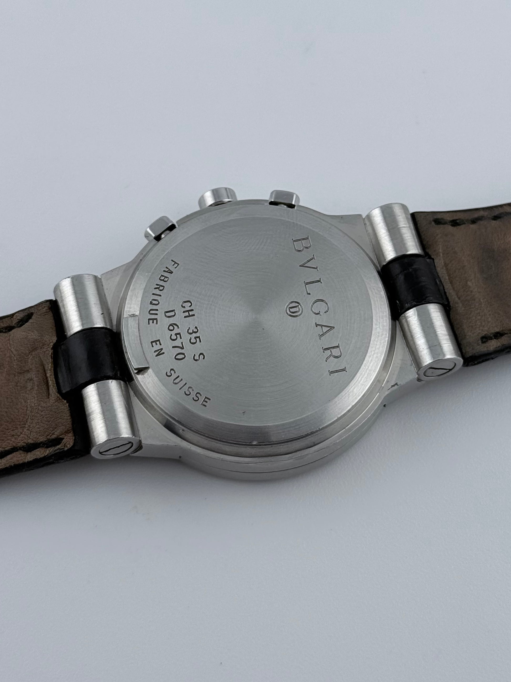 Movement - The original Bulgari quartz movement with its chronograph functions is in perfect cosmetic condition as well as working very well mechanically. The watch is keeping perfect time within specification.