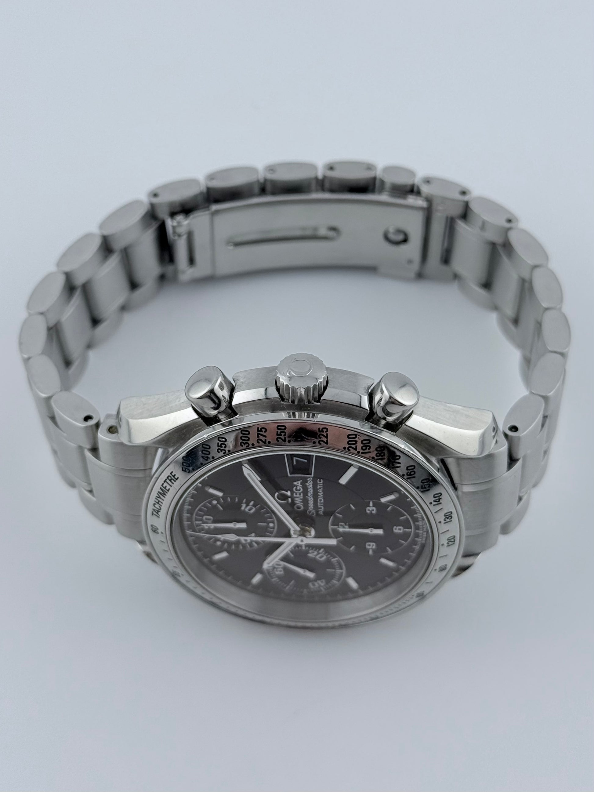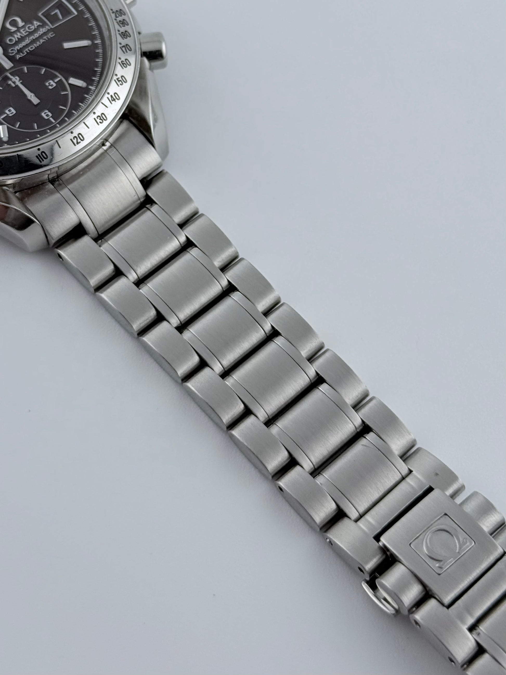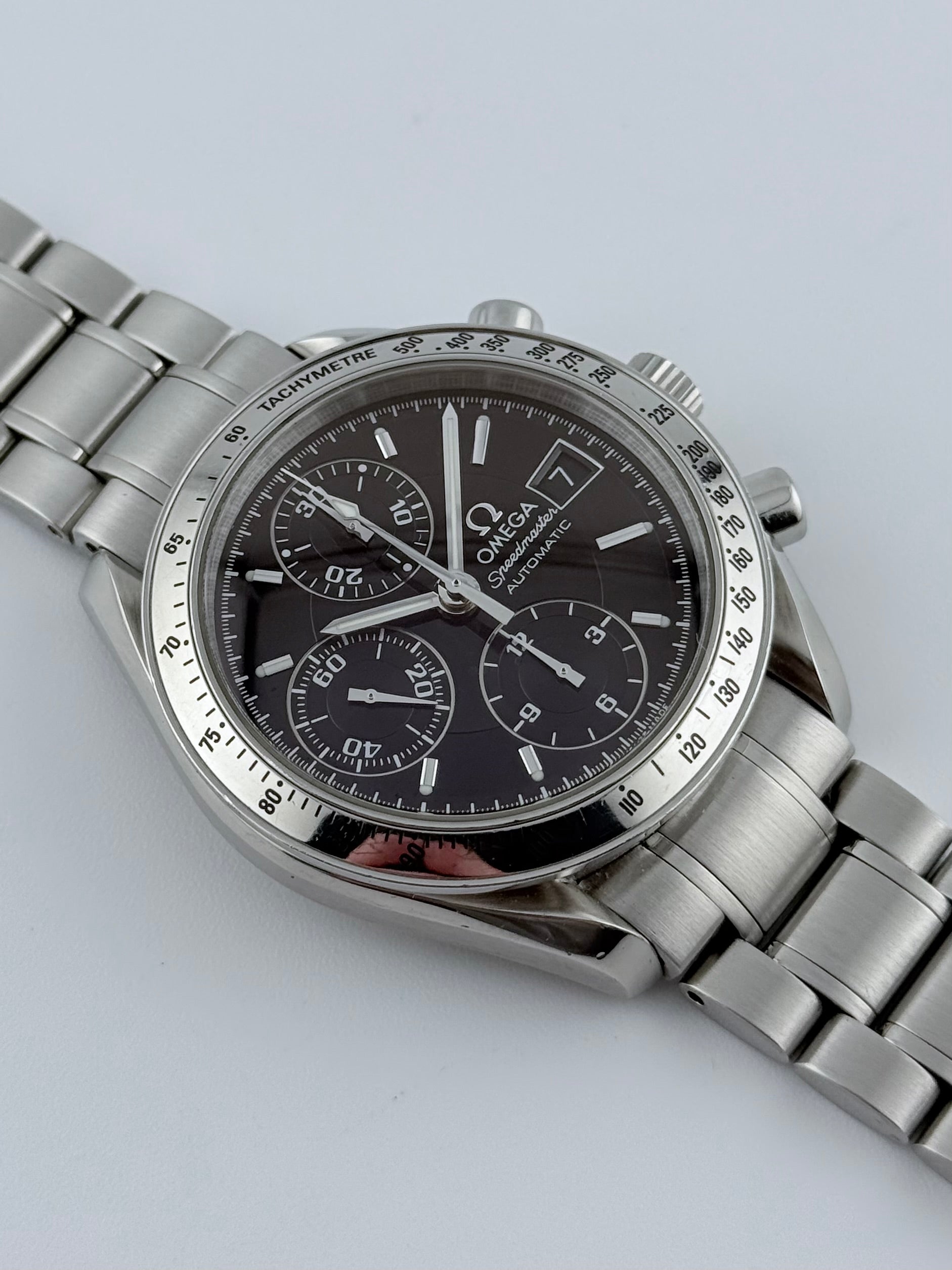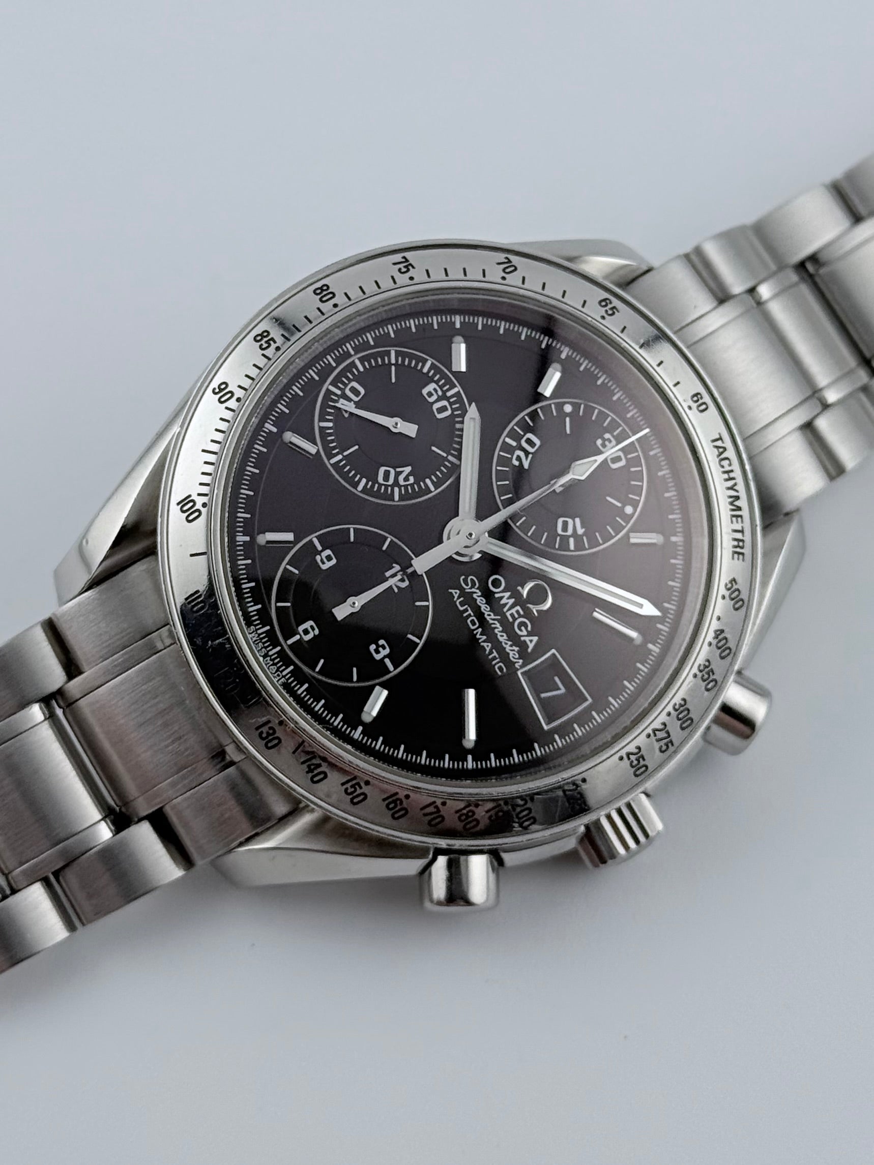 We have for sale a fantastic neo vintage Omega Speedmaster which dates back to 1999. This watch features a gorgeous black two-layer dial which reflects the light in a stunning way. The dial hosts a date, seconds counter and an hours and minutes counter for the chronograph function. The watch is in outstanding condition for its age and is running perfectly in every way.