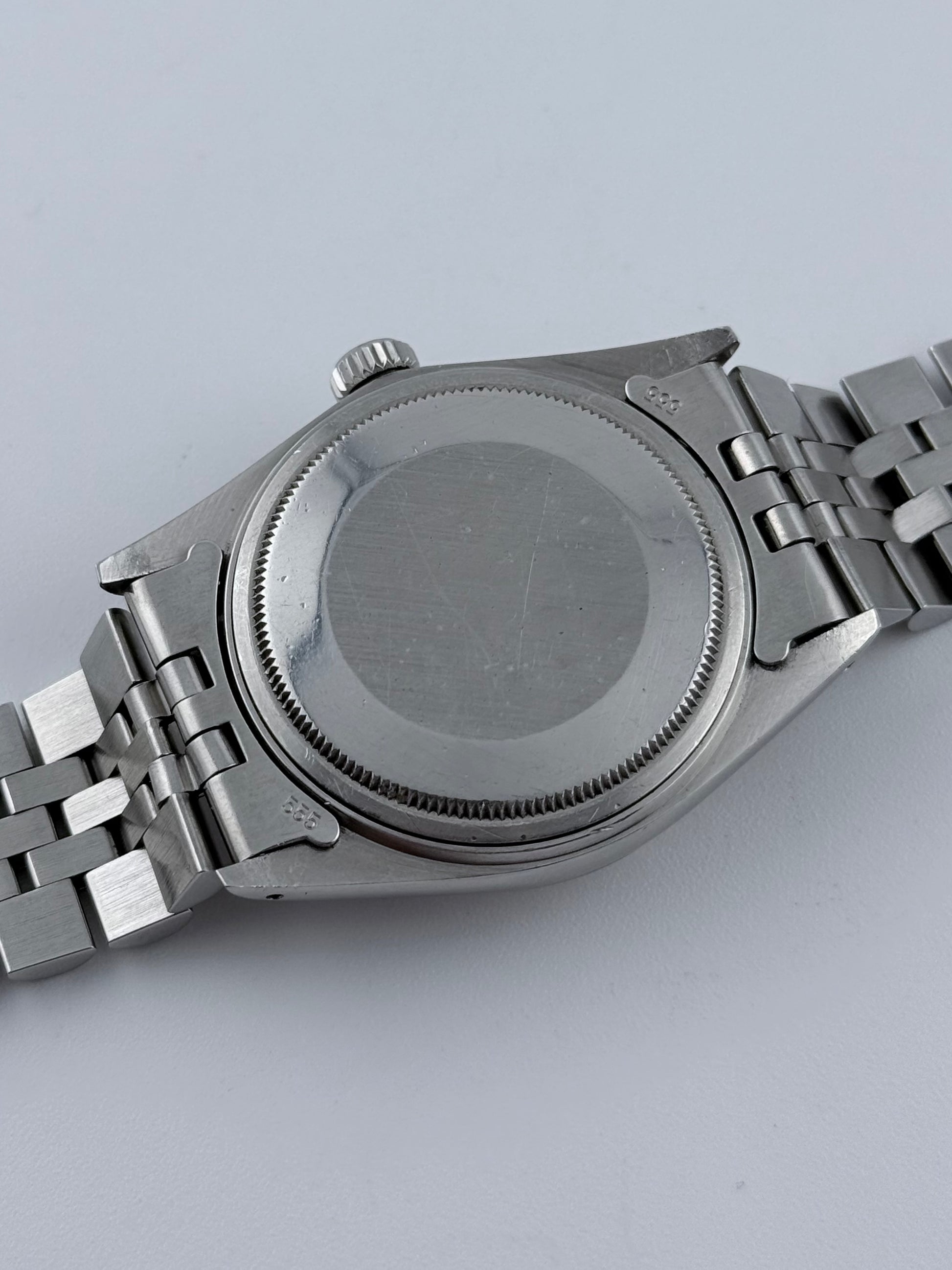 The Rolex Datejust 16014 was introduced in the late 1970s as part of the brand’s evolution into more modern wristwatch engineering. It features the Calibre 3035 automatic movement, notable for its quickset date function and higher beat rate of 28,800 vibrations per hour—improving accuracy and offering Rolex’s signature smooth sweep. The watch combines a stainless steel case with a fluted 18ct white gold bezel, giving it both durability and elegance. Paired with an acrylic crystal and typically a Jubilee bracelet, the 16014 represents a transitional phase between vintage and modern Datejusts, making it a highly collectible and versatile classic.