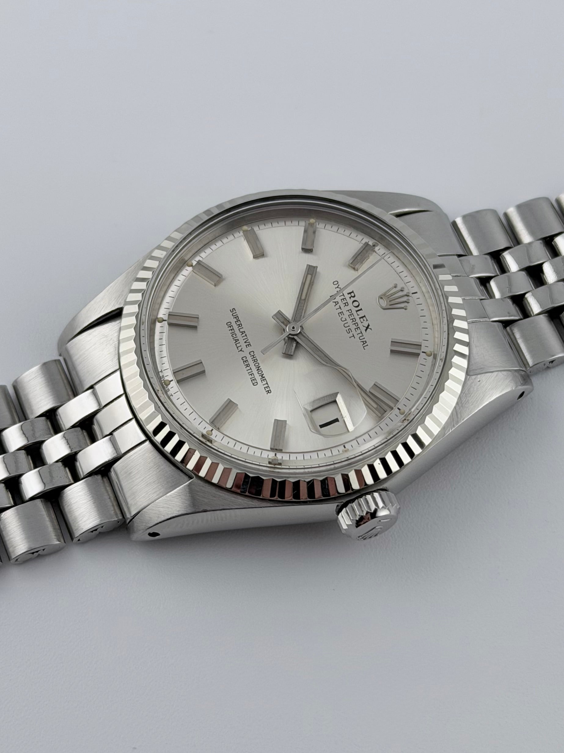 This Rolex Datejust 1601 Oyster Perpetual Automatic from 1968 is a timeless 36mm stainless steel classic, featuring a stunning sunburst silver-tone dial and a date complication viewed through an acrylic crystal with Cyclops magnifier. With its vintage character, elegant, fluted bezel and refined proportions, this piece offers both everyday wearability and strong collector appeal. This exceptional Rolex example is working flawlessly in all aspects, keeping perfect time within vintage specifications.