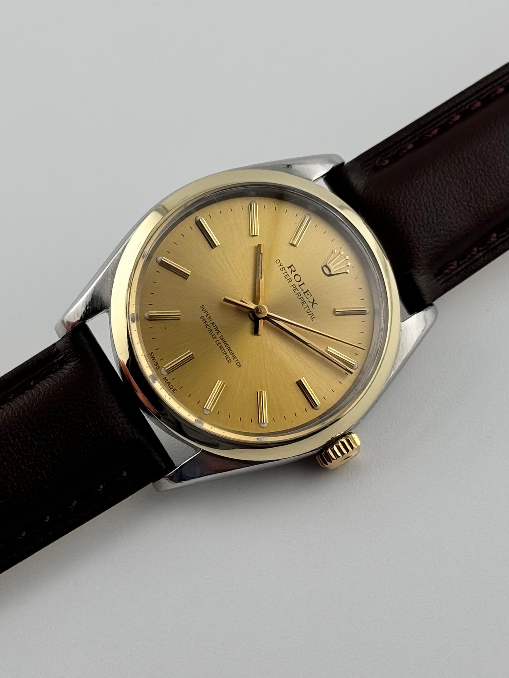 We are proud to present for sale this absolutely breathtaking Rolex Oyster Perpetual from 1961 featuring a beautiful gold sunburst dial. This watch is in absolutely lovely condition for its age and is working perfectly in all its functions, keeping excellent time.
