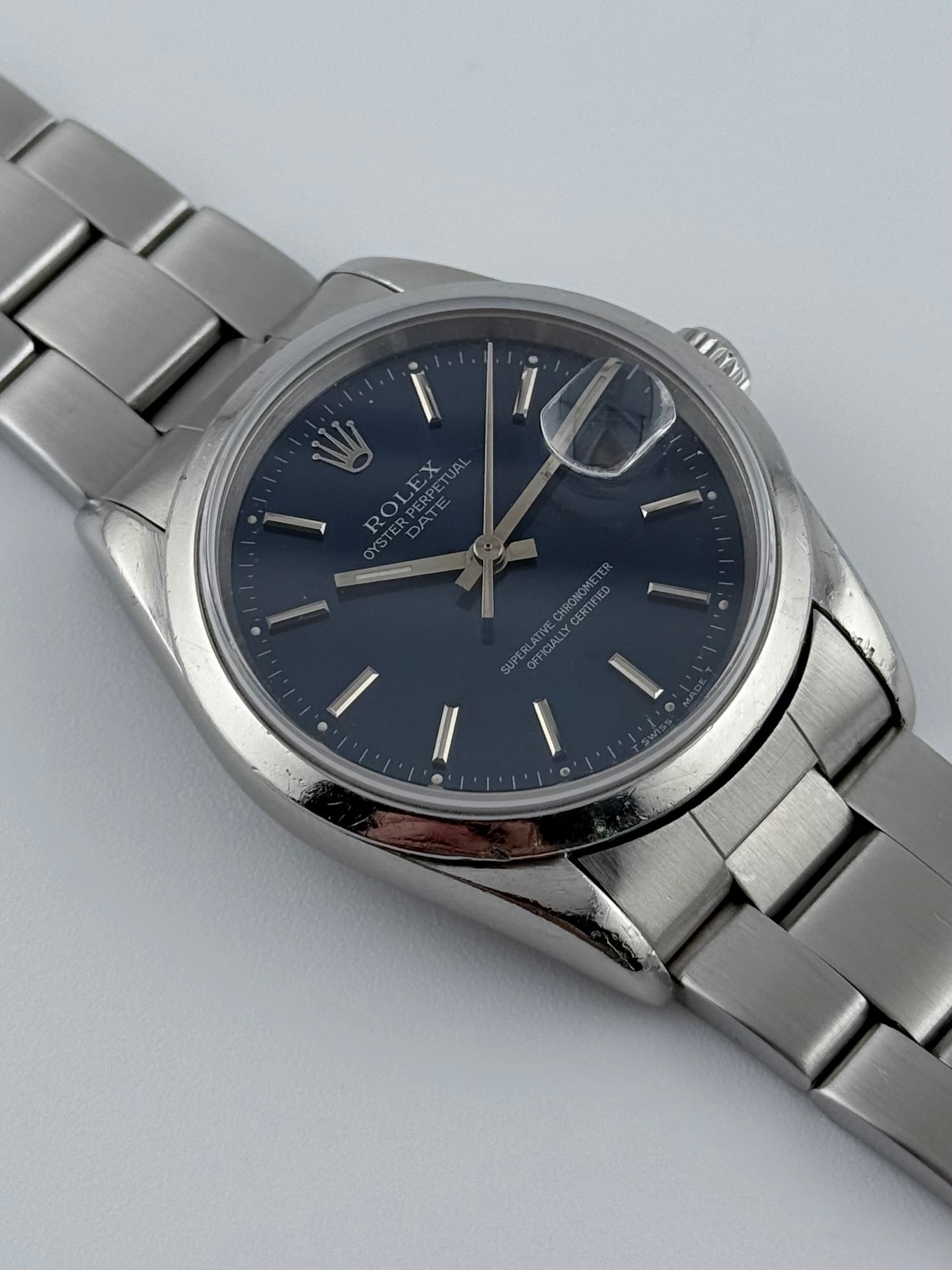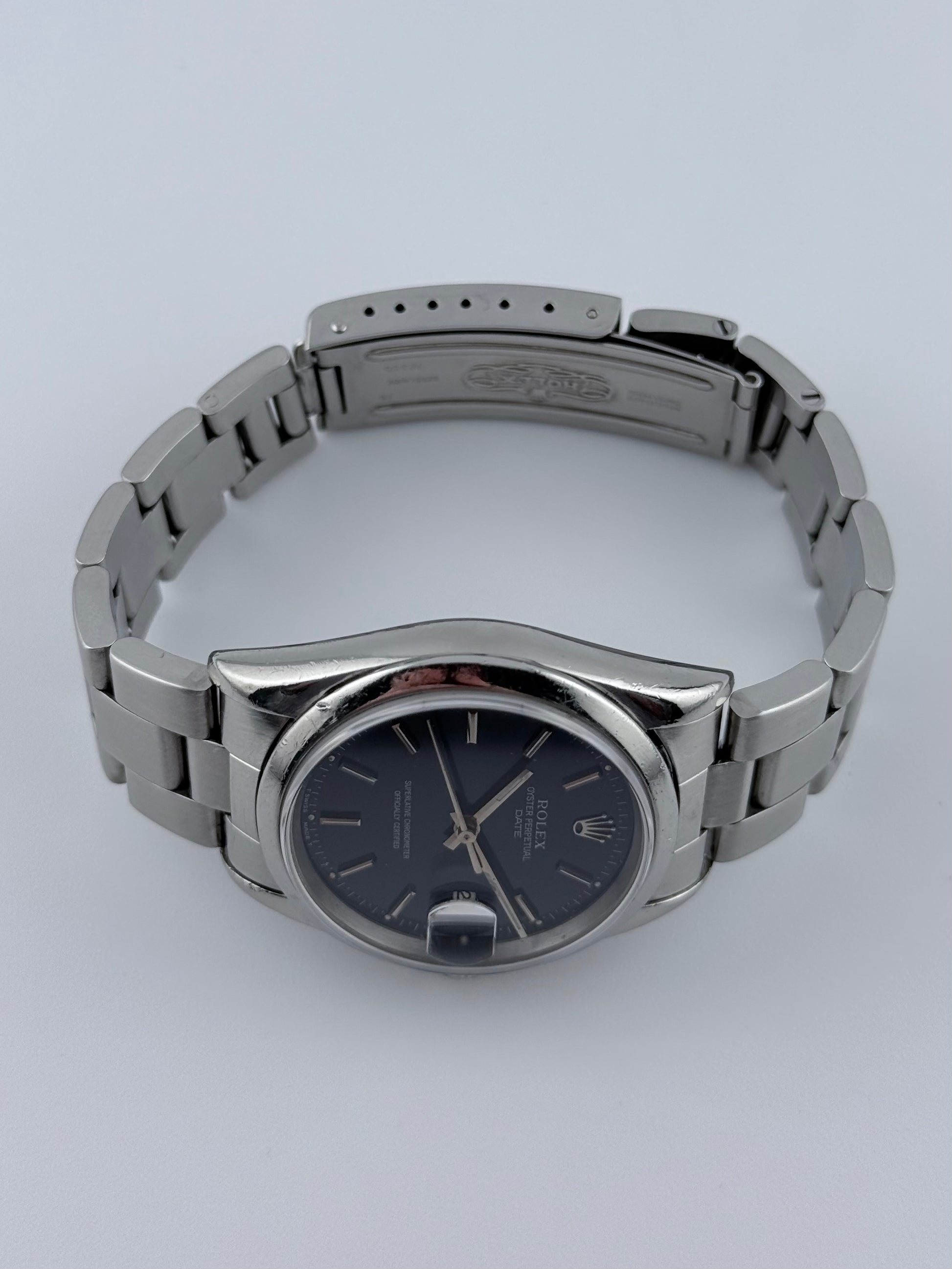We are delighted to present for sale this breathtaking Rolex Oyster Perpetual from 1995 featuring a stunning blue sunburst dial with a date complication magnified by Cyclops lens. This watch is in stunning condition for its age and comes with it original Rolex bracelet. Furthermore, the watch is working perfectly in all its functions, keeping excellent time.