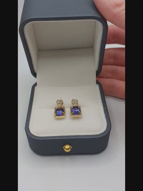 Tanzanite and Diamond 18ct Gold Fixed Drop Earings