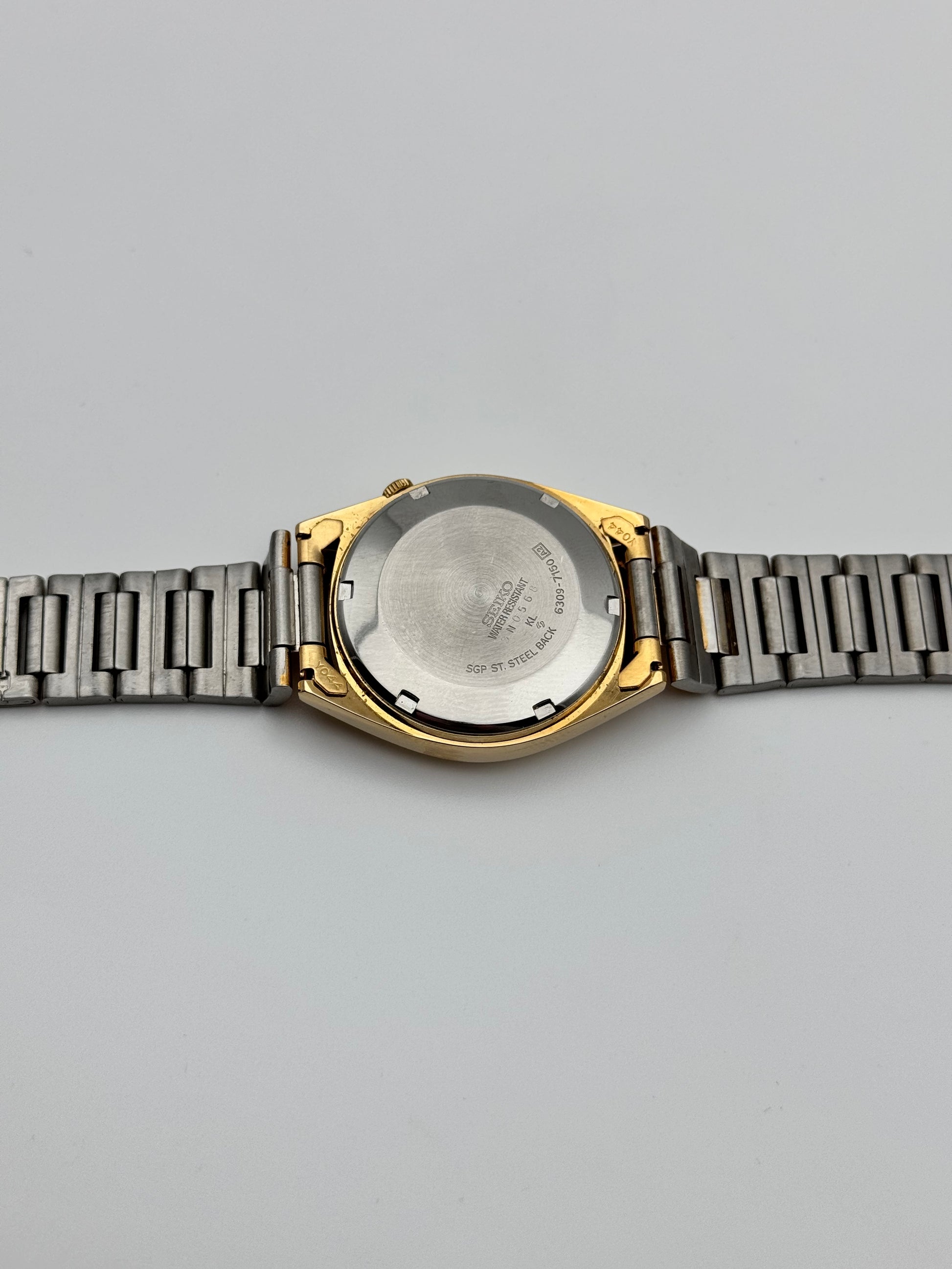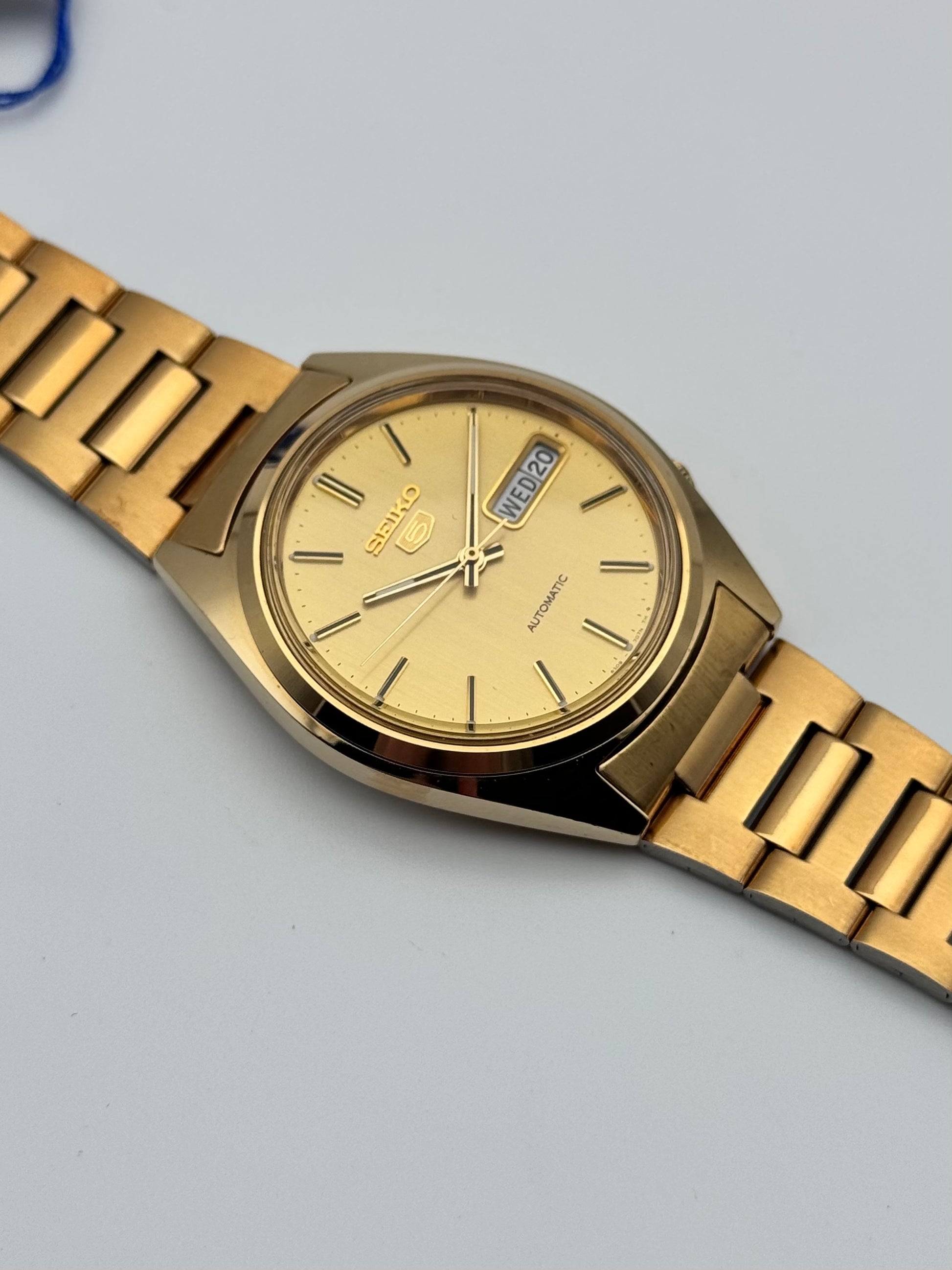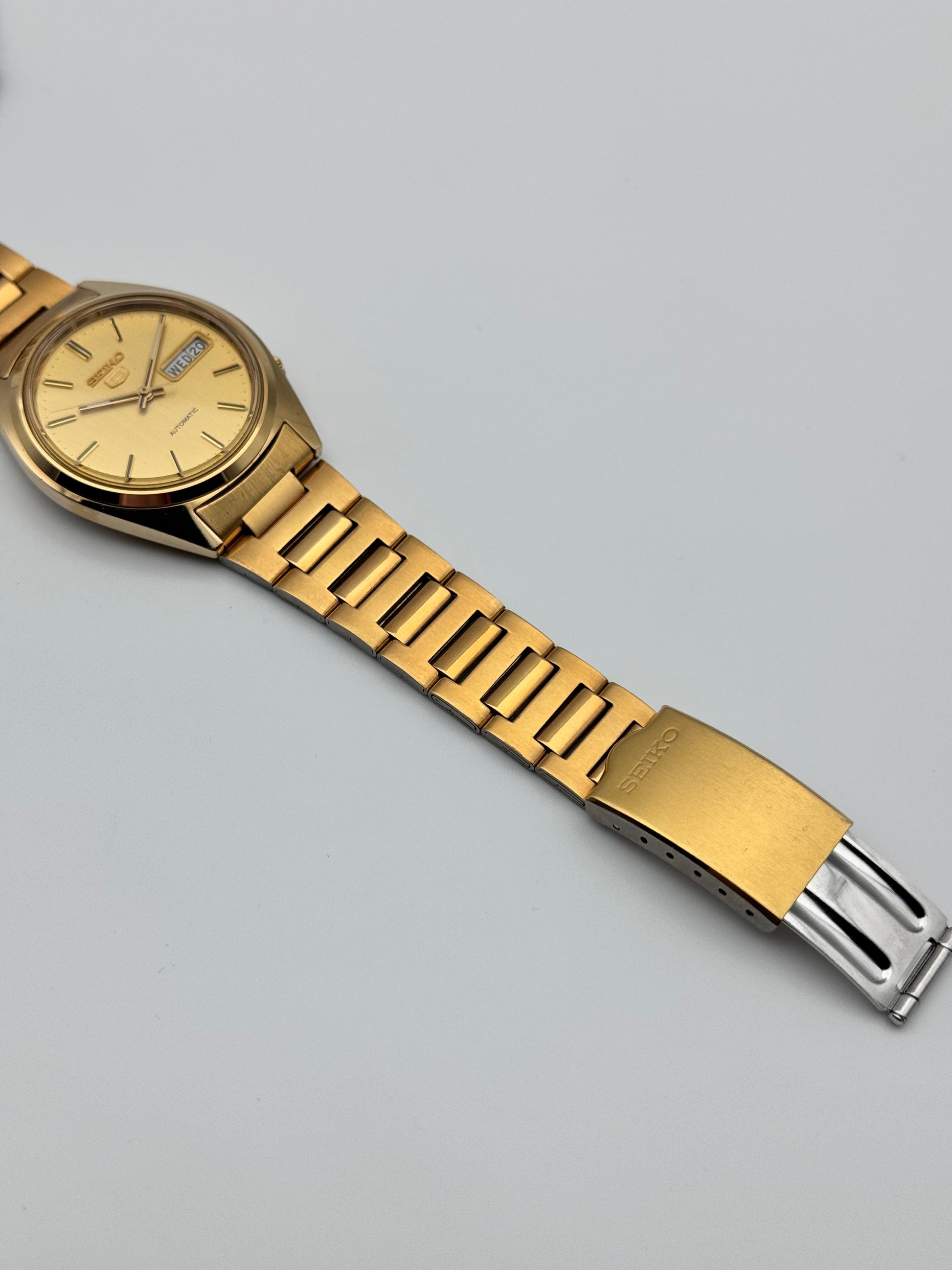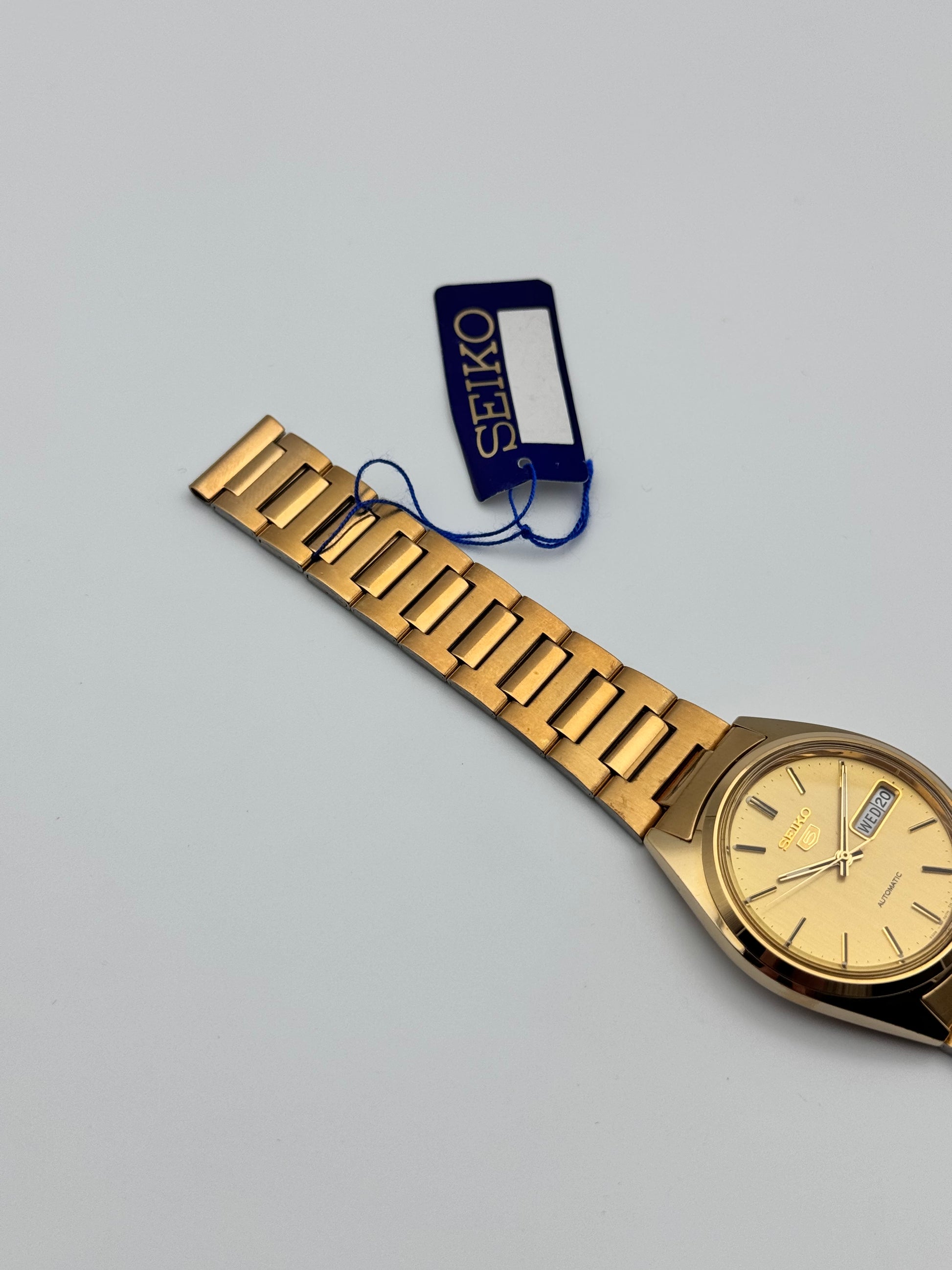 This is a stunning vintage Seiko which features a brushed gold dial. This piece is in near immaculate condition showing signs of just storage marks. The watch is fully functional and keeping time. This piece comes with its original Box, papers and hang tag.