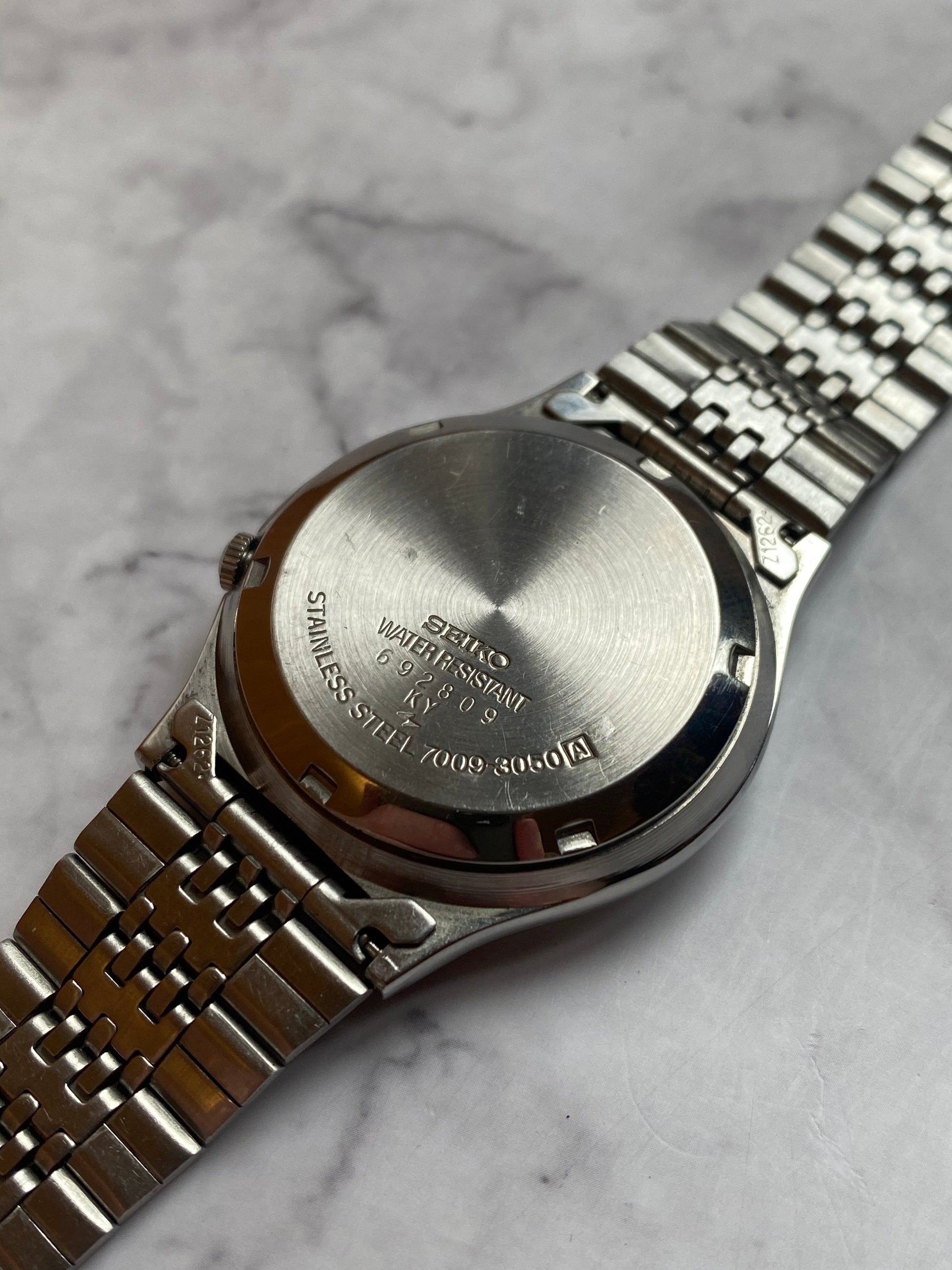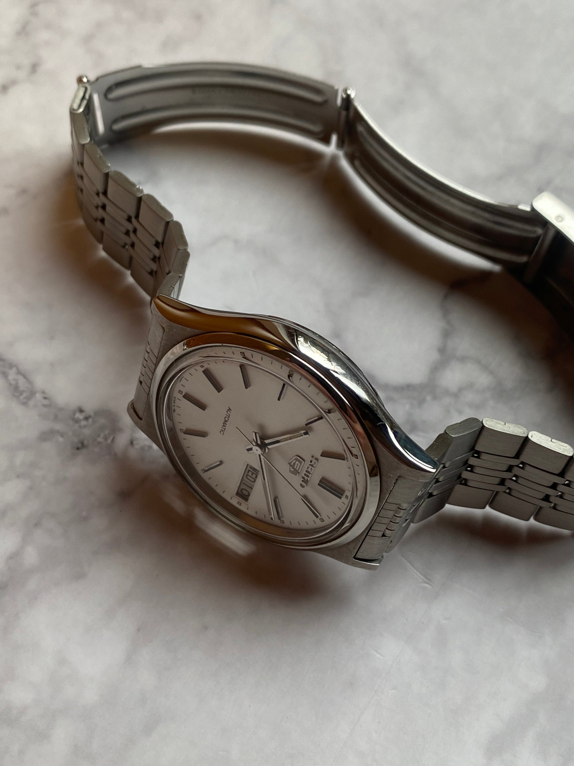This watch is in near mint condition. It has very few scratches throughout. The watch features a sharp silver sunburst dial that displays a fully functional English/German day-date function. The watch is in full working condition and keeps great time.