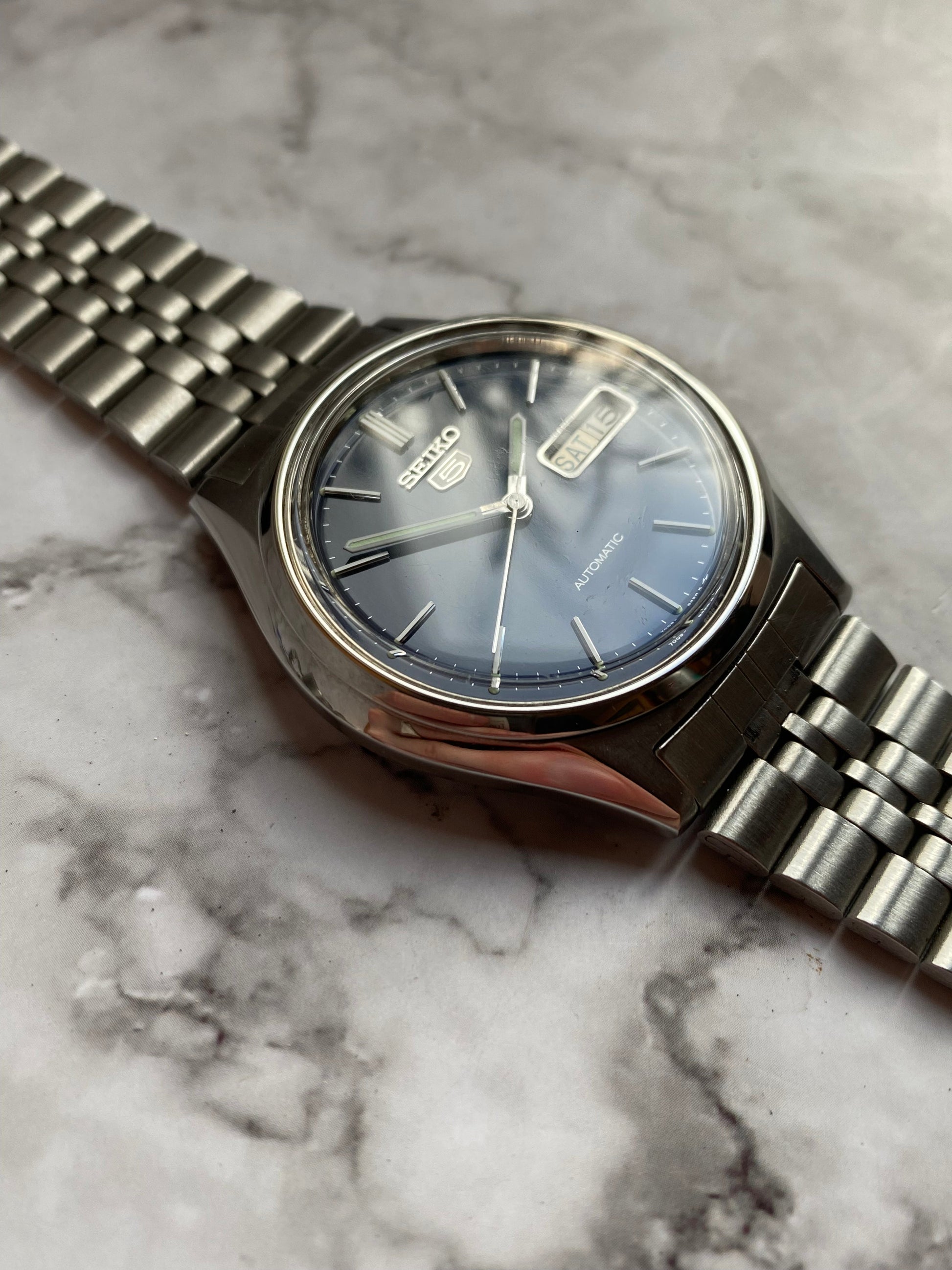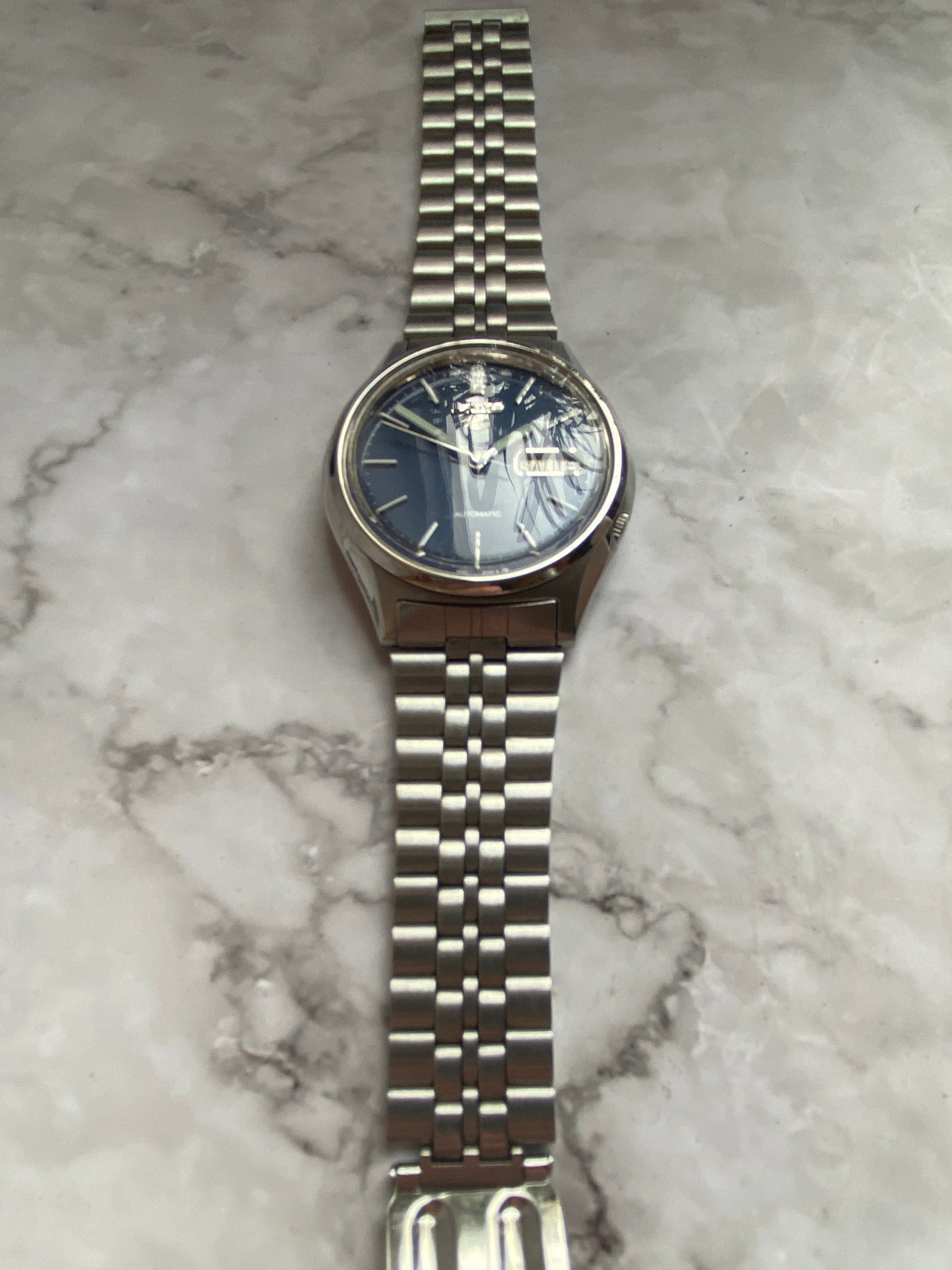 This watch is in near mint condition. Fits a up to a 7inch wrist. The bracelet and case are nearly flawless. There are a couple of tiny marks on the glass which are barely noticeable. Please note with this watch (as well as many other vintage watches) after being left to stop the watch needs a shake for around 2-3 minutes before using it again. It will only need this when it has been left alone and not used for a couple of days.