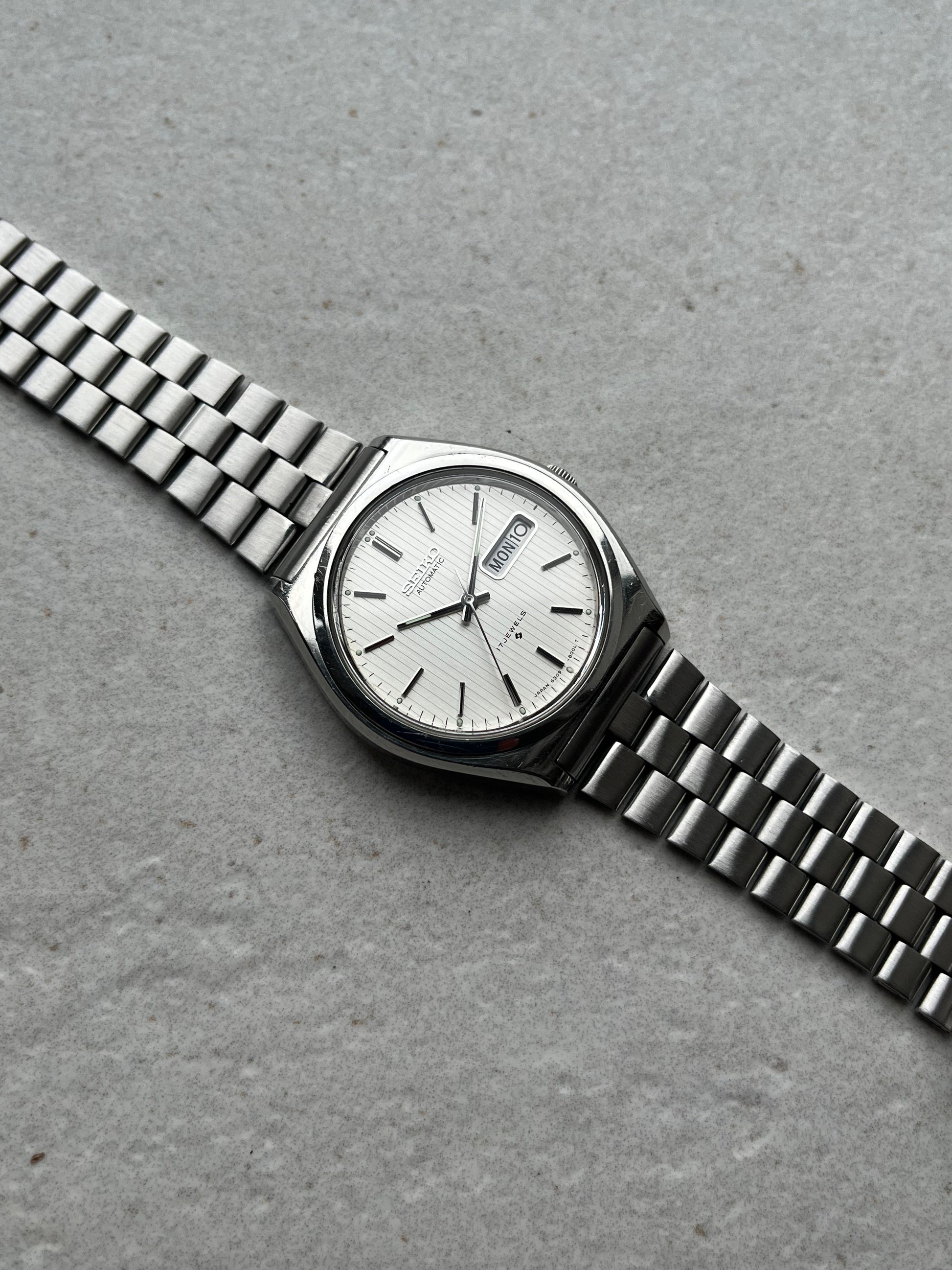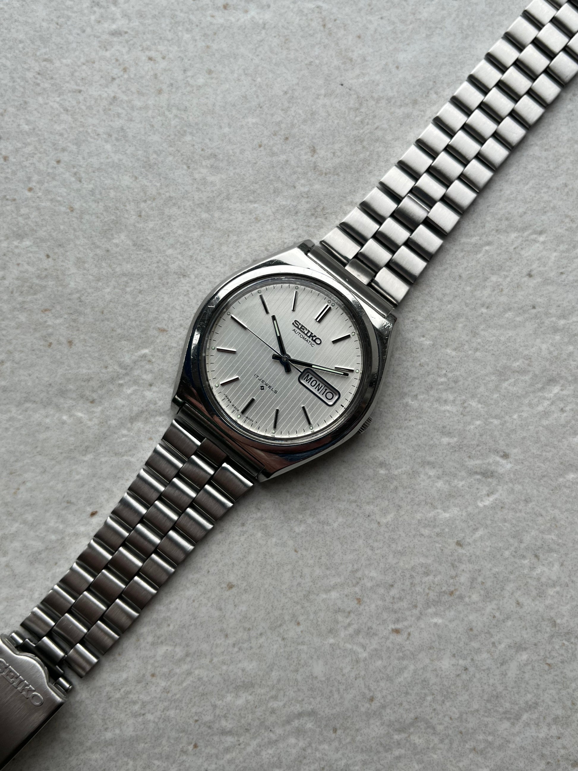 This is a lovely vintage Seiko automatic which features an amazing tapestry style dial which is in pristine condition. The watch itself is in good condition for its age and shows light signs of wear. Mechanically, the watch is working perfectly and keeping good time within specification.